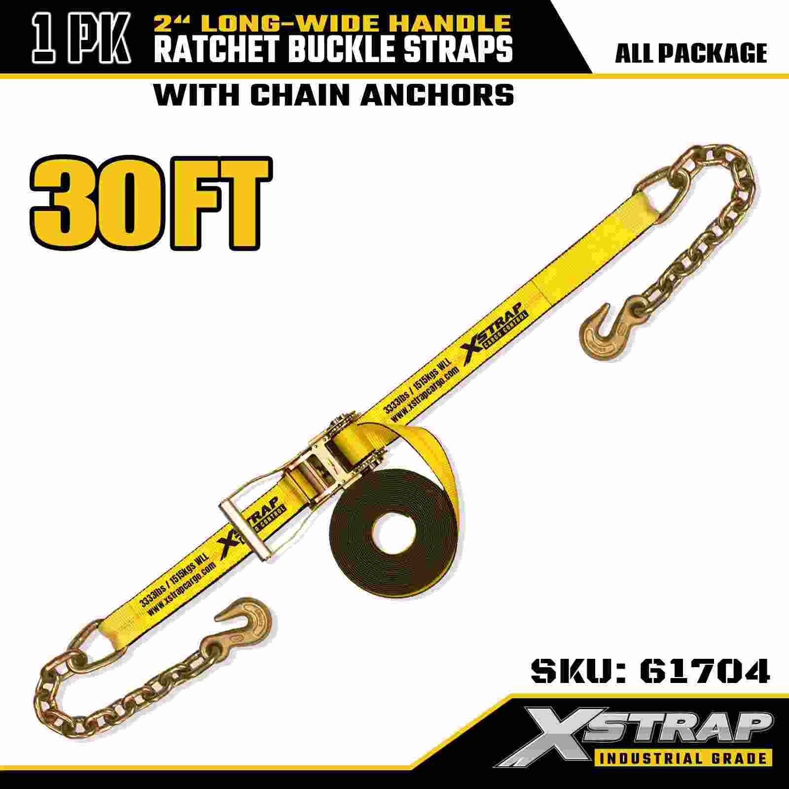 X-ремешок 61704 Длинные ремни с пряжкой с храповым механизмом и широкой ручкой, 2 дюйма x 30 футов (1 упаковка) — цепные крючки, прочность на разрыв 10 000 фунтов, прочный привязной ремень для транспортировки грузов и оборудования