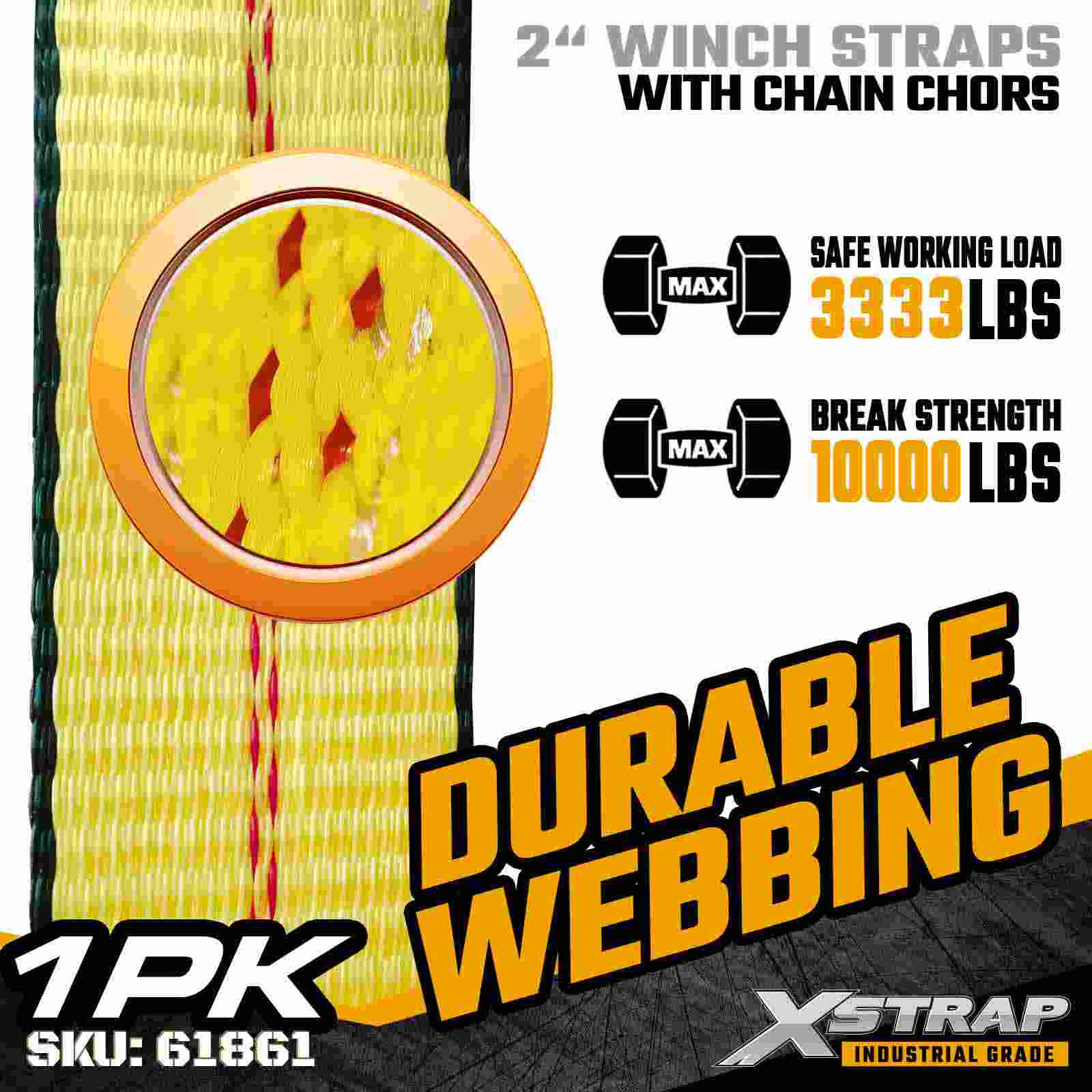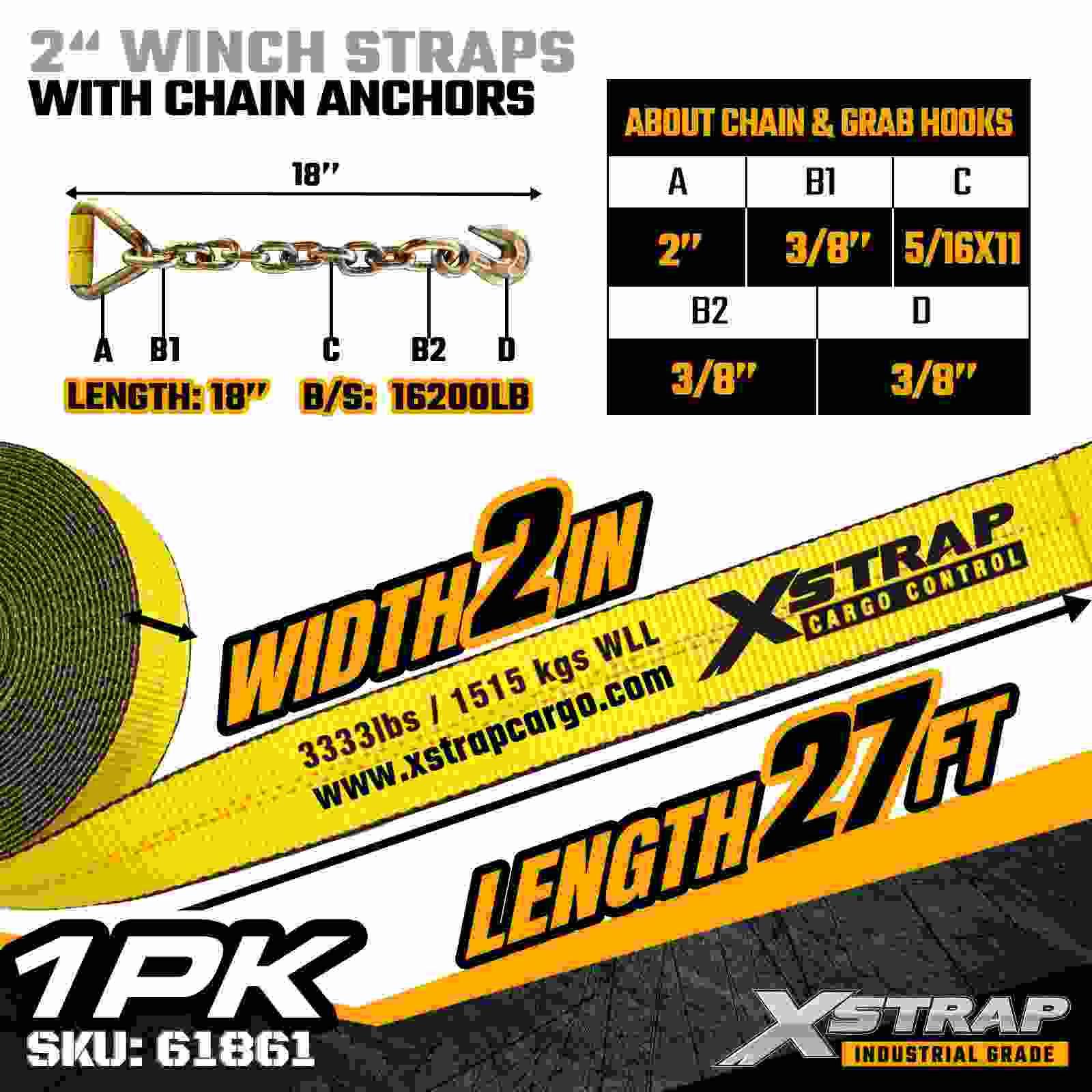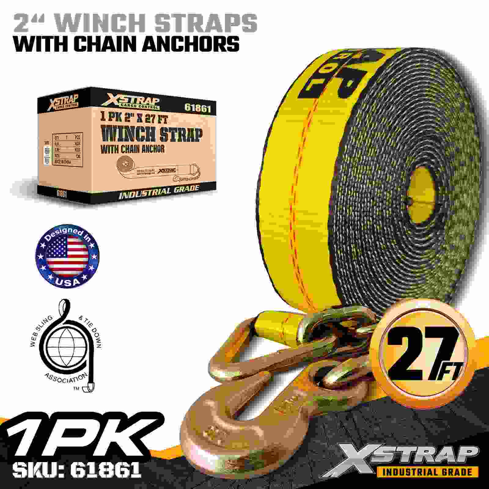 Стандартный ремень для лебедки 2 дюйма × 27 футов с цепными якорями
