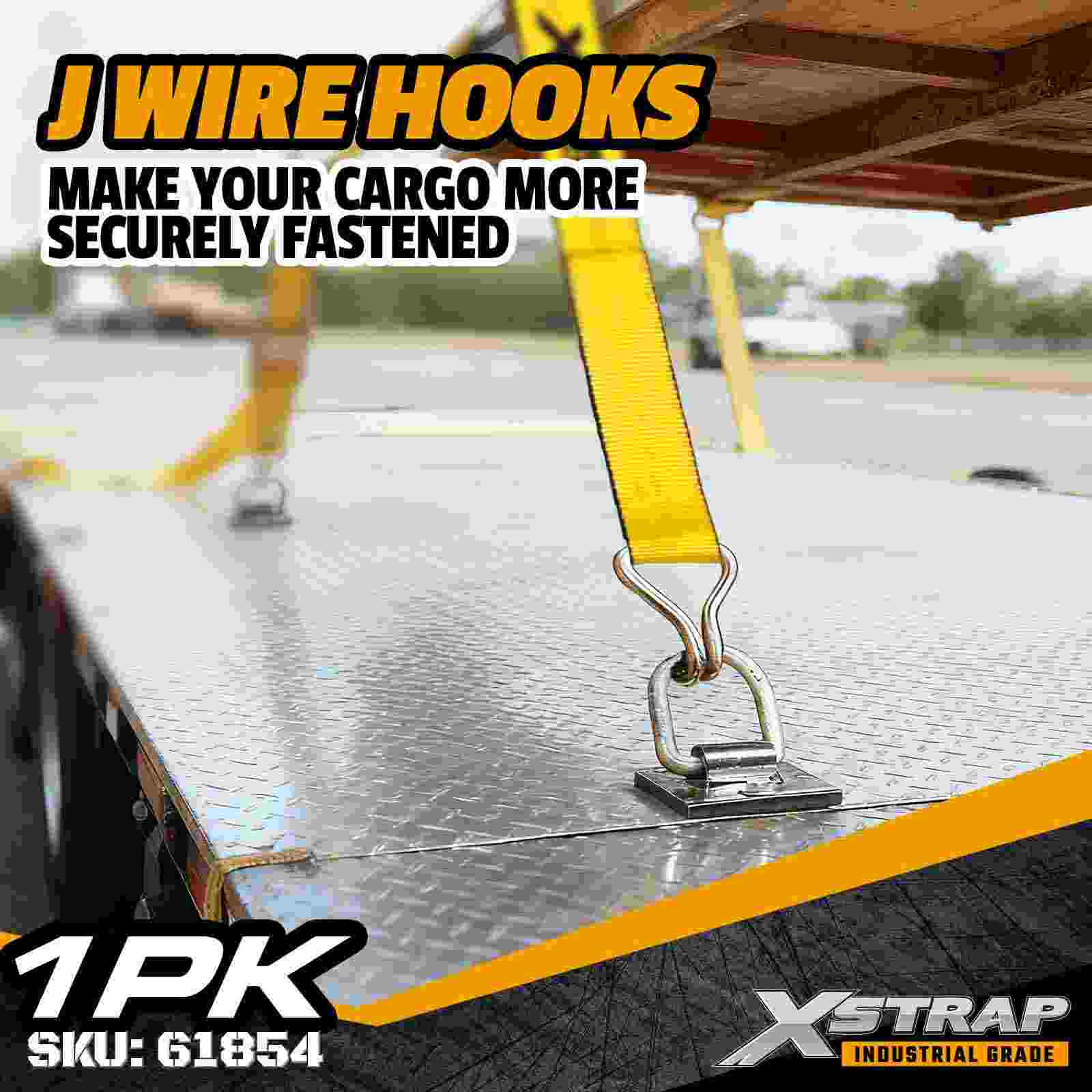 - Прочный проволочный крюк для надежных точек крепления. Усиленный проволочный крюк обеспечивает прочное и надежное соединение с точками крепления прицепа, обеспечивая надежную фиксацию груза, находящегося под высоким напряжением, во время транспортировки.