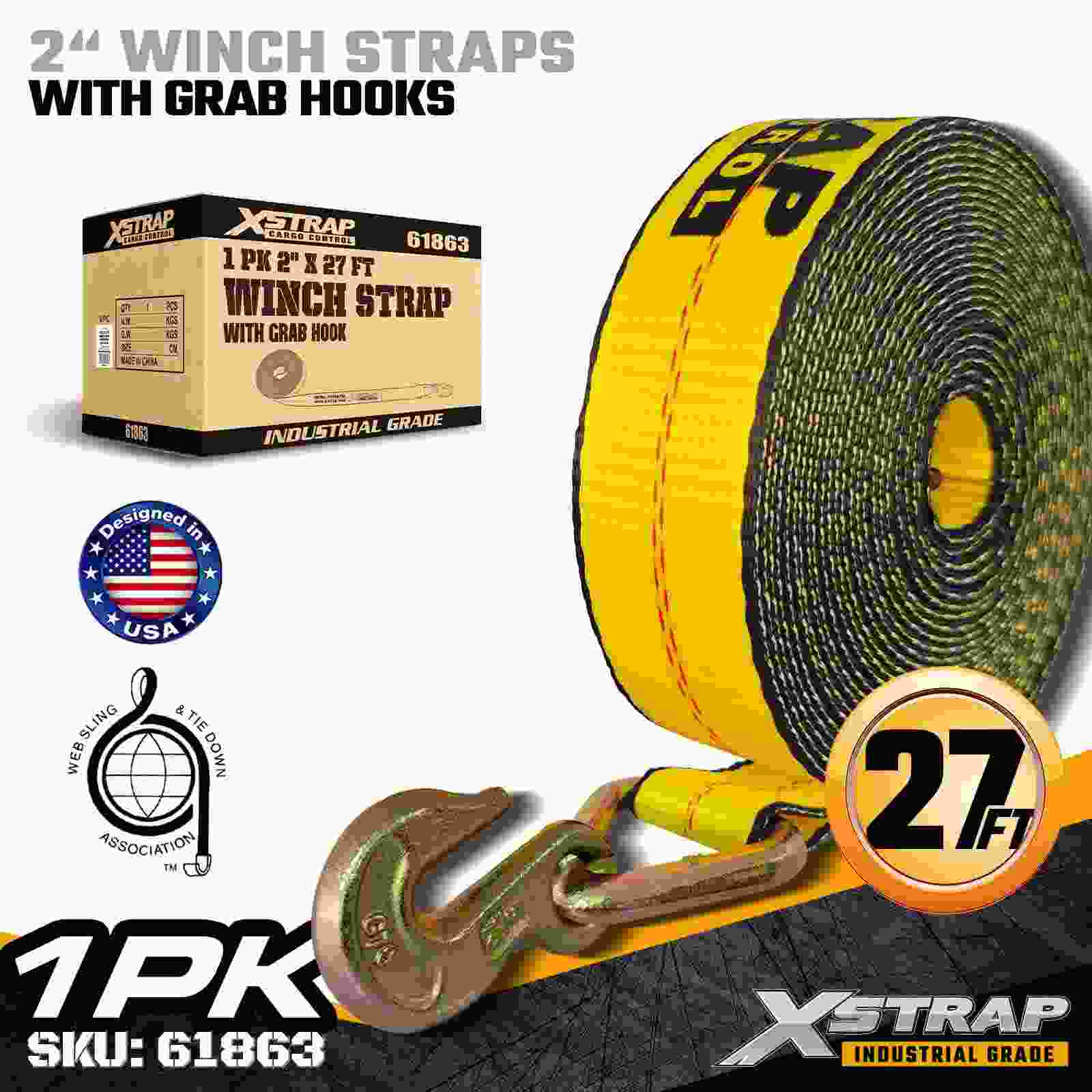 Стандартный ремень для лебедки 2 дюйма × 27 футов с захватным крюком