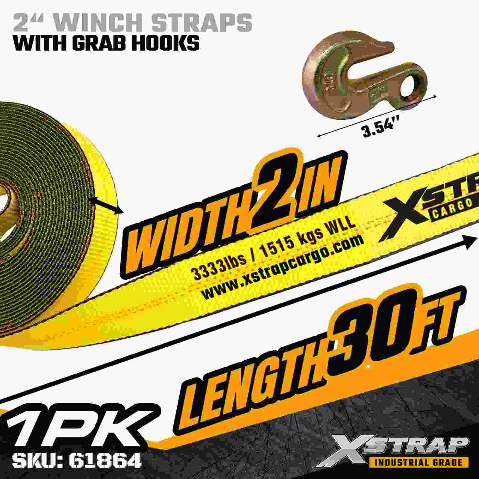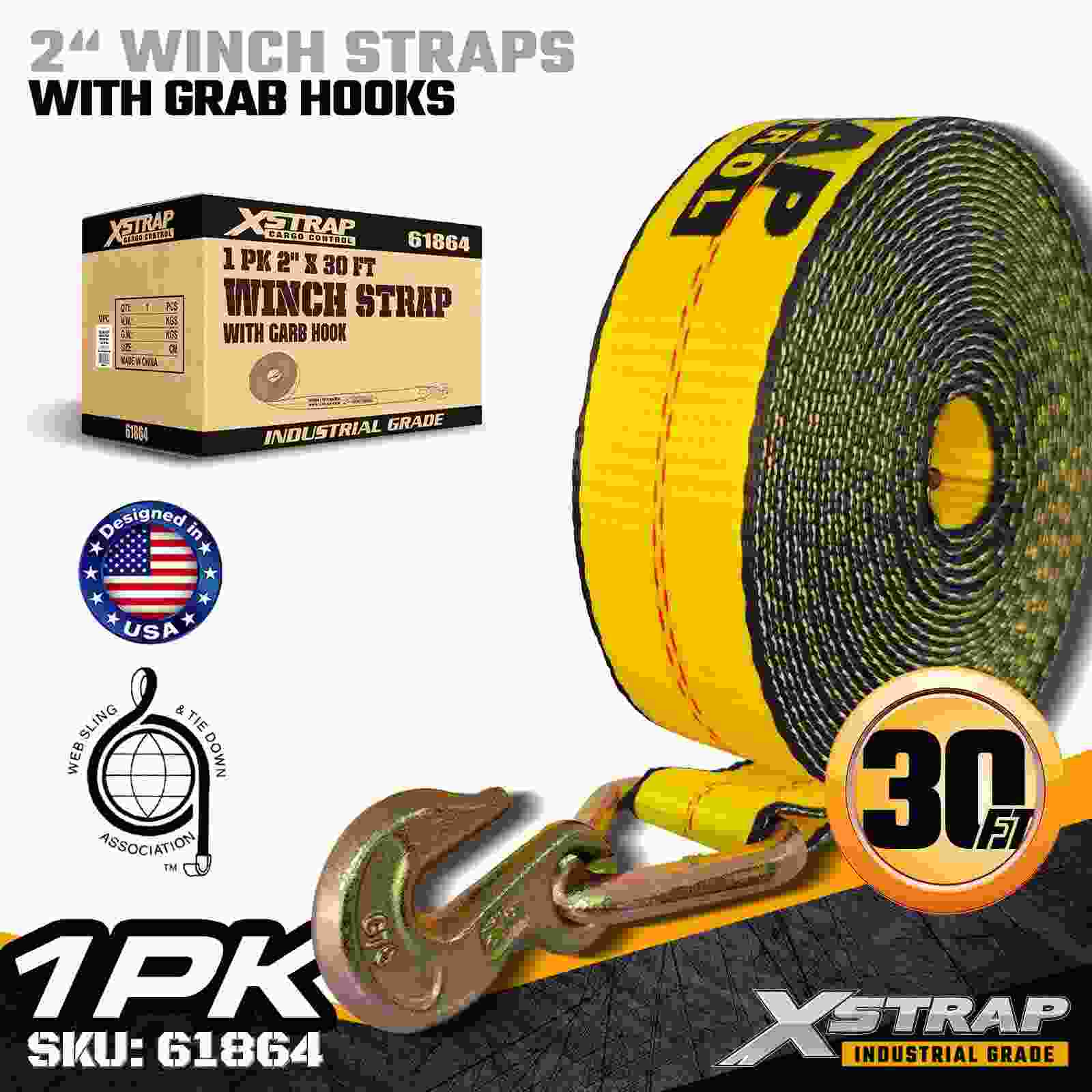 - Увеличенная длина на 30 футов для большей грузоподъемности: 30-футовый ремень лебедки обеспечивает увеличенный радиус действия, что делает его идеальным для крепления широких, высоких грузов или грузов неправильной формы без необходимости использования дополнительных удлинительных ремней.