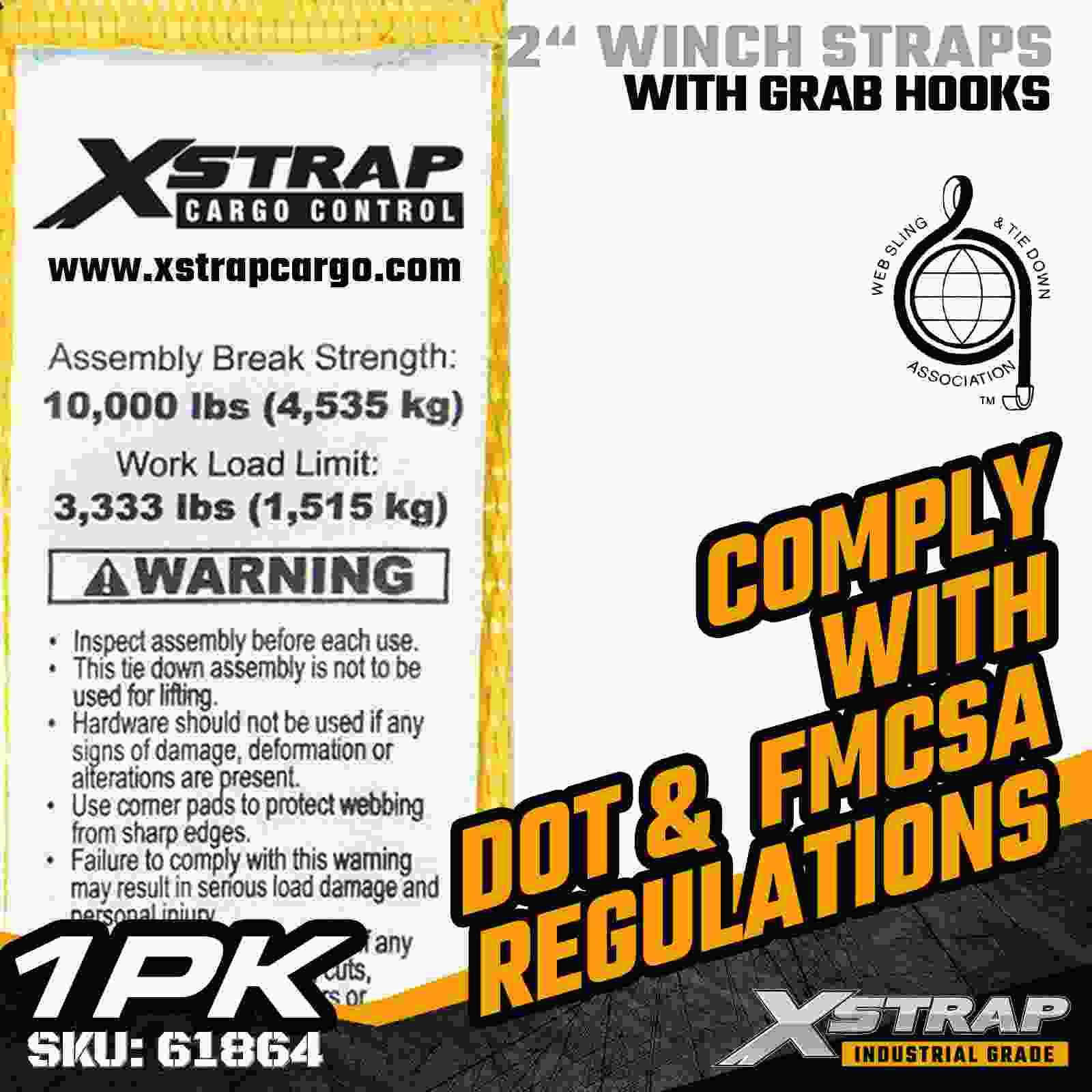 Стандартный ремень для лебедки Xstrap 61864 размером 2 дюйма × 30 футов — это решение для крепления тяжелых грузов, предназначенное для бортовых прицепов и профессионального транспорта. Этот 2-дюймовый ремень для лебедки, оснащенный прочным грейферным крюком и высокопрочной полиэфирной лентой, обеспечивает предел рабочей нагрузки 3333 фунта и прочность на разрыв 10 000 фунтов. Он обеспечивает надежную работу при креплении пиломатериалов, поддонов, труб, машин и т. д. генеральные грузы при ежедневных перевозках.