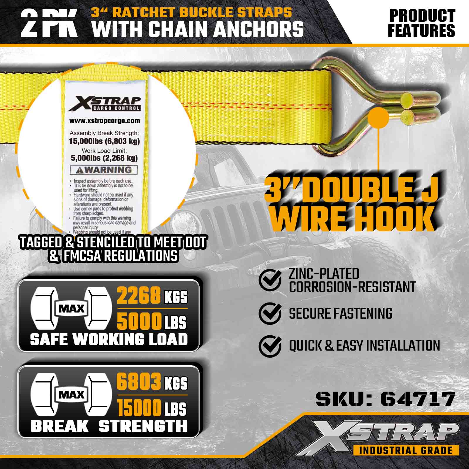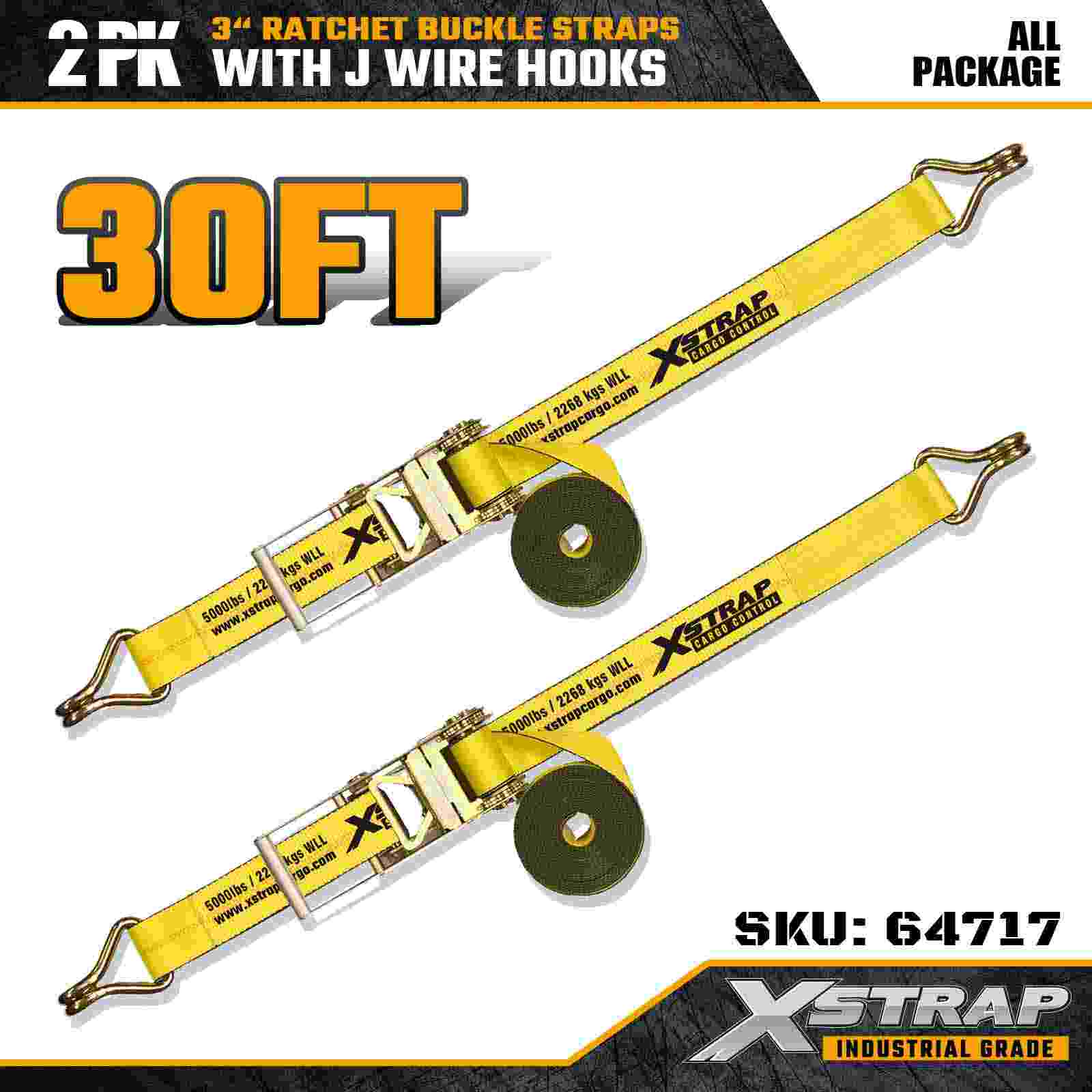 Xstrap 64717 Ремни с храповым механизмом размером 3 дюйма × 30 футов (2 шт.) разработаны для профессионального крепления грузов и оснащены усиленными проволочными крючками и сверхпрочным храповым механизмом. Благодаря пределу рабочей нагрузки 5000 фунтов и прочности на разрыв 15000 фунтов эти ремни обеспечивают надежную работу на больших расстояниях при использовании бортовых платформ, транспортировки техники и промышленных грузовых операций.