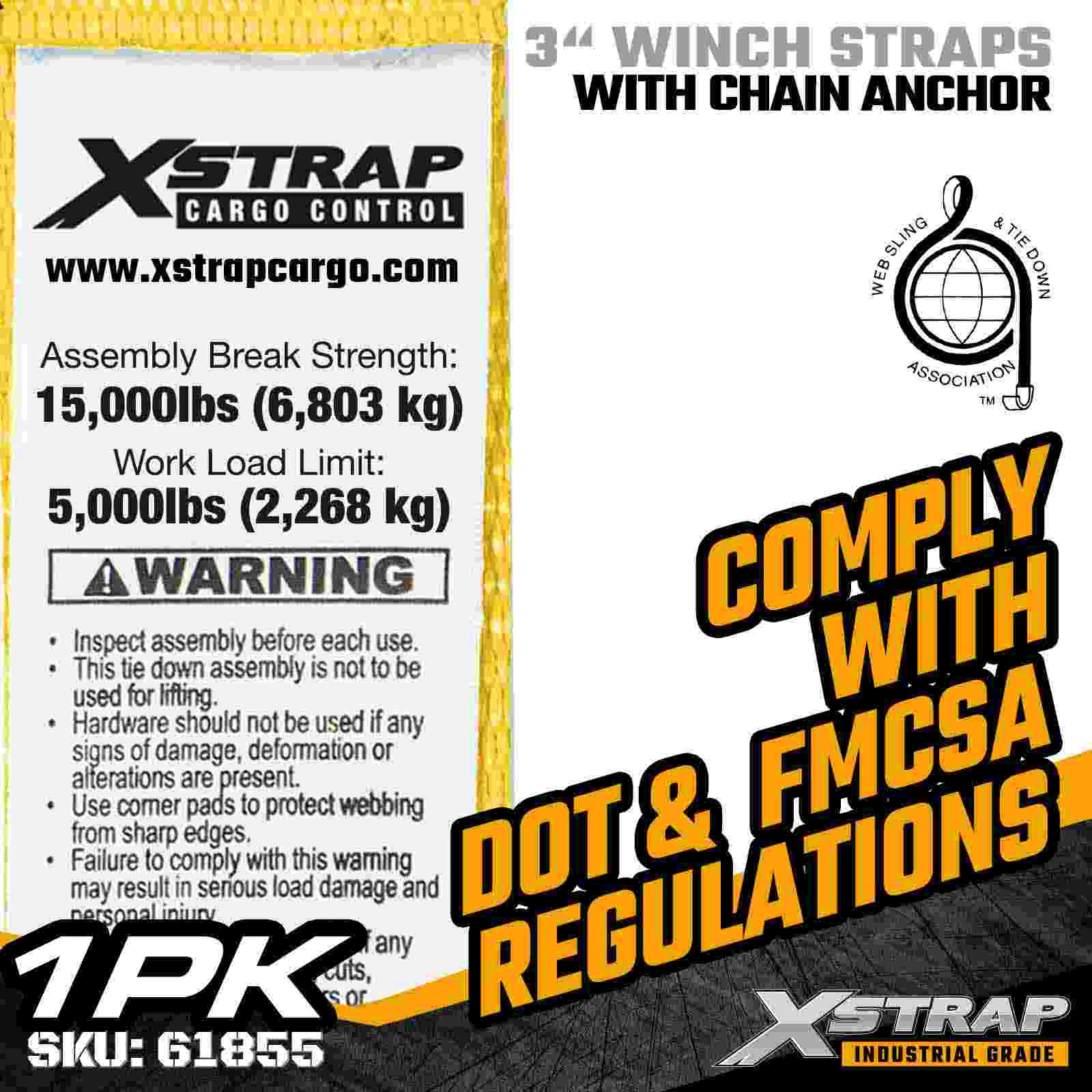 Стандартный ремень для лебедки Xstrap 61855 размером 3 дюйма × 30 футов — это прочный ремень для крепления промышленных грузов, предназначенный для бортовых прицепов и негабаритных грузов. Оснащенный кованым цепным якорем и очень широкой 3-дюймовой полиэфирной лентой, этот 3-дюймовый ремень для лебедки обеспечивает предел рабочей нагрузки 5000 фунтов и прочность на разрыв 15000 фунтов. Увеличенная длина 30 футов делает его идеальным для для крепления более широких, высоких грузов или грузов неправильной формы, требующих дополнительного вылета и устойчивости.