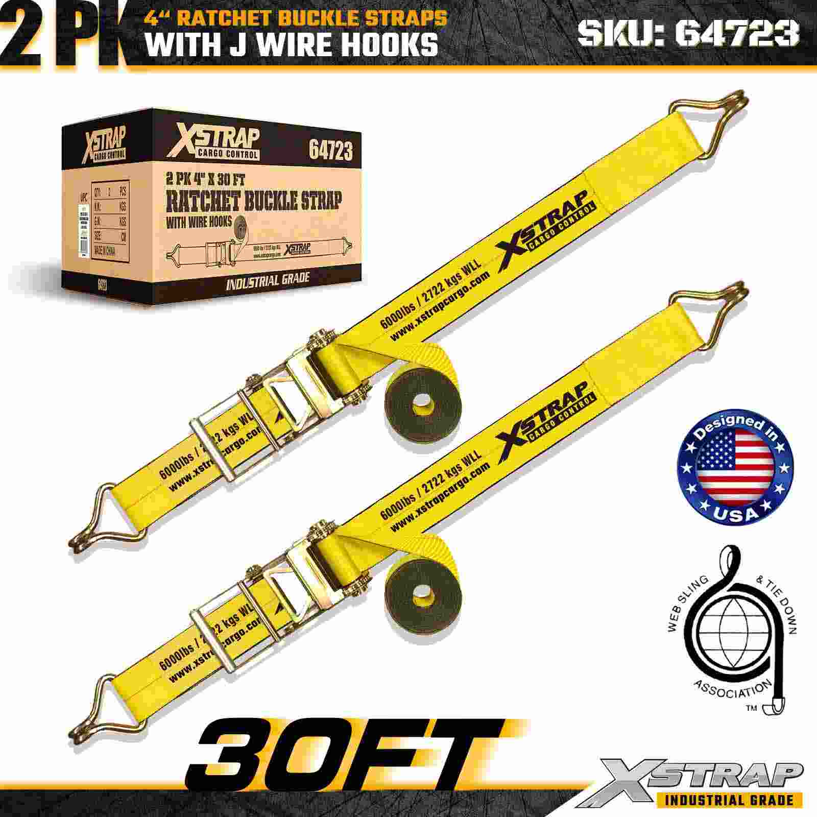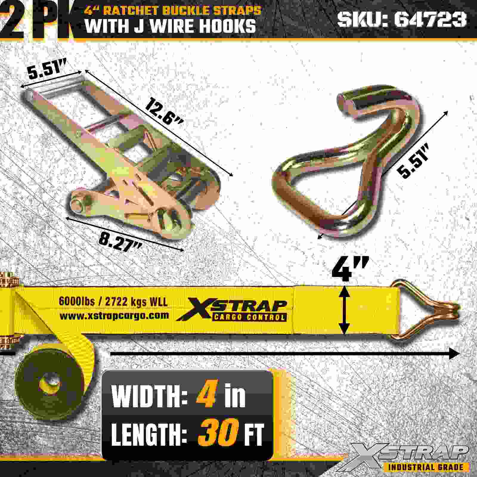Ремни Xstrap 64723 с пряжкой с храповым механизмом размером 4 дюйма × 30 футов (2 шт.) разработаны для крепления тяжелых грузов и оснащены усиленными проволочными крючками и прочным храповым механизмом. Благодаря пределу рабочей нагрузки 6000 фунтов и прочности на разрыв 18 000 фунтов эти ремни идеально подходят для бортовой перевозки, транспортировки техники, пиломатериалов, стальных грузов и промышленных грузов.