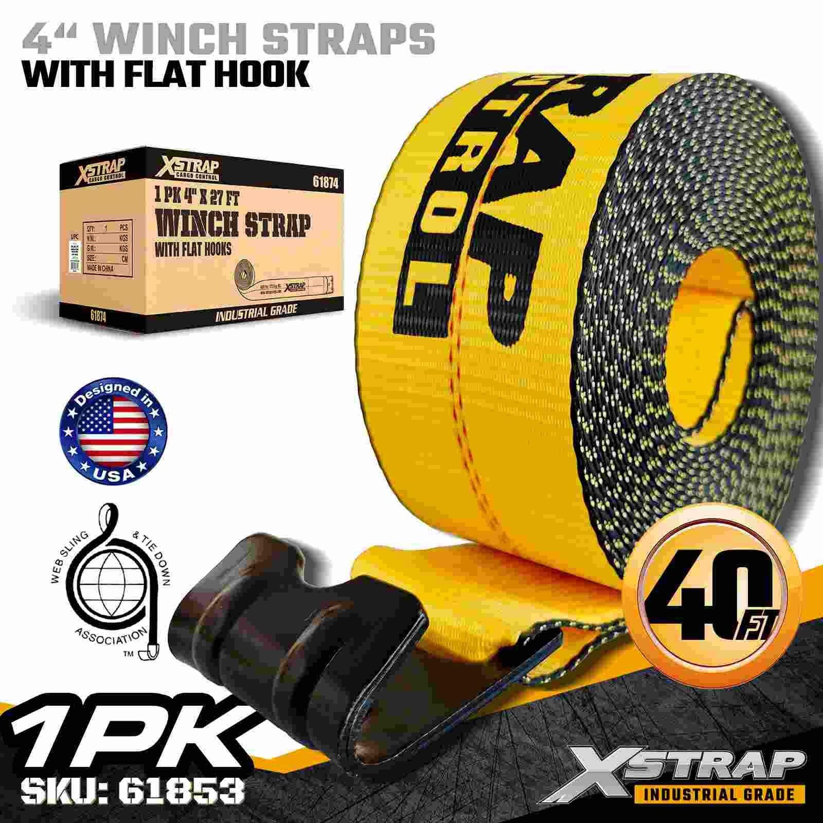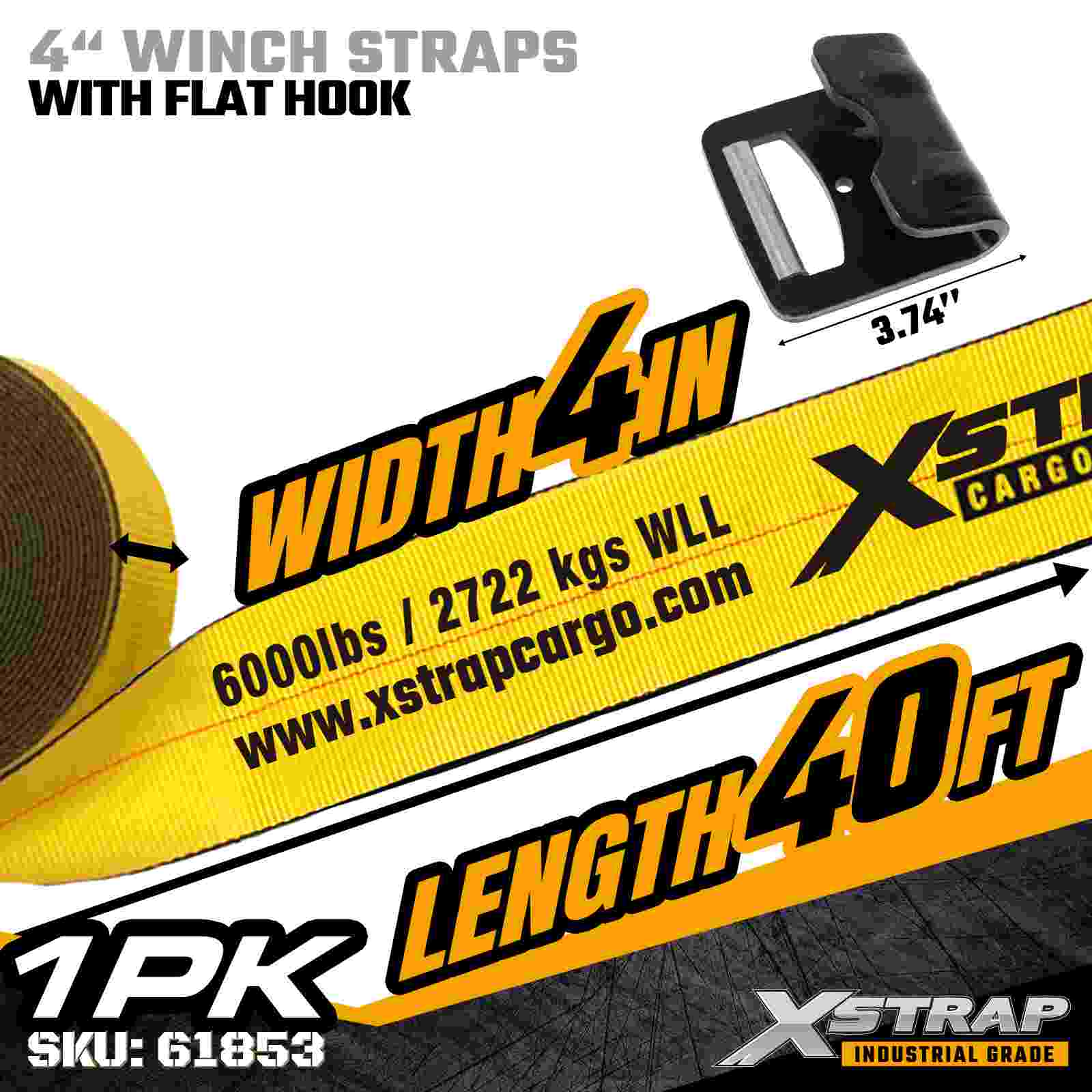 Стандартный ремень для лебедки 4 дюйма × 40 футов с плоским крюком