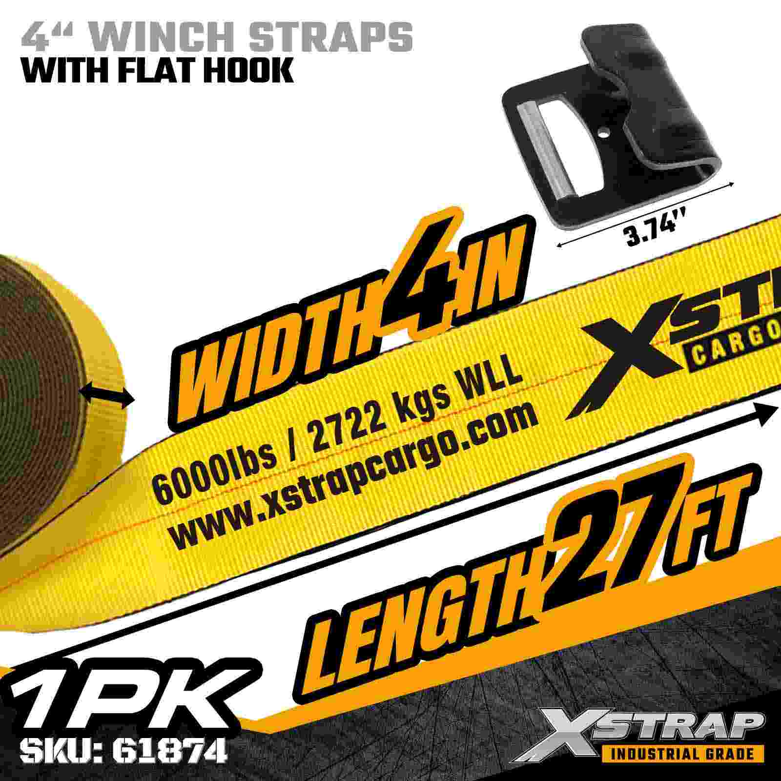 Стандартный ремень для лебедки 4 дюйма × 27 футов с плоским крюком
