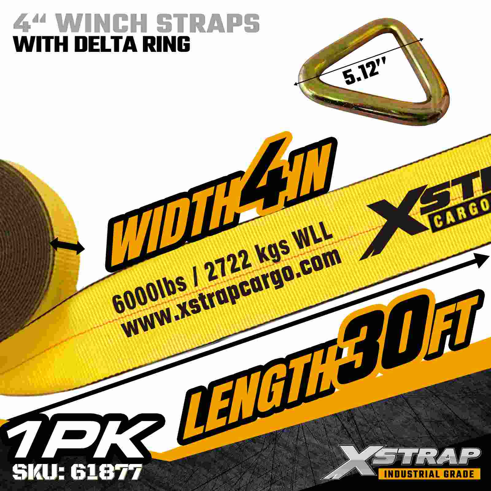 Стандартный ремень для лебедки 4 дюйма × 30 футов с треугольным кольцом