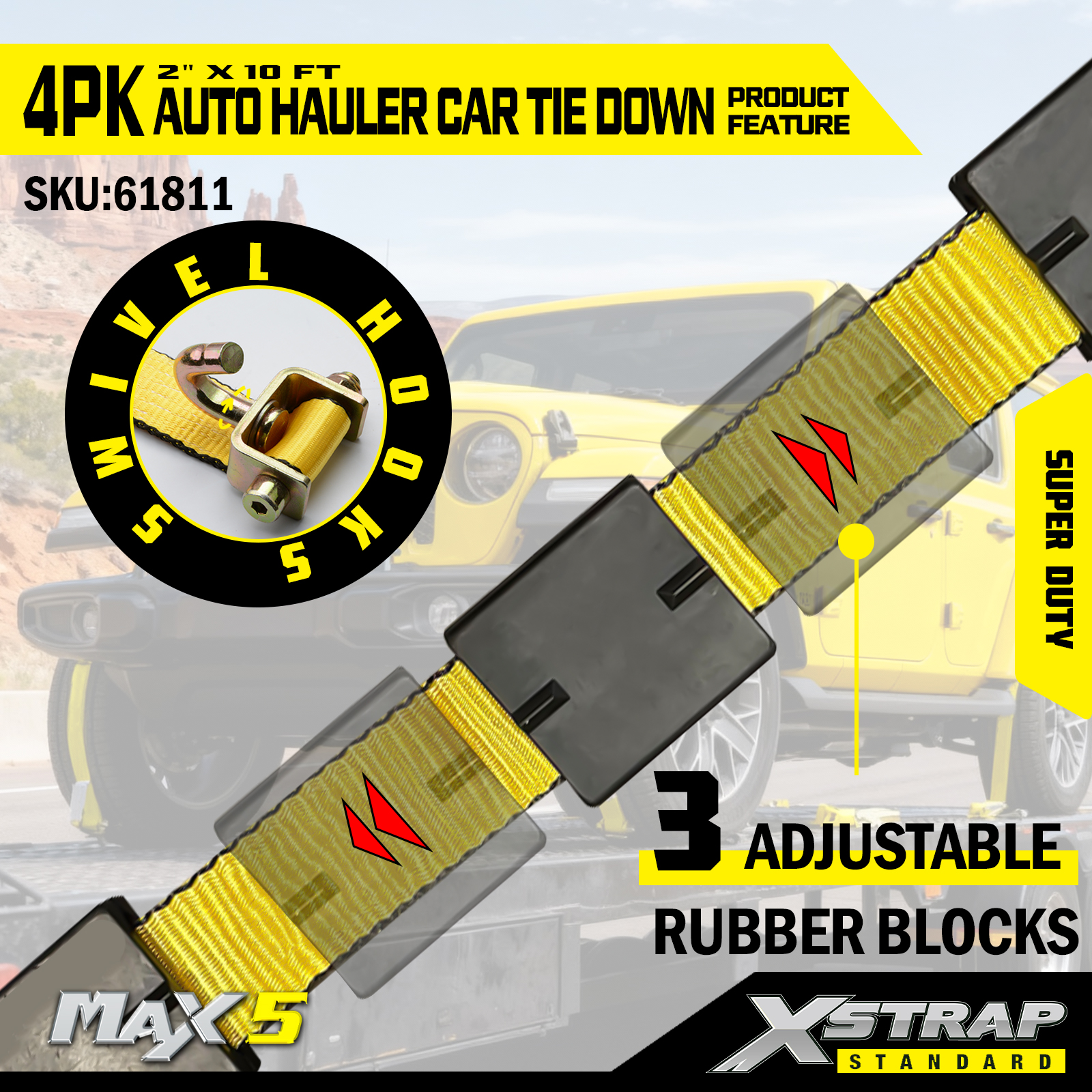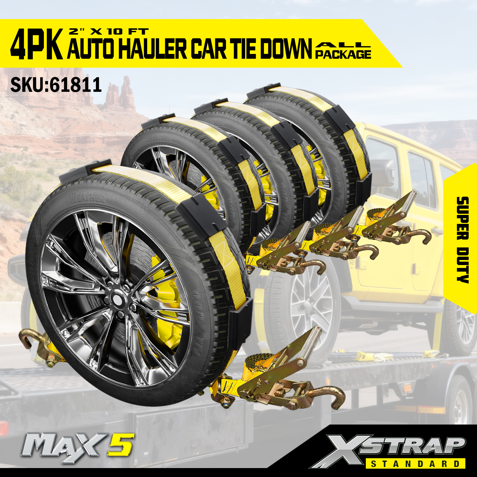 Ремни Xstrap для автомобильных тягачей, сверхпрочная прочность на разрыв 6600 фунтов — ремни для крепления шин для прицепов, крепления для колес с резиновыми шипами для внедорожников, грузовиков, квадроциклов, UTV
