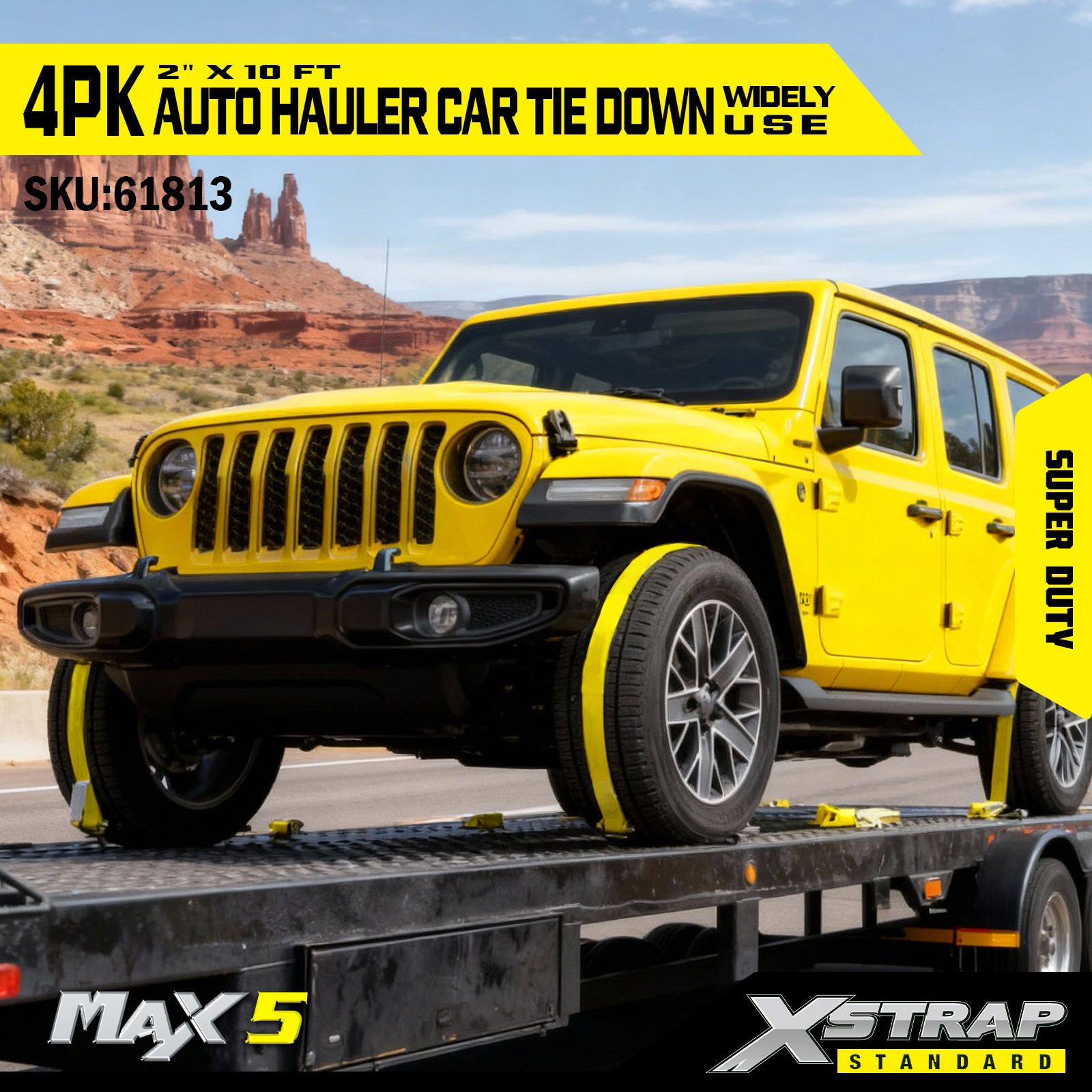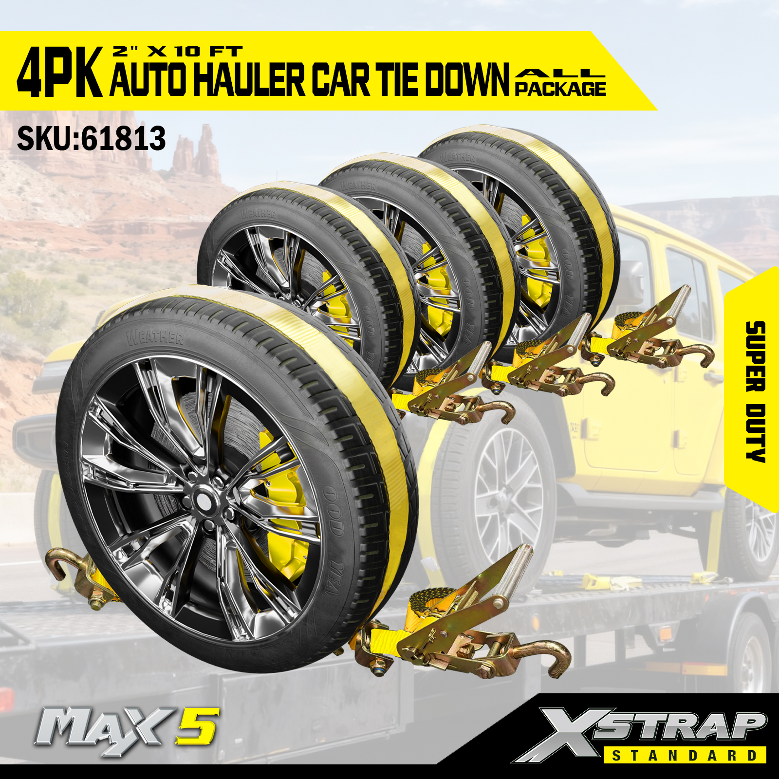 Ремни Xstrap для автомобильных тягачей, сверхпрочная прочность на разрыв 6600 фунтов — ремни для крепления шин для прицепов, крепления для колес с резиновыми шипами для внедорожников, грузовиков, квадроциклов, UTV