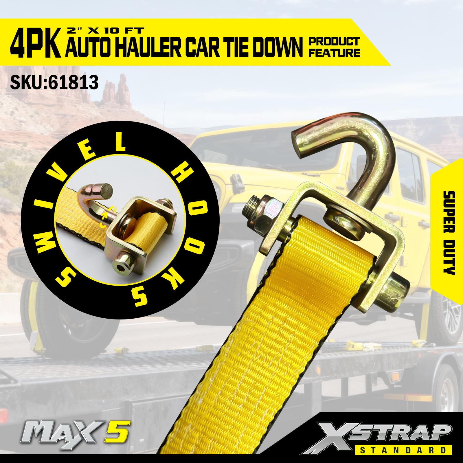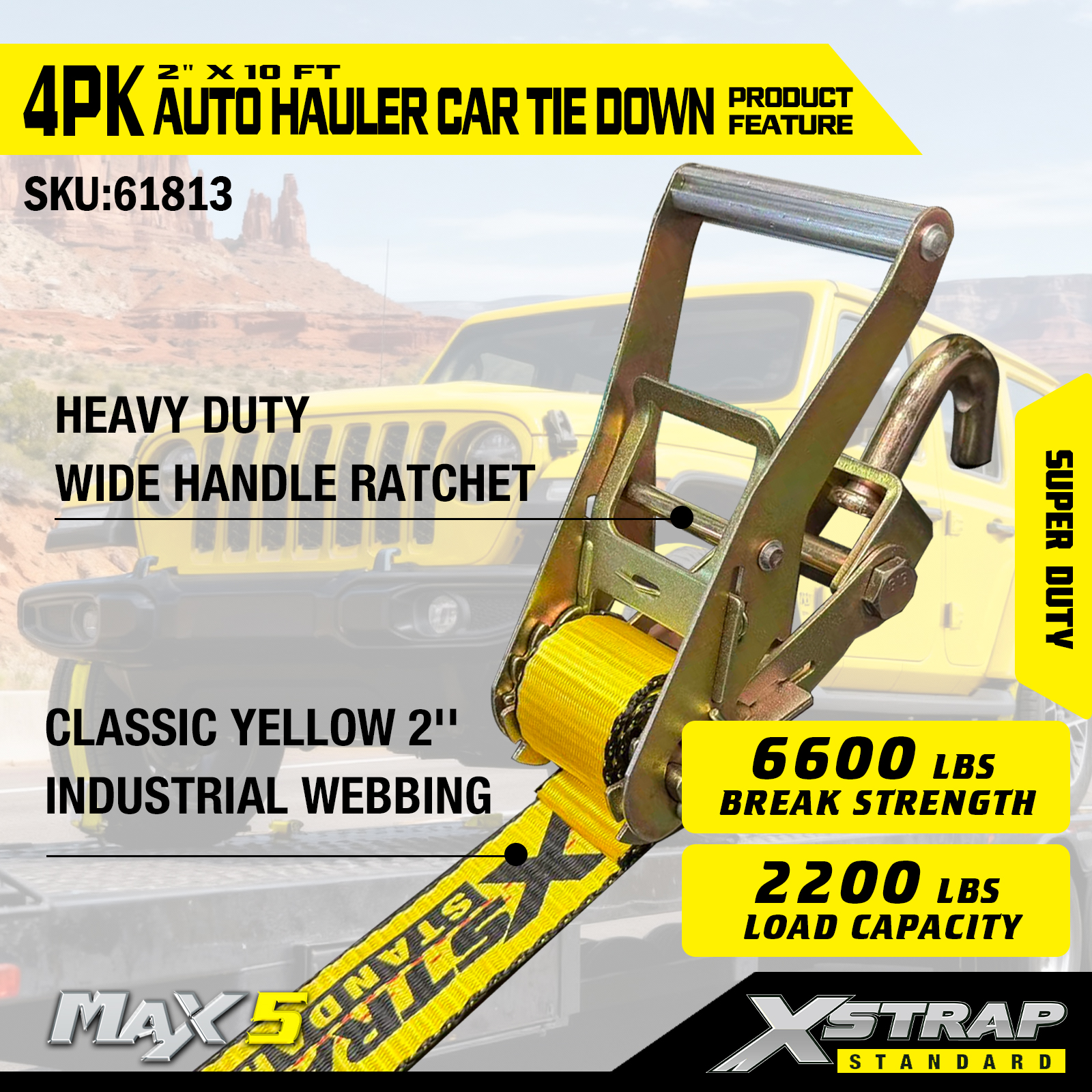 - Сверхмощная грузоподъемность: рассчитана на безопасную рабочую нагрузку 2200 фунтов и прочность на разрыв 6600 фунтов, подходит для тяжелых транспортных средств и сложных условий транспортировки.
