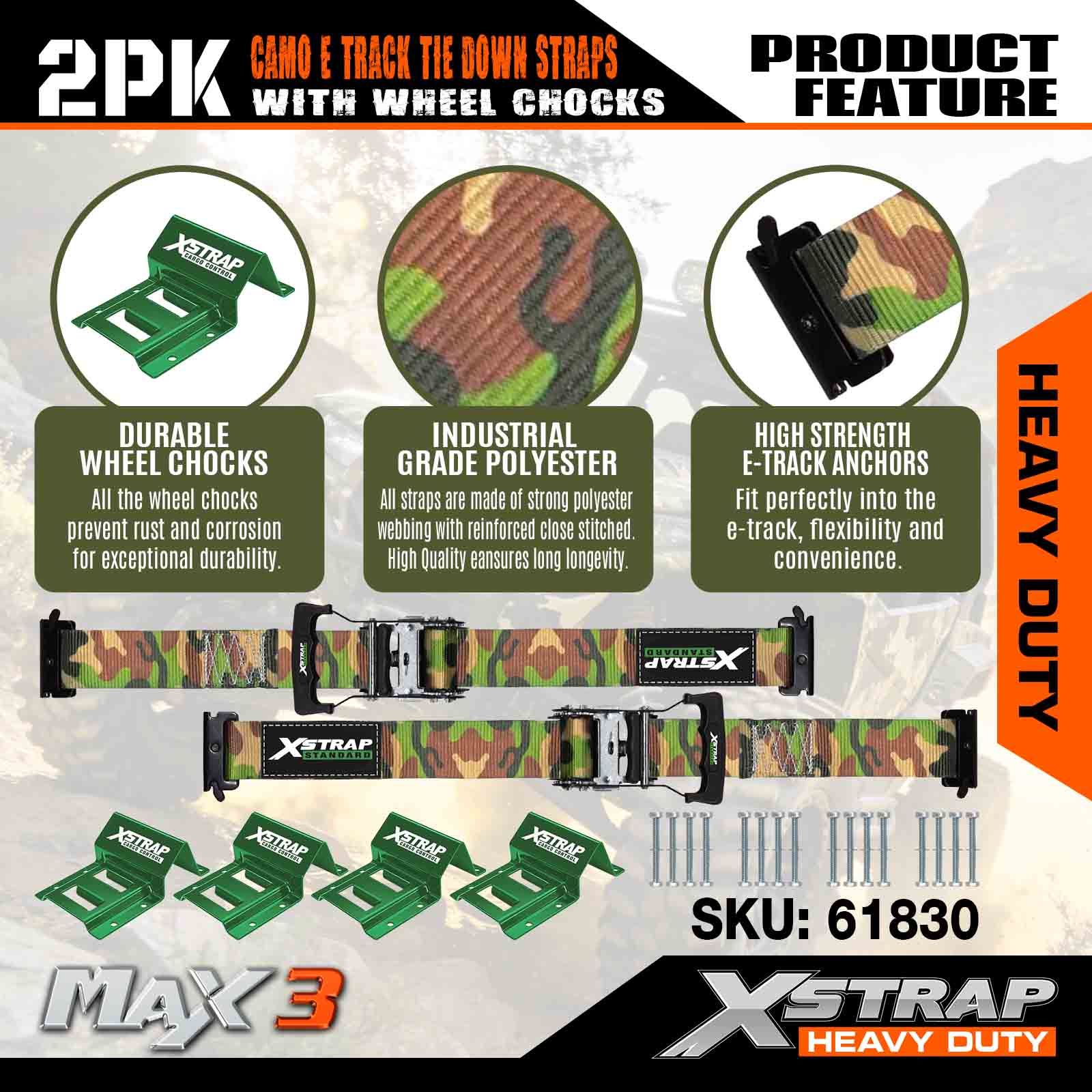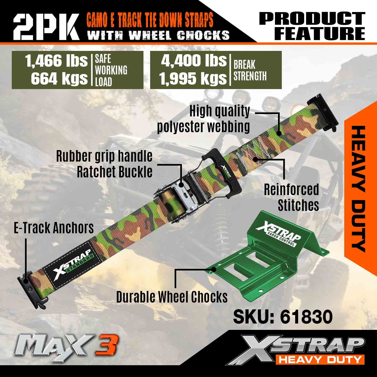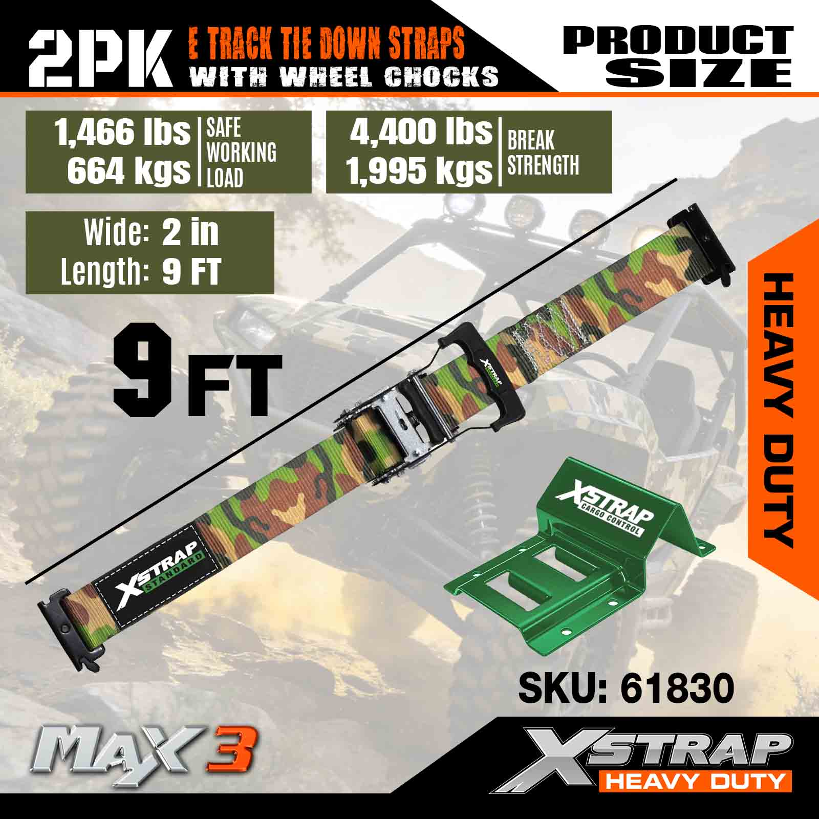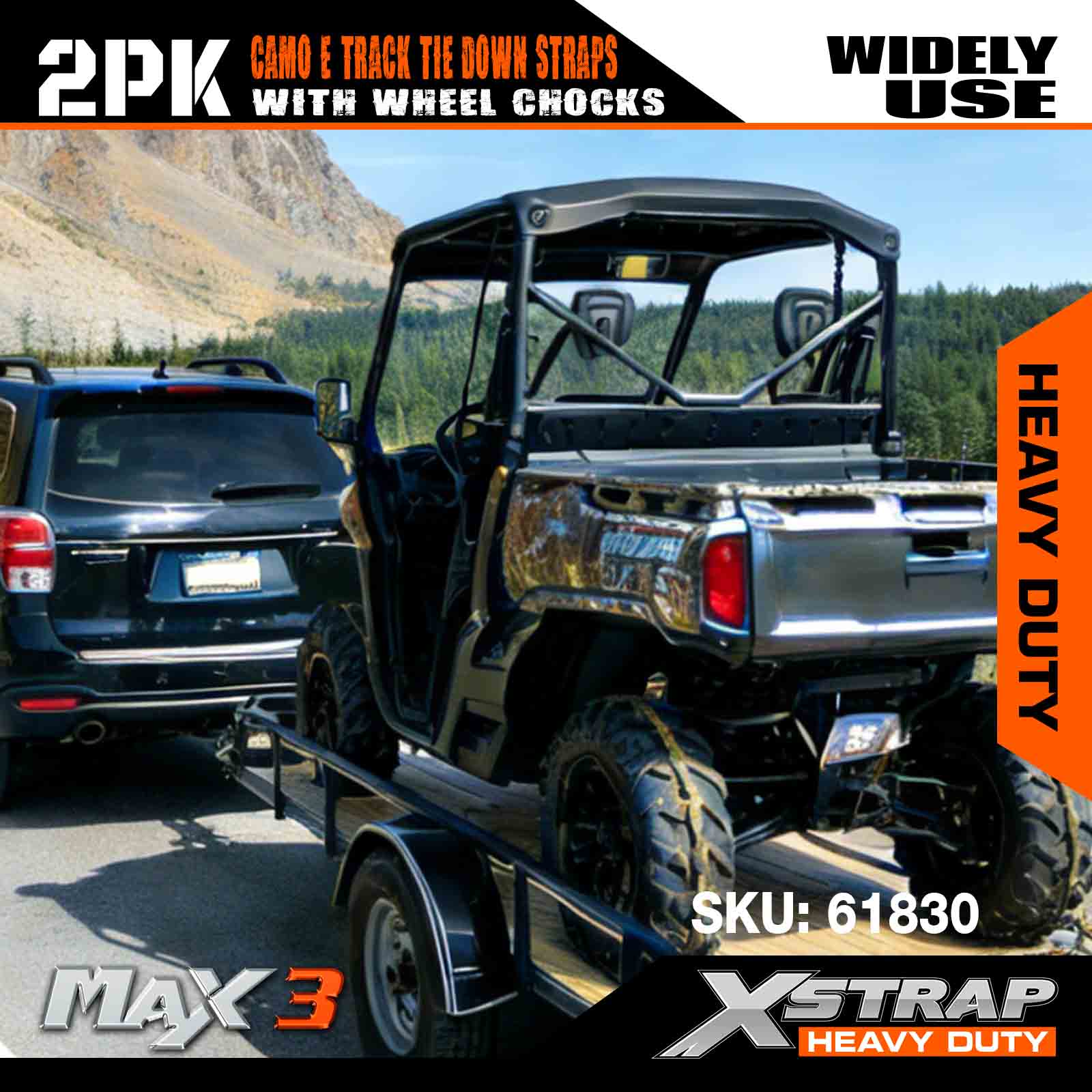 Комплект крепления противооткатных упоров для колес Xstrap Прочность на разрыв 4400 фунтов (2) Ремни с храповым механизмом для шин тяжелого прицепа (4) Колесные колодки — система E-гусениц для квадроциклов, UTV, газонокосилок, четырехколесных транспортных средств — CAMO