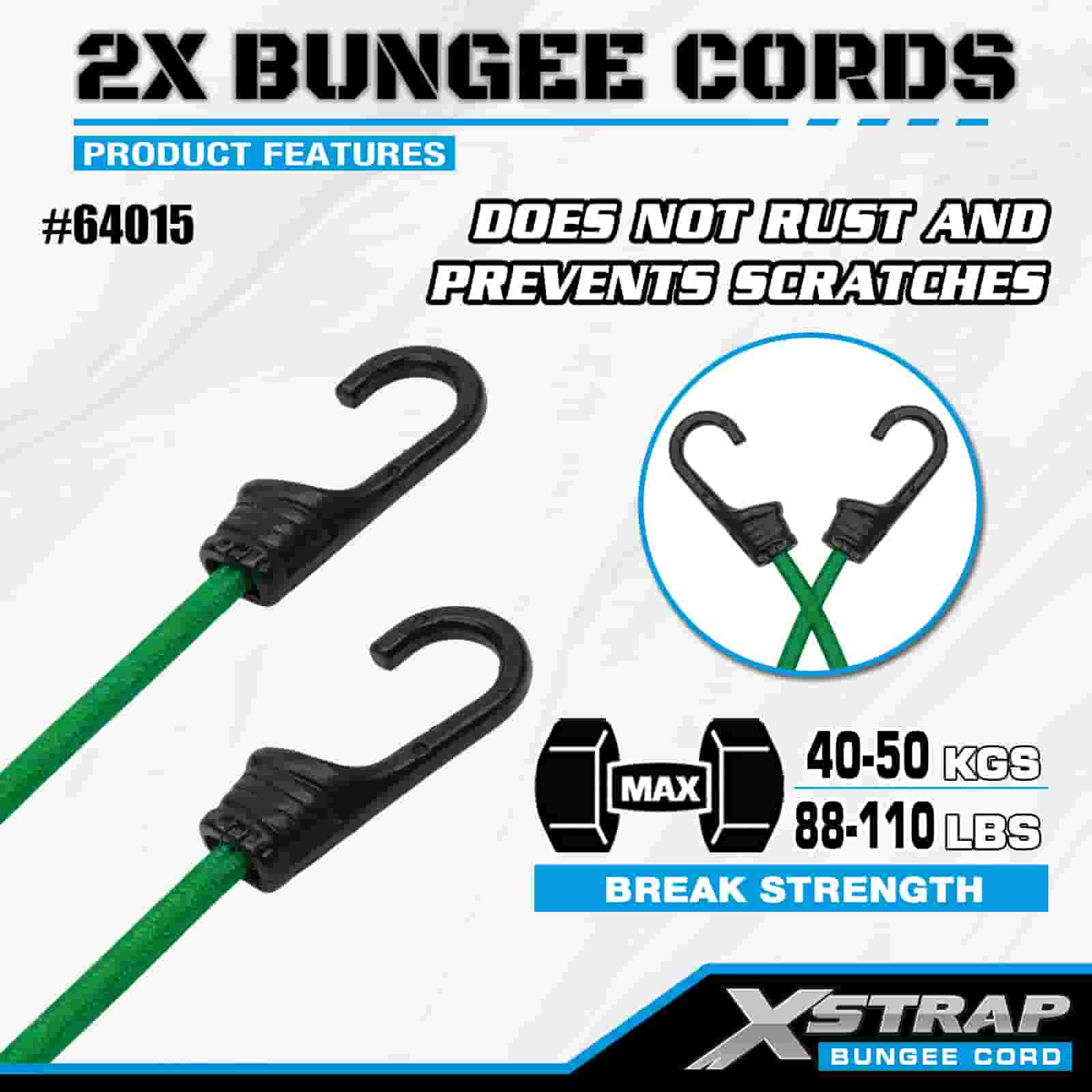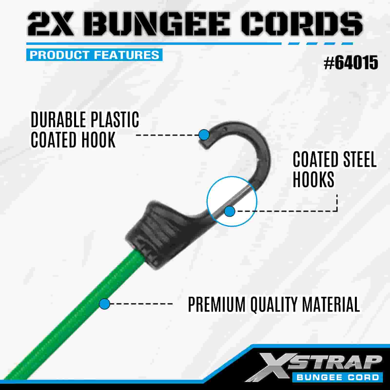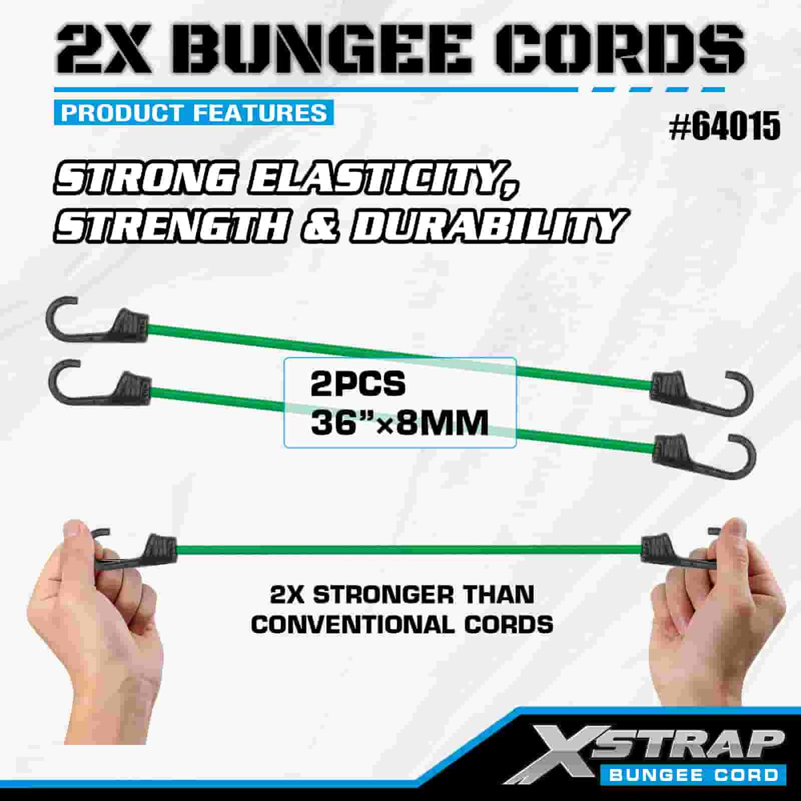 Банджи-шнуры Xstrap 2PK 2X размером 8 мм x 36 дюймов, прочность на разрыв 88–110 фунтов, с прочными крючками для контроля груза.