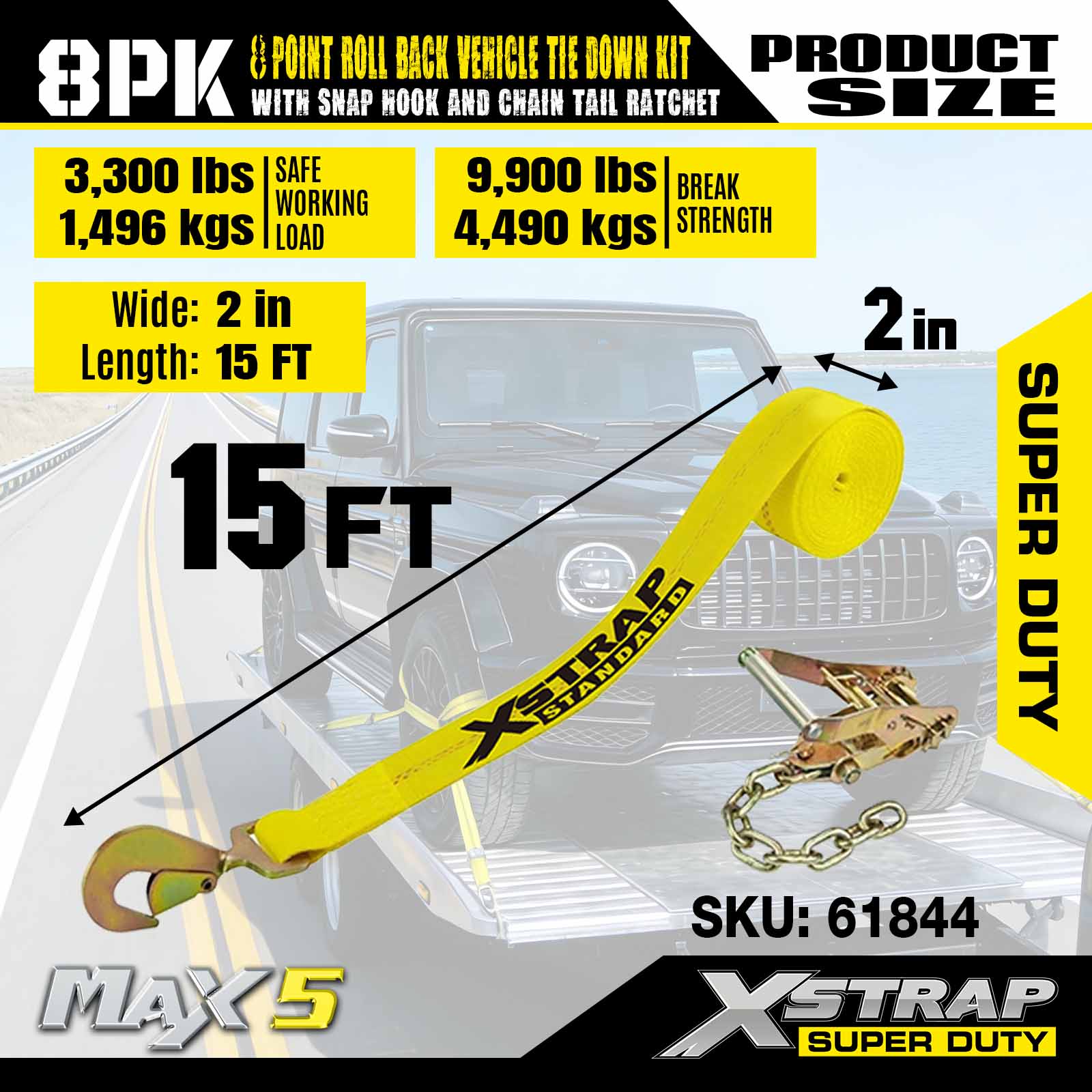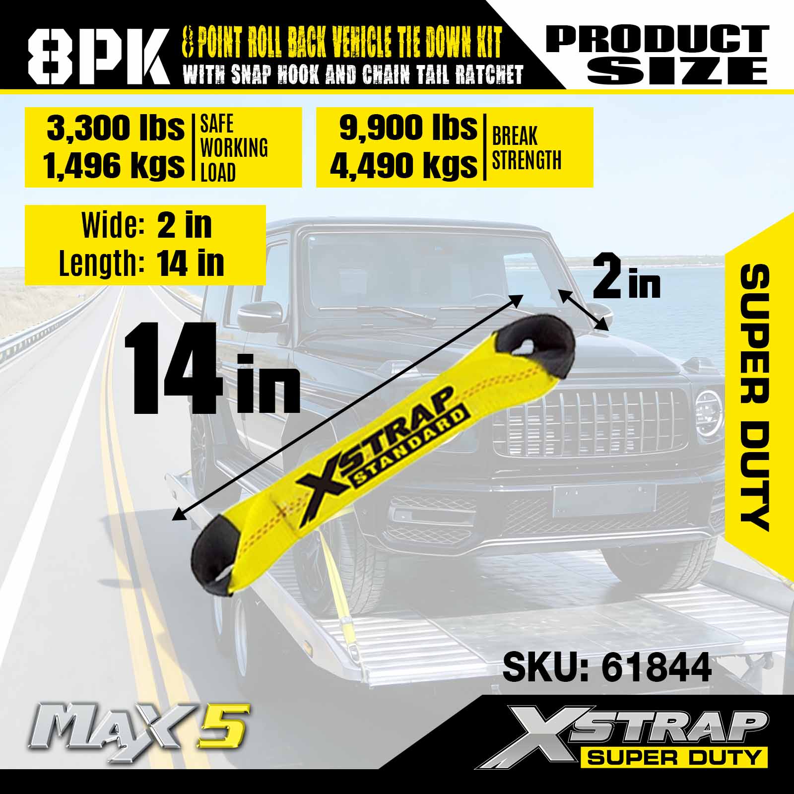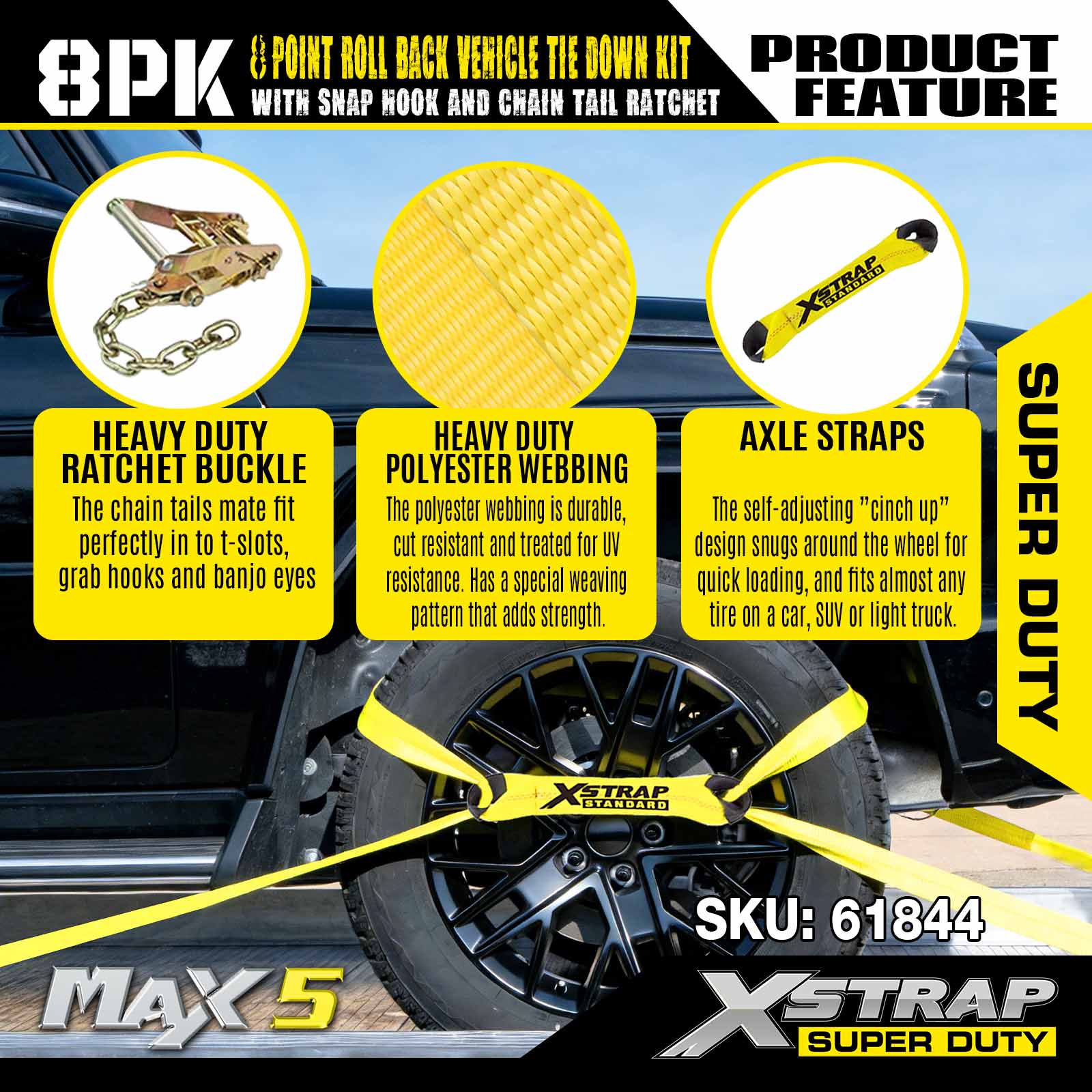 - Безопасность и соответствие требованиям. Эти ремни безопасности предназначены для перевозки любого автомобиля на бортовом прицепе или эвакуаторе с откатным механизмом и позволяют транспортному средству передвигаться на собственной подвеске, исключая передачу ударных нагрузок. Вы можете легко закрепить автомобиль для транспортировки, стоя на земле для дополнительной безопасности. Каждая сборка имеет безопасную рабочую нагрузку 3300 фунтов.