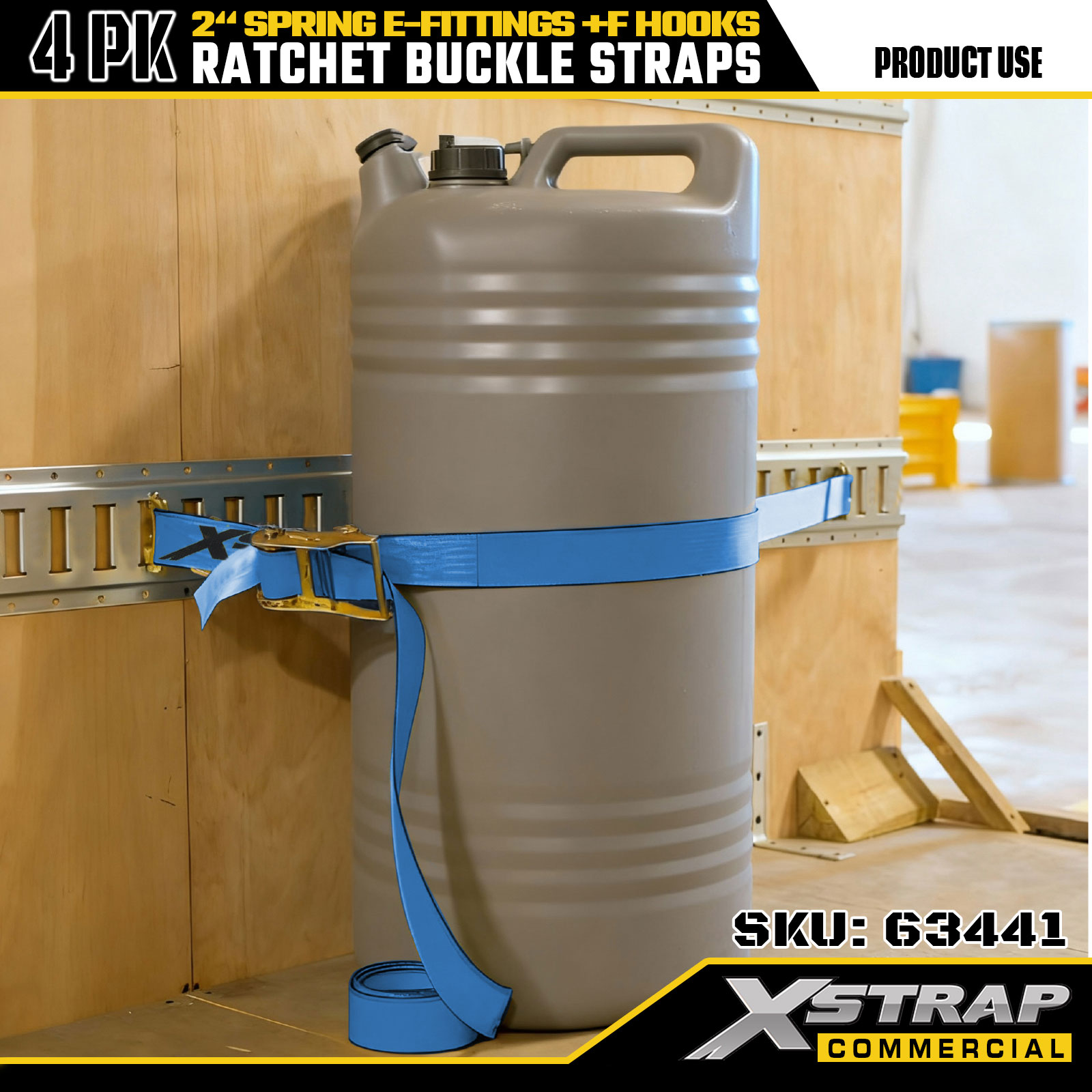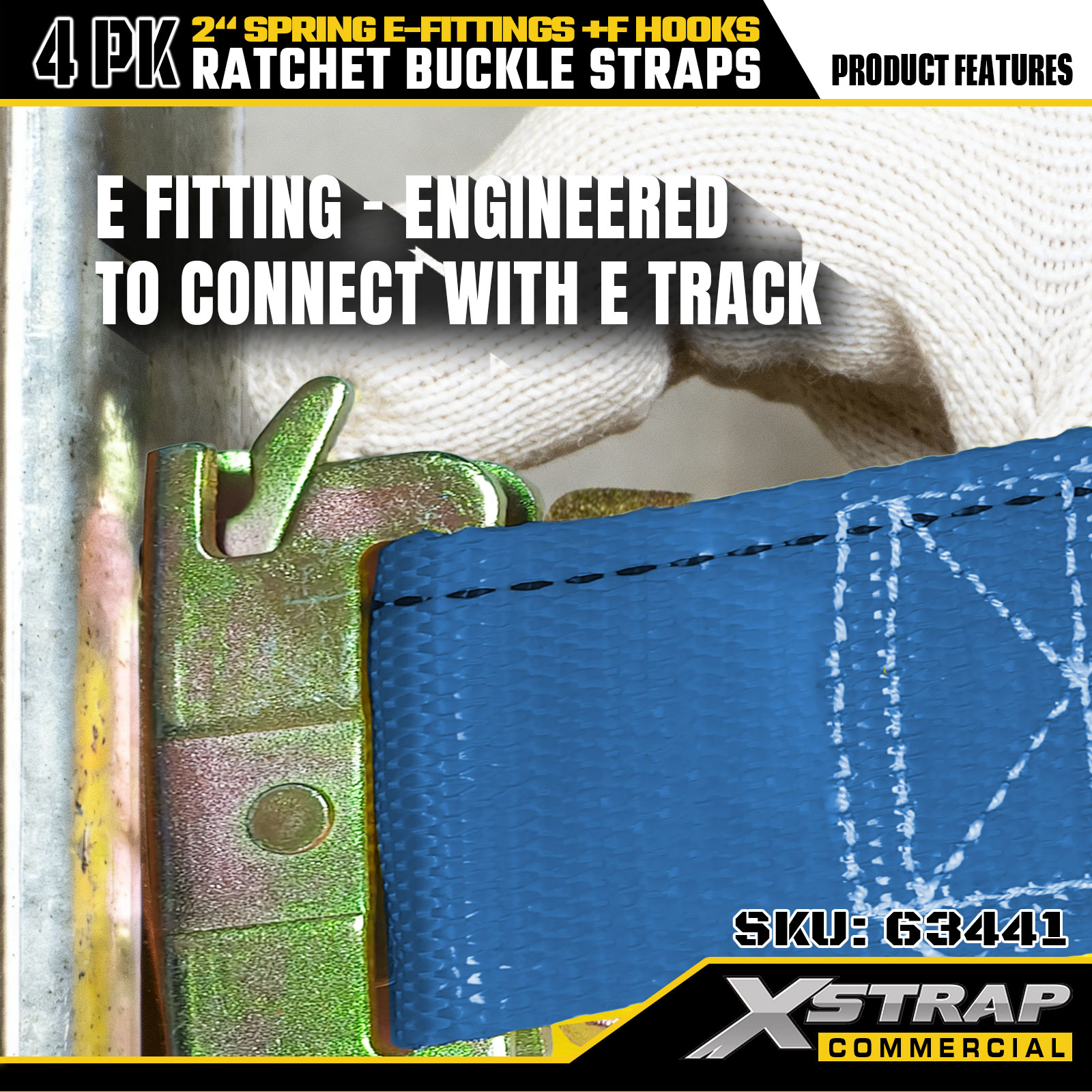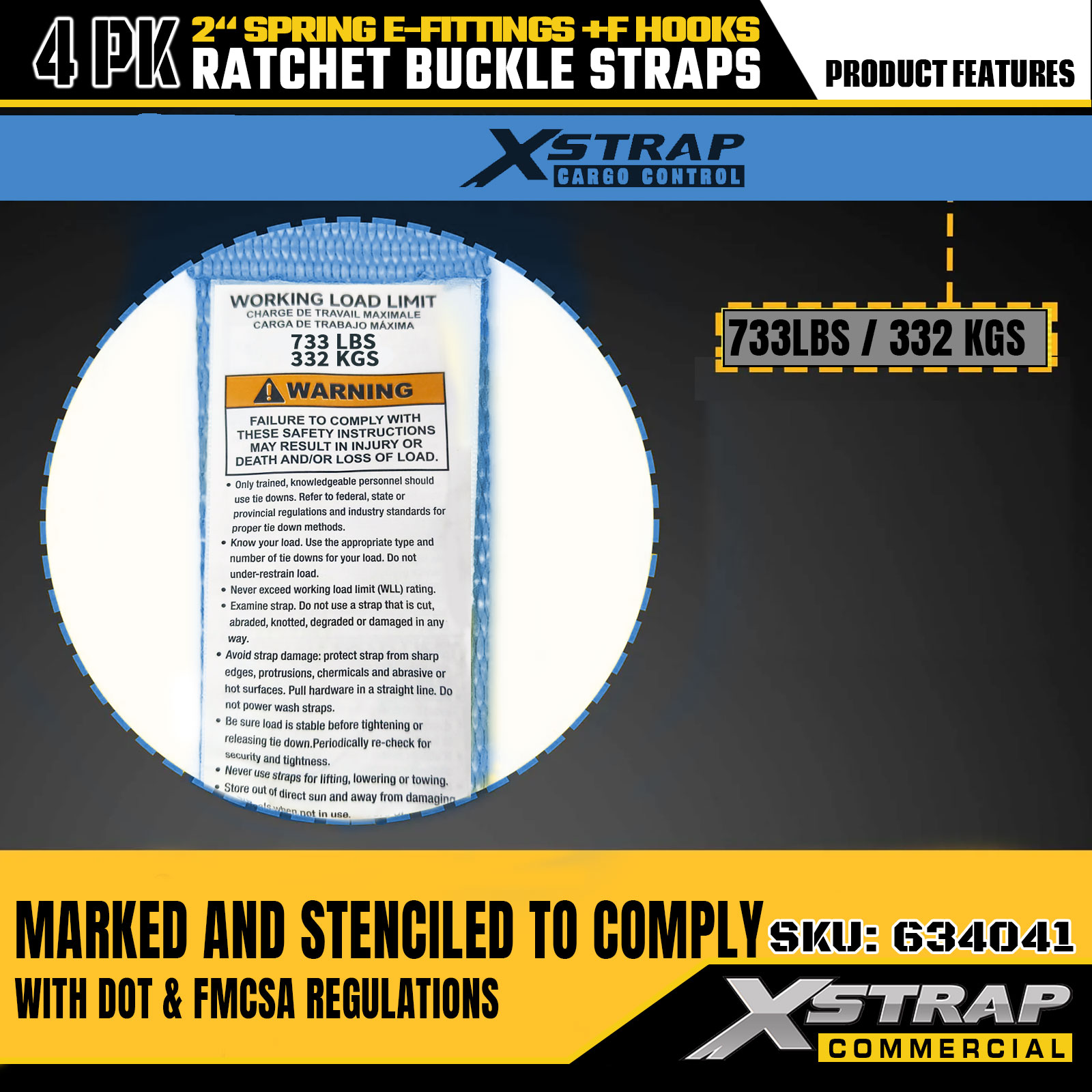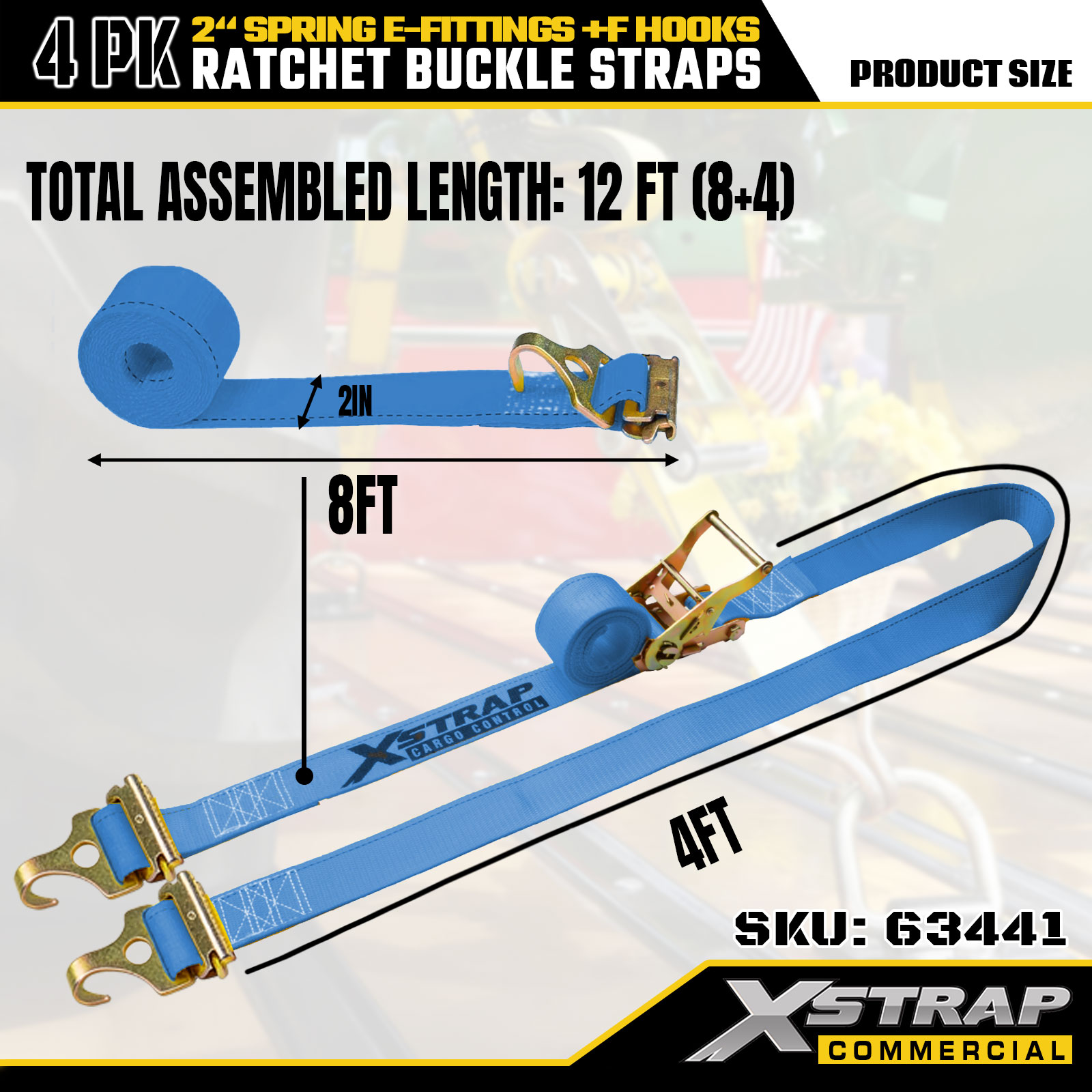 Комплект из 4 стяжных ремней Xstrap с храповым механизмом, полиэстер 2 x 12 футов с пружинными E-фитингами и F-образными крючками, 733 фунта SWL и 332 фунта прочности на разрыв для грузовых автомобилей, переездов и грузовых перевозок общего назначения