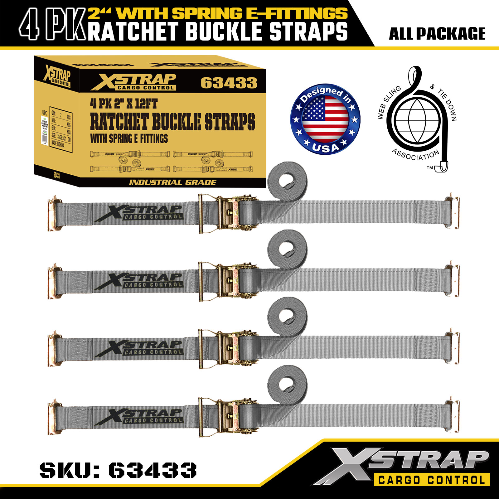 2 дюйма х 16 футов 4 шт. Ремни с пряжкой с храповым механизмом и пружинными электронными фитингами