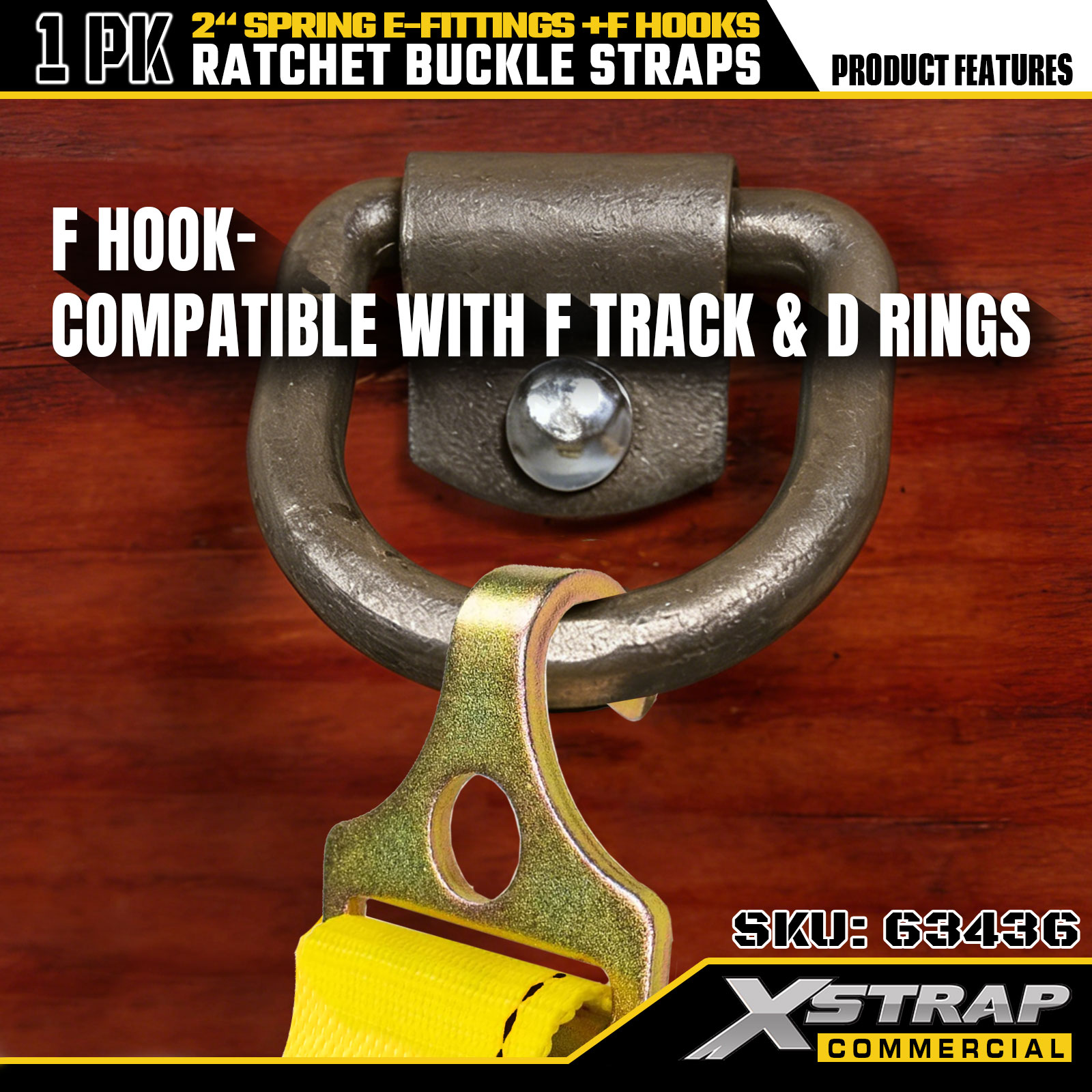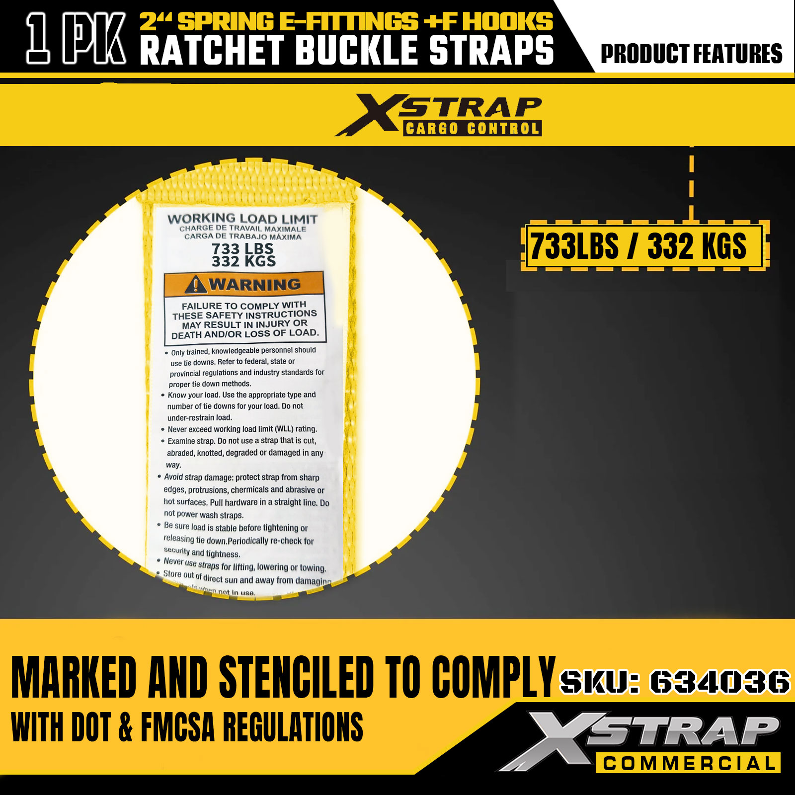 Xstrap, 1 упаковка стяжных ремней с храповым механизмом, крепления для тяжелых грузов размером 2 x 12 футов с пружинными электронными фитингами и F-образными крючками (желтые), грузоподъемность 733 фунта для крепления прицепов, грузовиков, фургонов и мотоциклов
