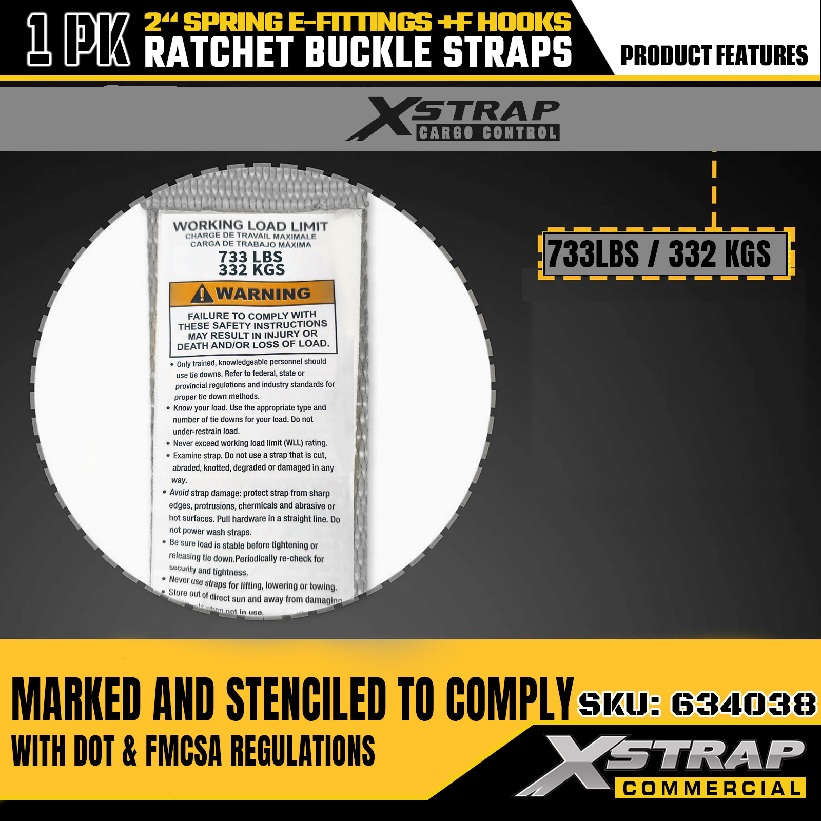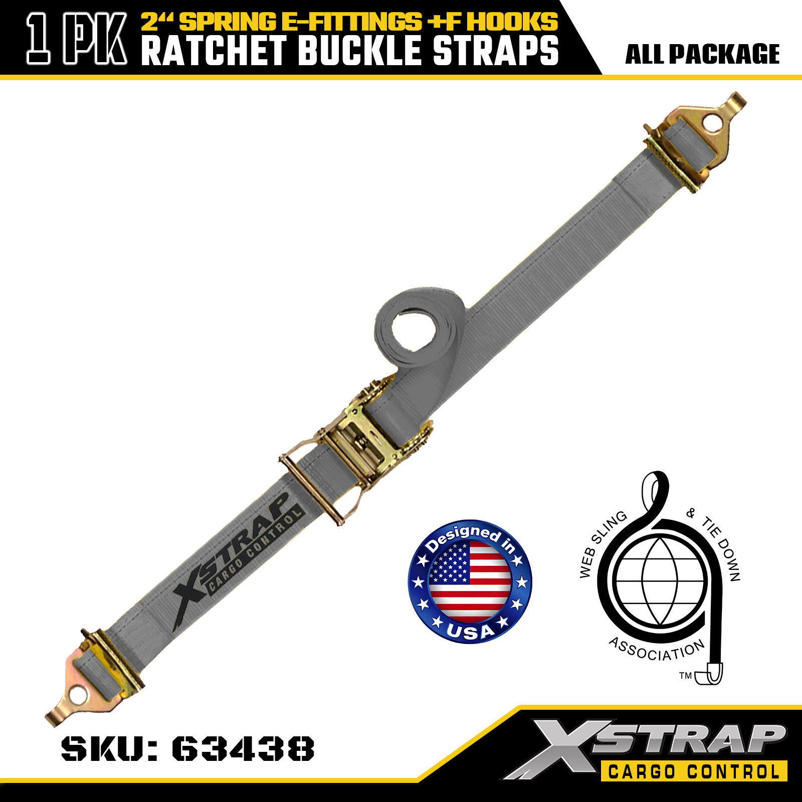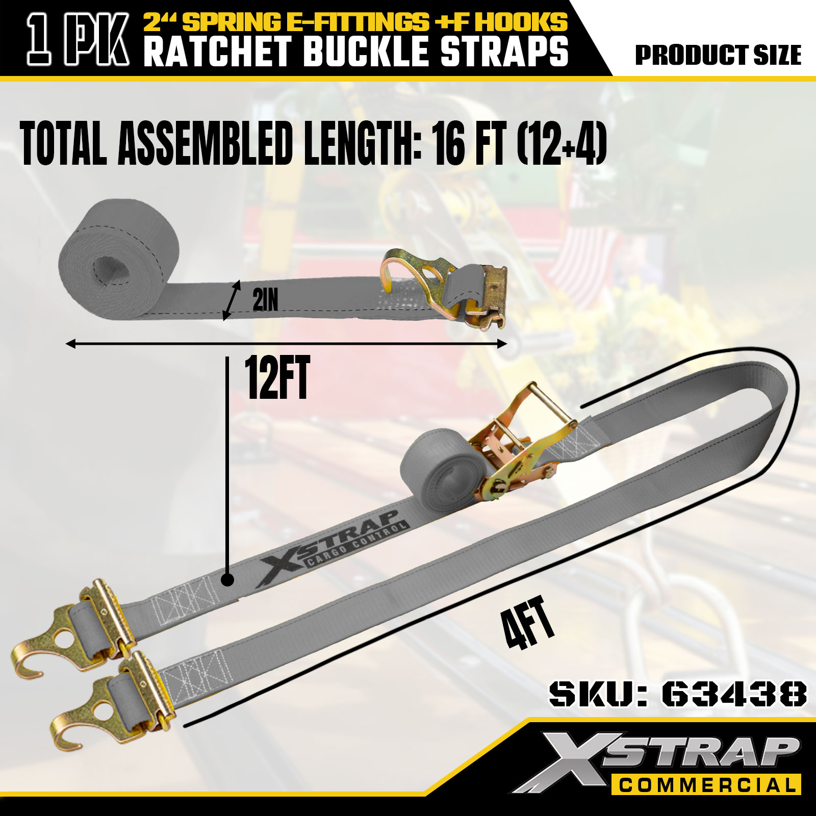 Xstrap: 1 упаковка стяжных ремней с храповым механизмом, полиэстер 2 x 16 футов с пружинными E-образными фитингами и F-образными крючками, 733 фунта SWL и 332 фунта прочности на разрыв для грузовых автомобилей, переездов и перевозки обычных грузов