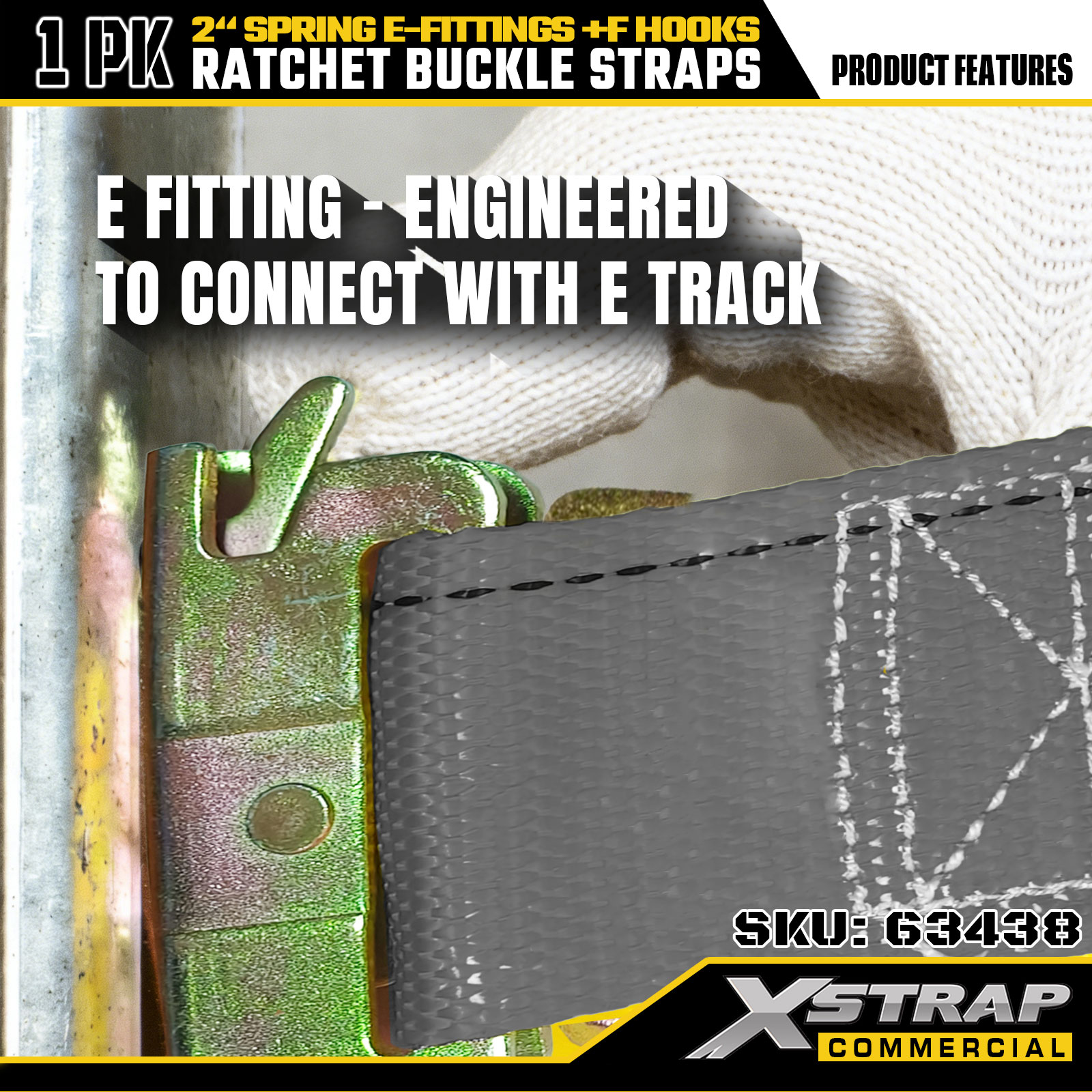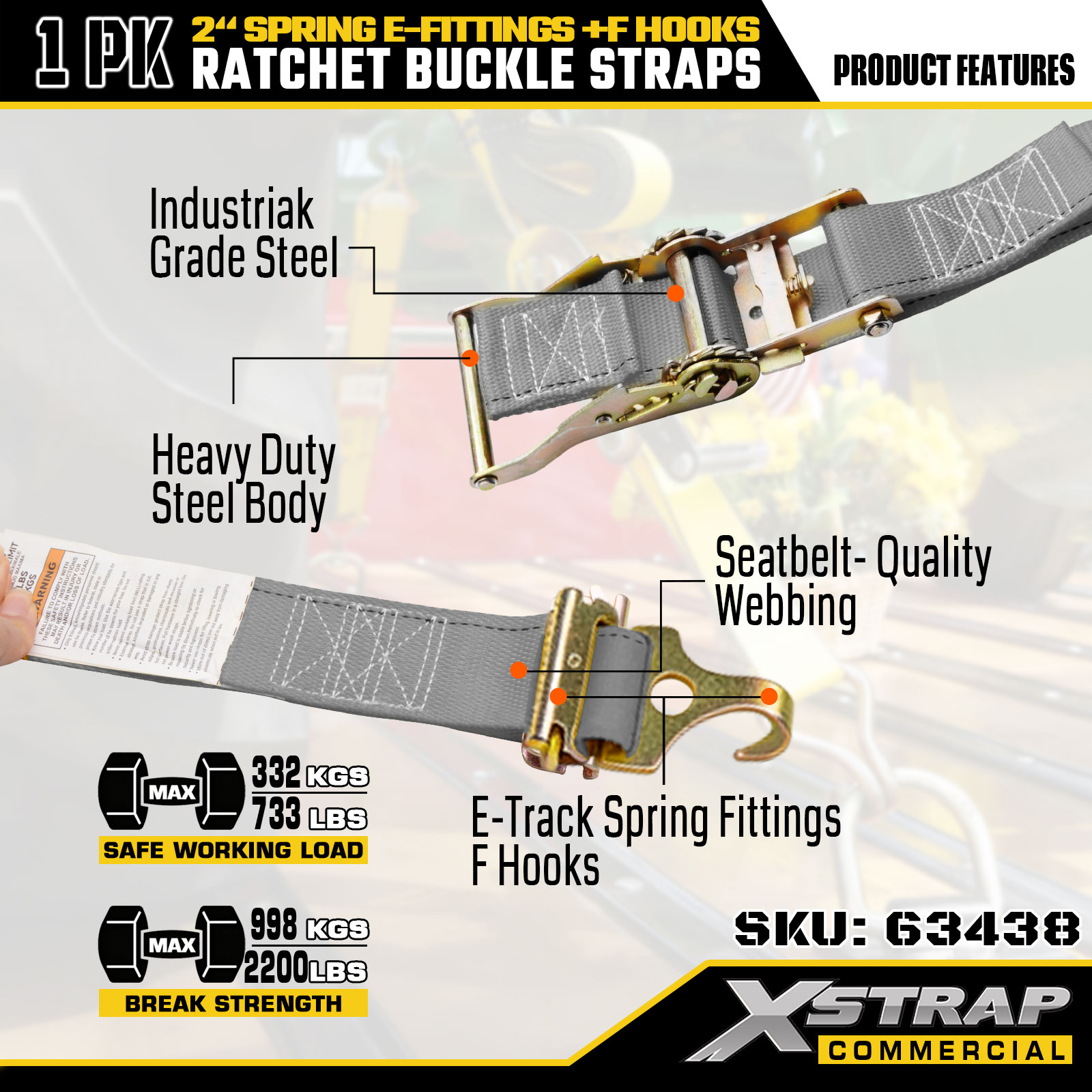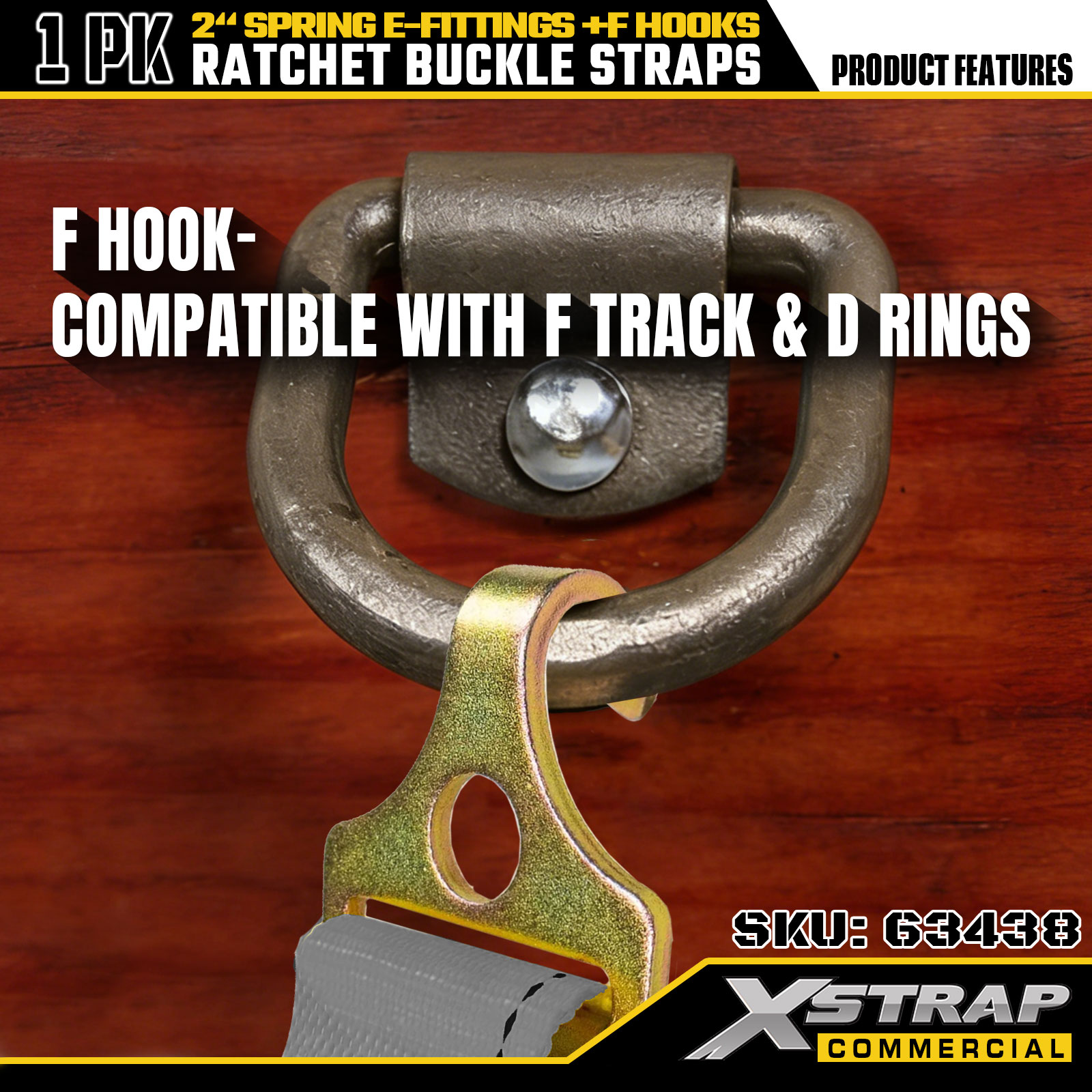 Xstrap: 1 упаковка стяжных ремней с храповым механизмом, полиэстер 2 x 16 футов с пружинными E-образными фитингами и F-образными крючками, 733 фунта SWL и 332 фунта прочности на разрыв для грузовых автомобилей, переездов и перевозки обычных грузов
