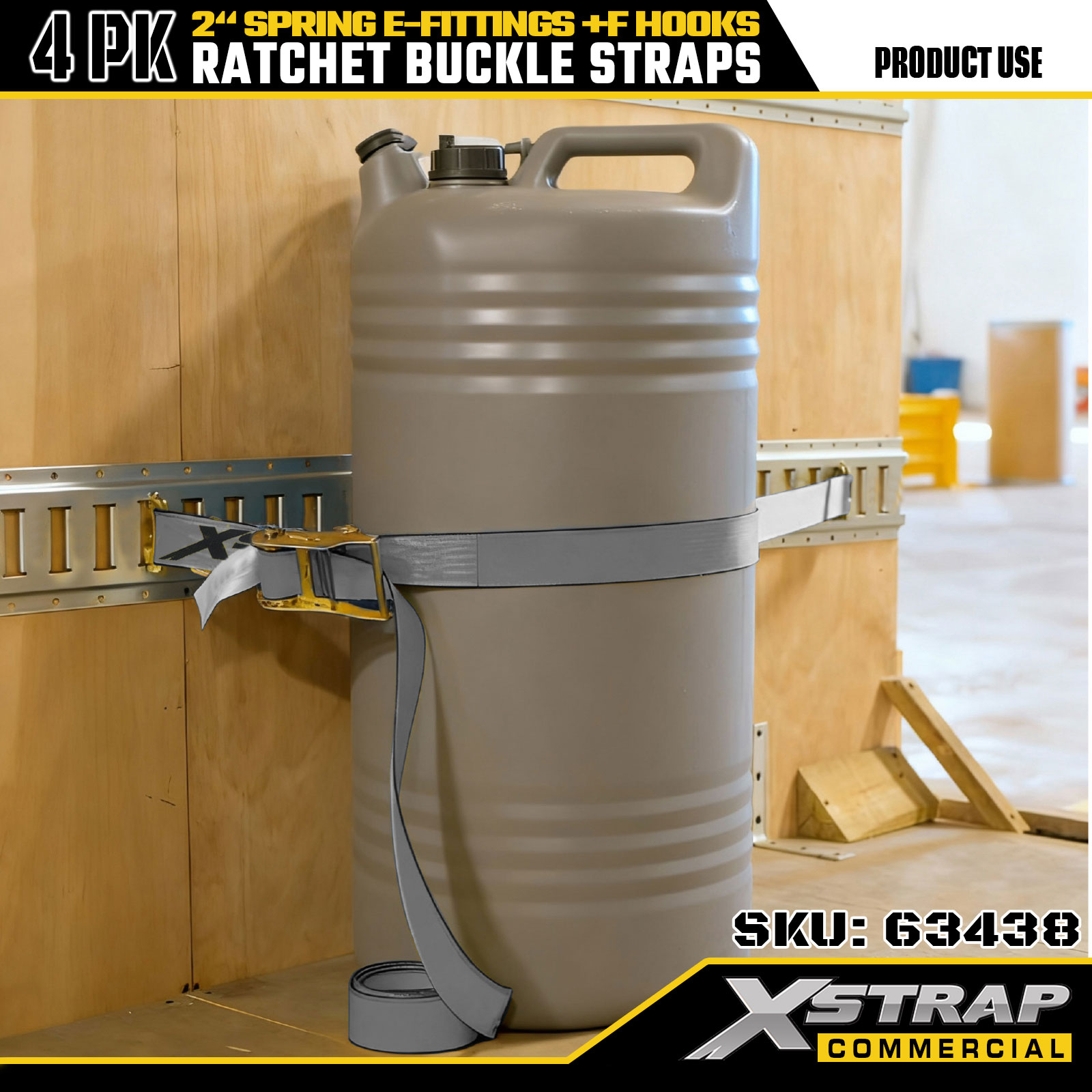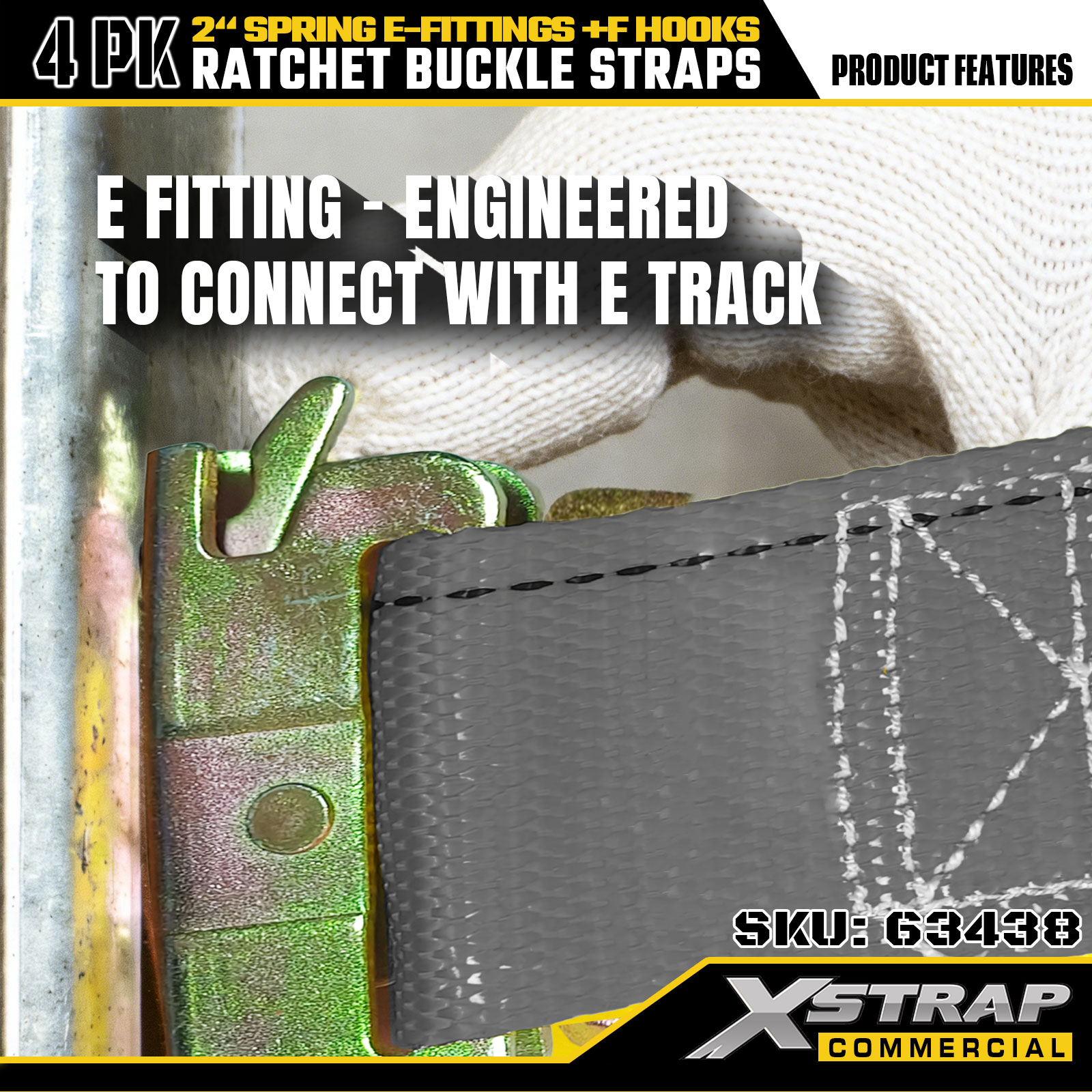 Набор из 4 ремней Xstrap размером 2 x 16 футов с храповым механизмом — серый полиэстер с пружинными электро-фитингами и F-образными крючками, SWL 733 фунта для перевозки грузов, грузовых автомобилей и обычных грузов