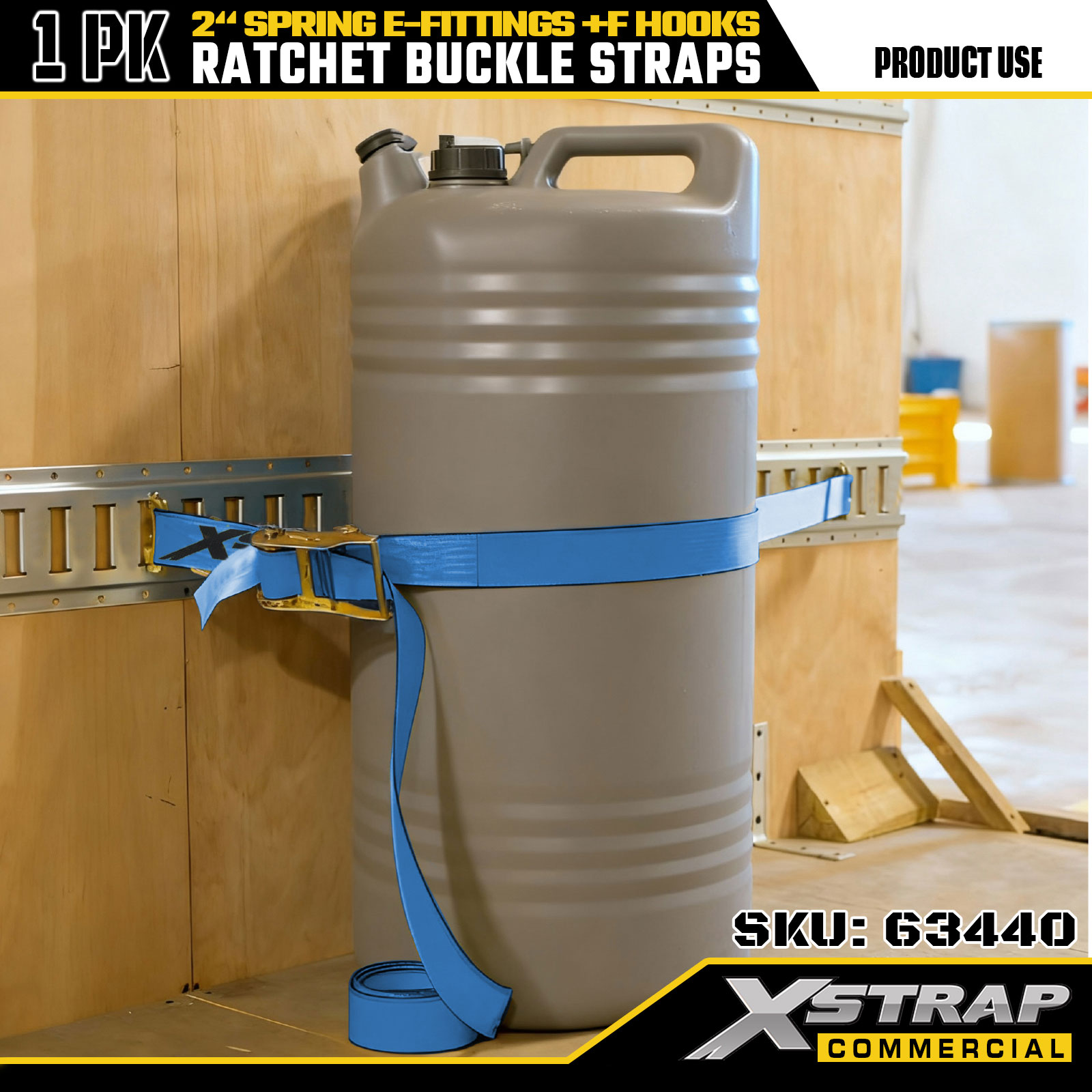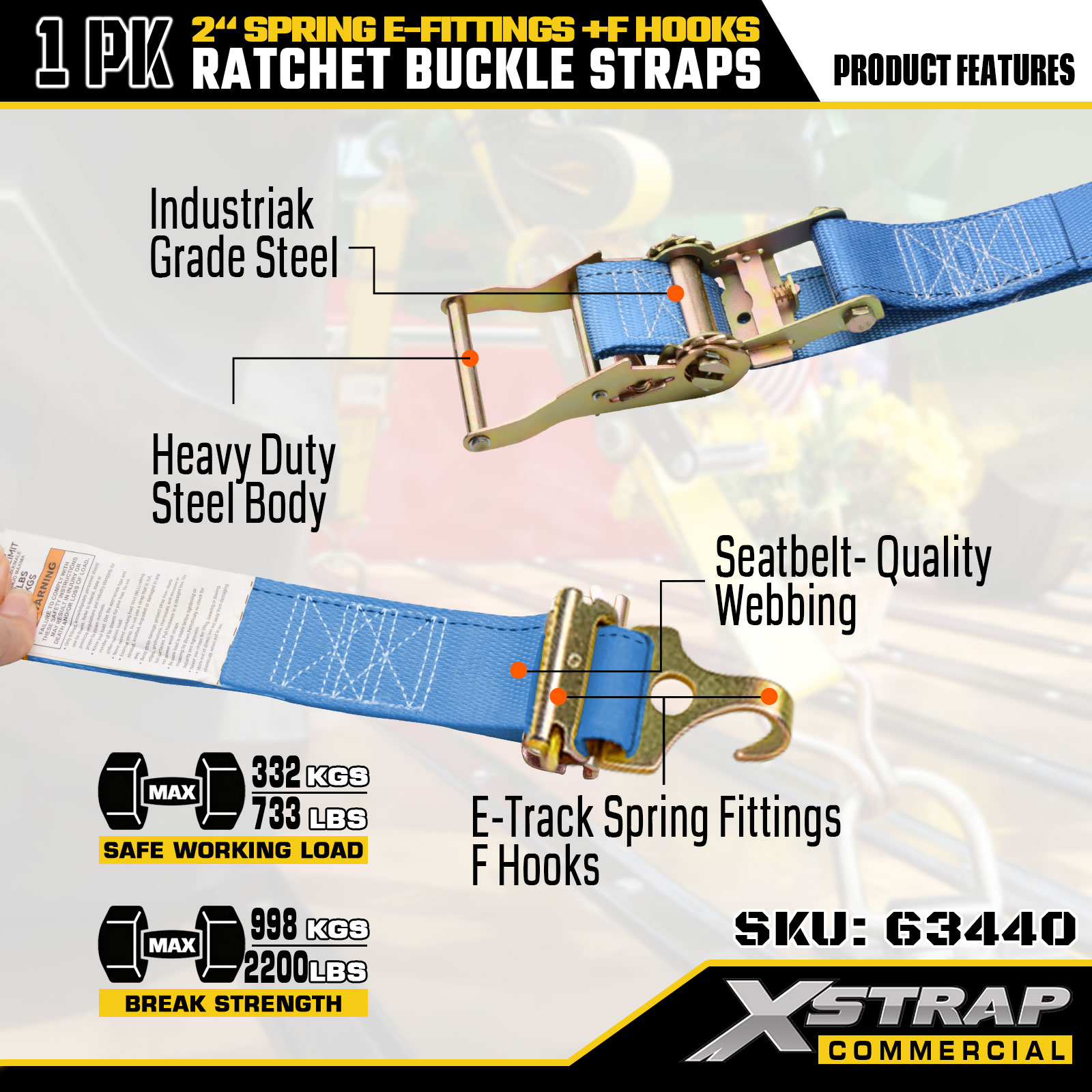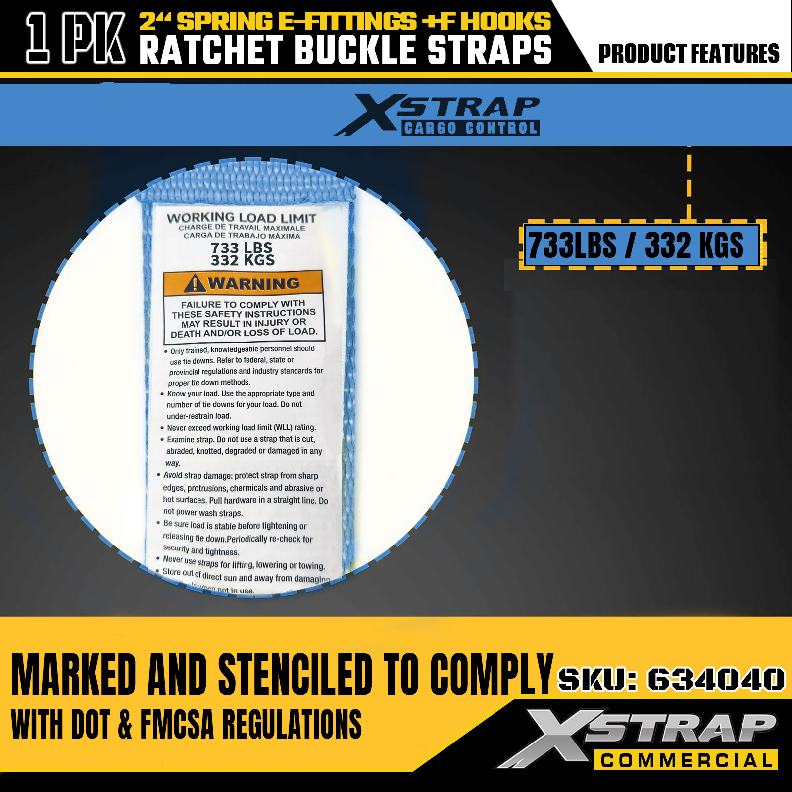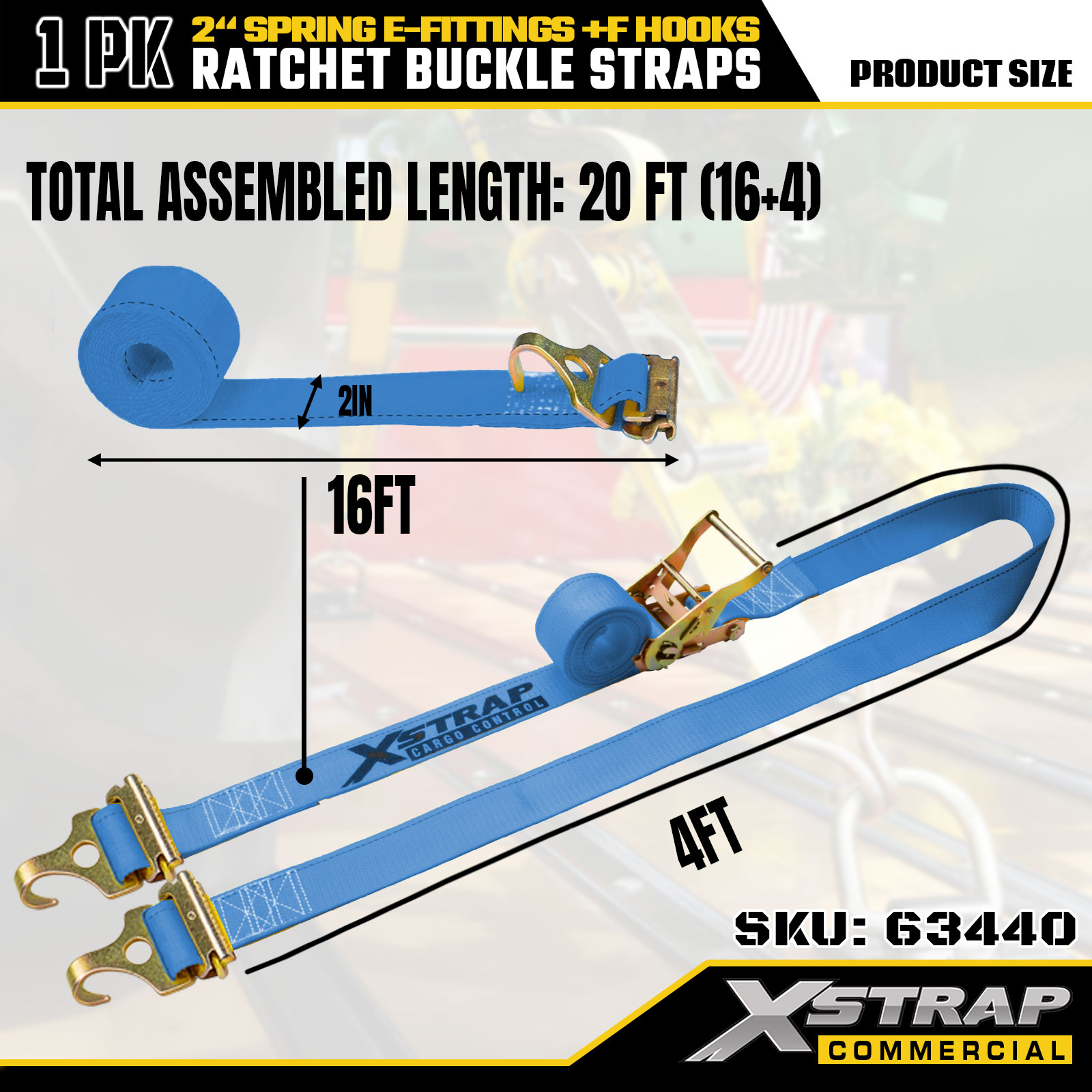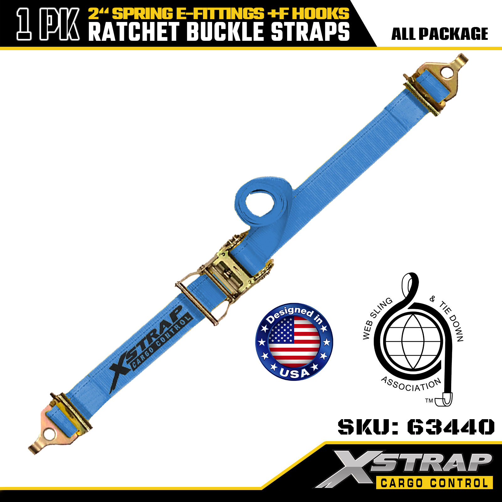 Xstrap 63440 Прочный ремень с храповым механизмом, 2 дюйма x 20 футов (1 шт.) — синяя лента, пружинные фитинги и F-образные крючки, SWL 733 фунта для переездов, грузовых перевозок и использования грузовиков