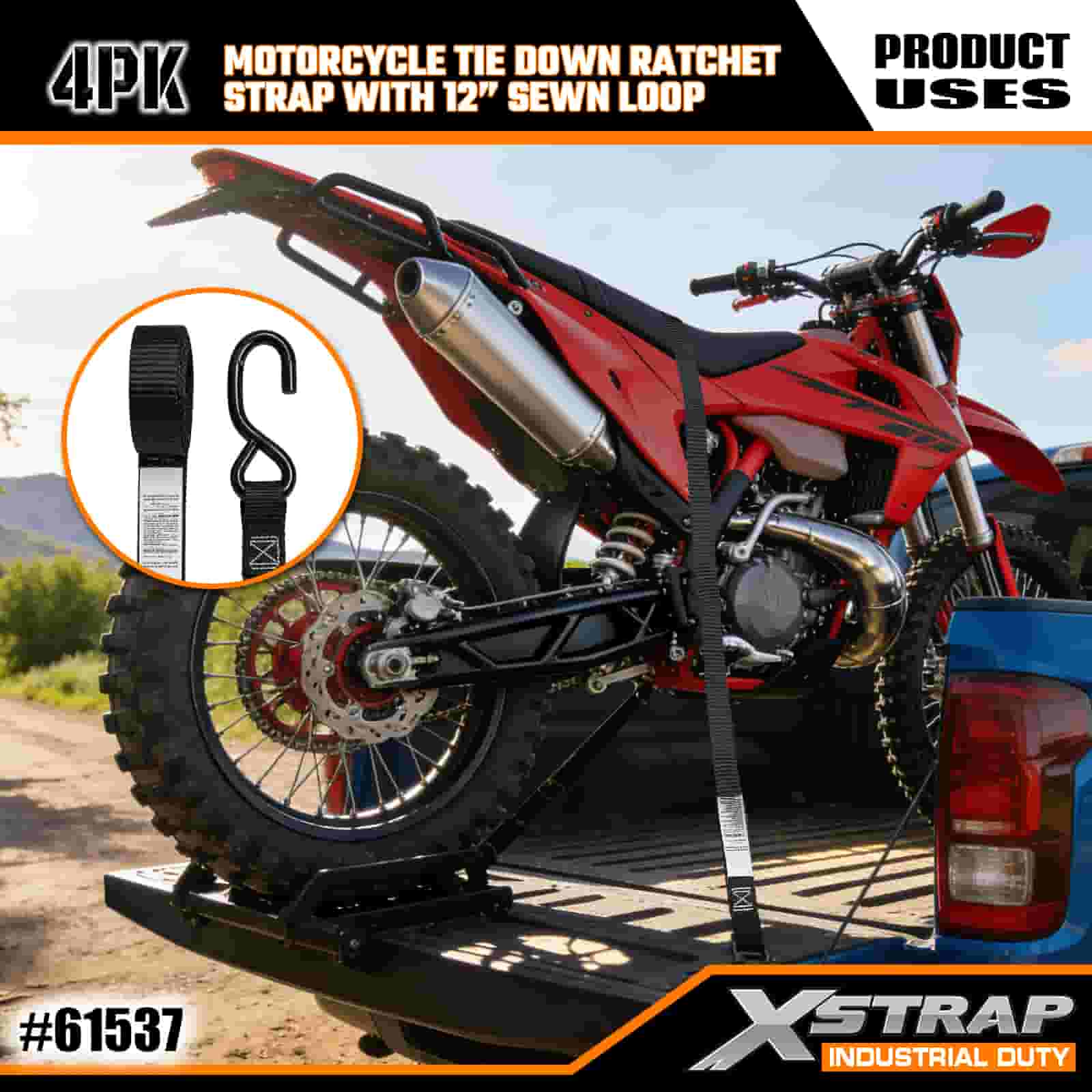 - Комплект из 4 ремней длиной 6 футов для крепления мотоциклов: продается в виде набора из 4 ремней (шириной 1 дюйм и длиной 6 футов), идеально подходящих для крепления мотоциклов, квадроциклов и небольшого снаряжения в кузовах грузовиков или во время транспортировки.