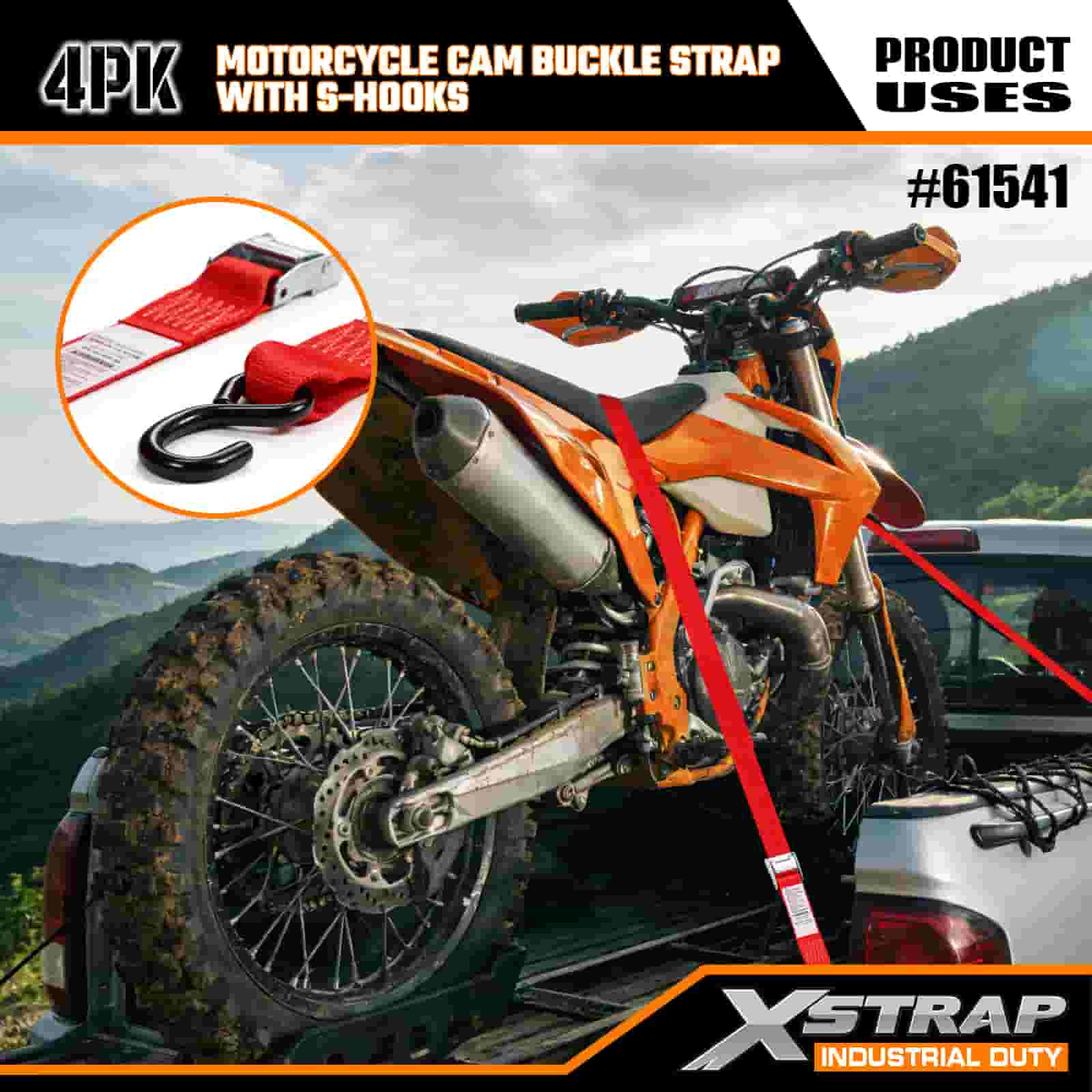 - Четкие номинальные нагрузки: каждый ремень показывает безопасную рабочую нагрузку 181 кг (400 фунтов) и прочность на разрыв 543 кг (1200 фунтов). Они соответствуют стандартам безопасности при транспортировке, поэтому вам никогда не придется гадать, в безопасности ли ваш мотоцикл.