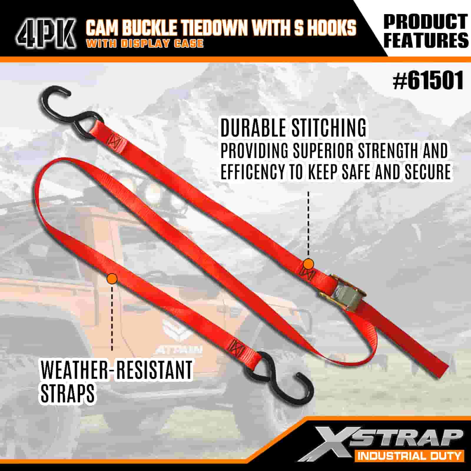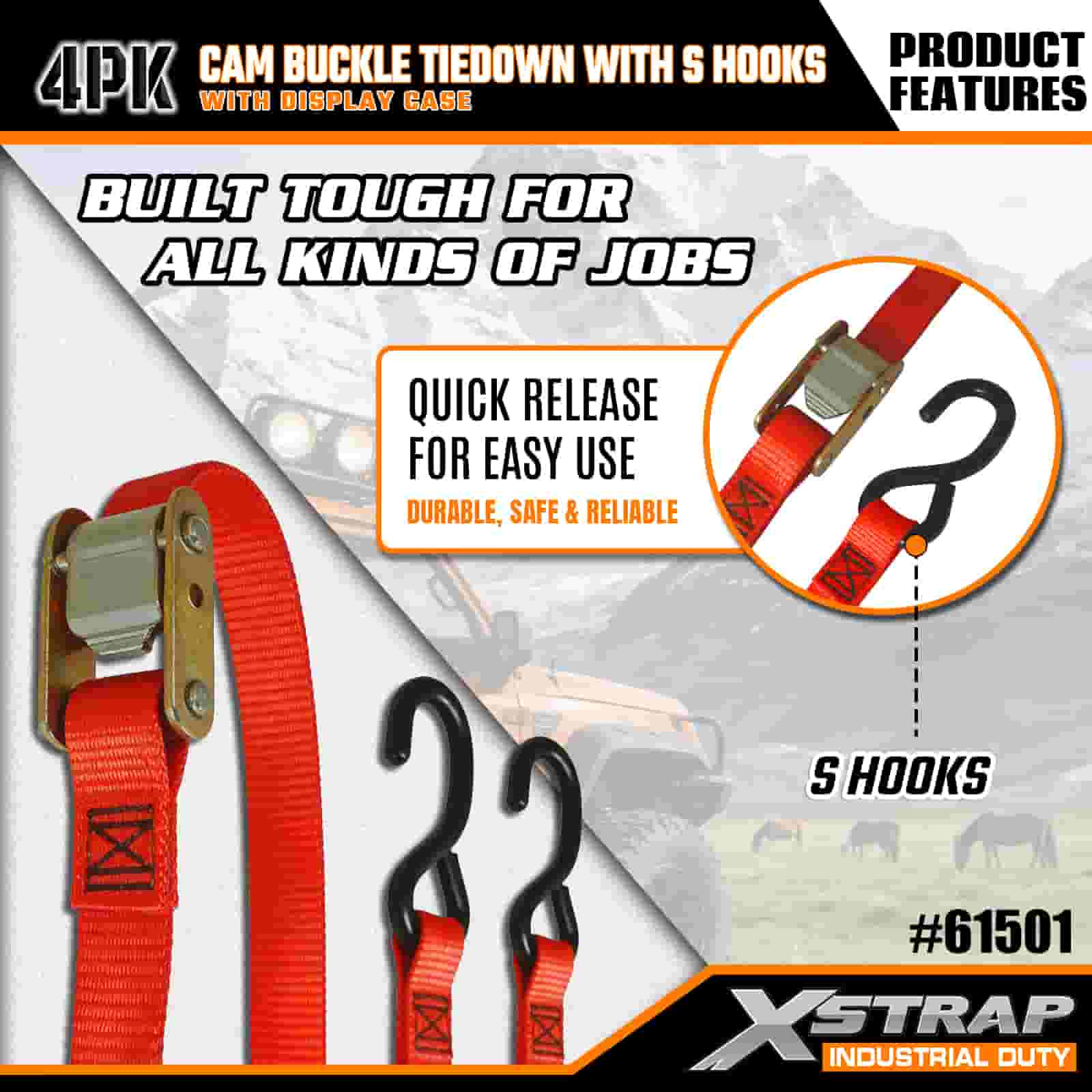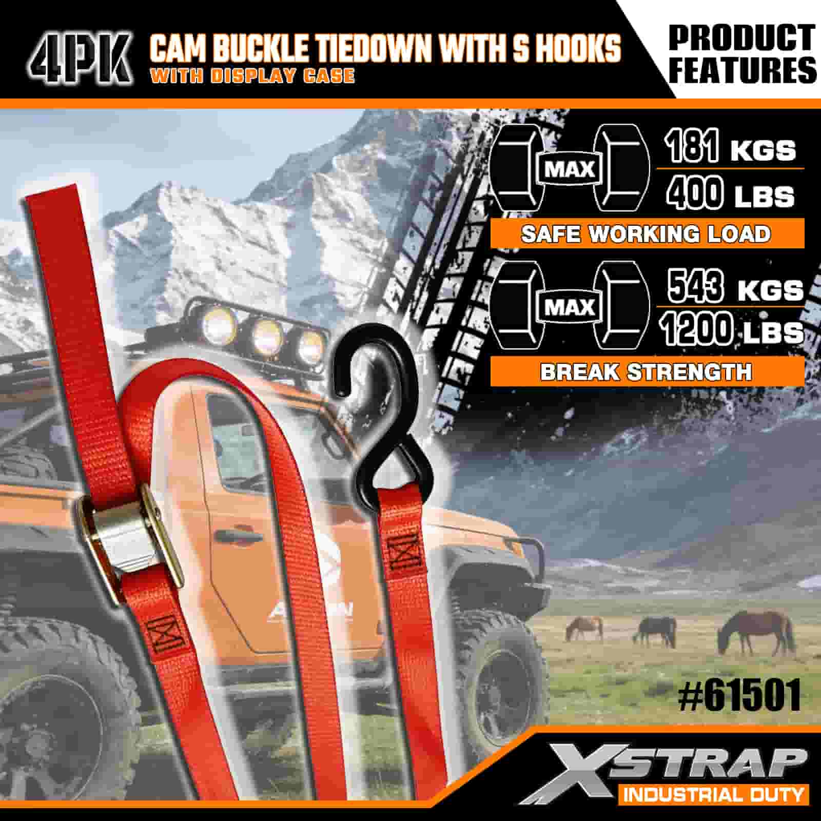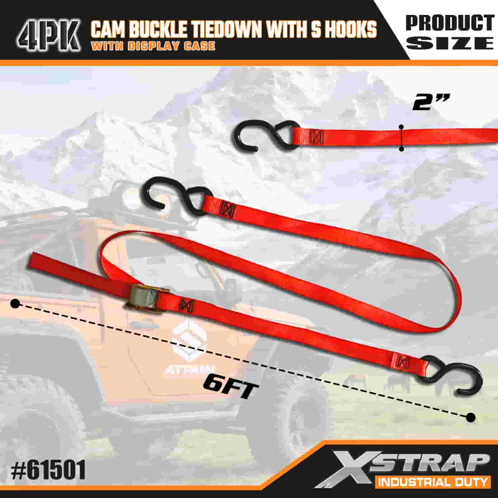 Xstrap, 4 упаковки с пряжкой Cam с крючками S, полиэфирный ремень размером 2 x 6 футов с пряжкой с кулачком, ремни для крепления груза грузоподъемностью 400 фунтов с крючками S для серьезных профессионалов для закрепления грузового прицепа, прицепа с плоской платформой, лыжной лодки, небольшого автомобиля.