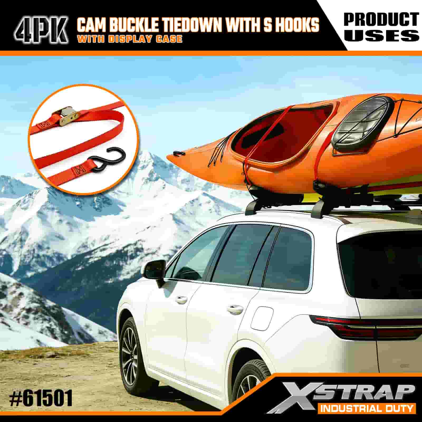 - Практичная упаковка из 4 штук с витринным футляром: продается в наборе из 4 штук (с демонстрационной упаковкой) для пакетного использования, каждый ремень имеет ширину 2 дюйма и длину 6 футов, что идеально подходит для крепления таких предметов, как каяки, снаряжение для активного отдыха или груз.