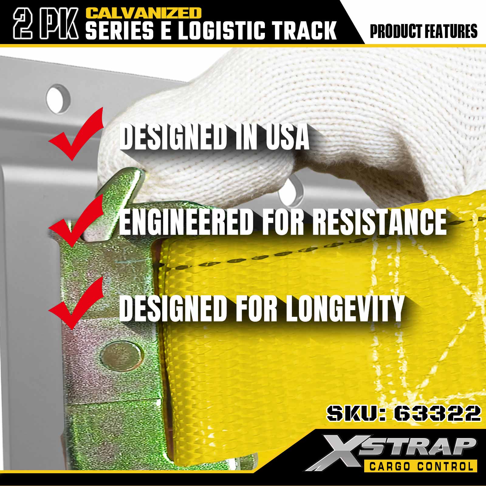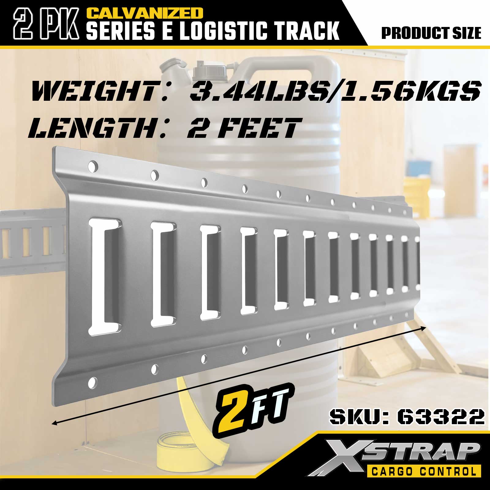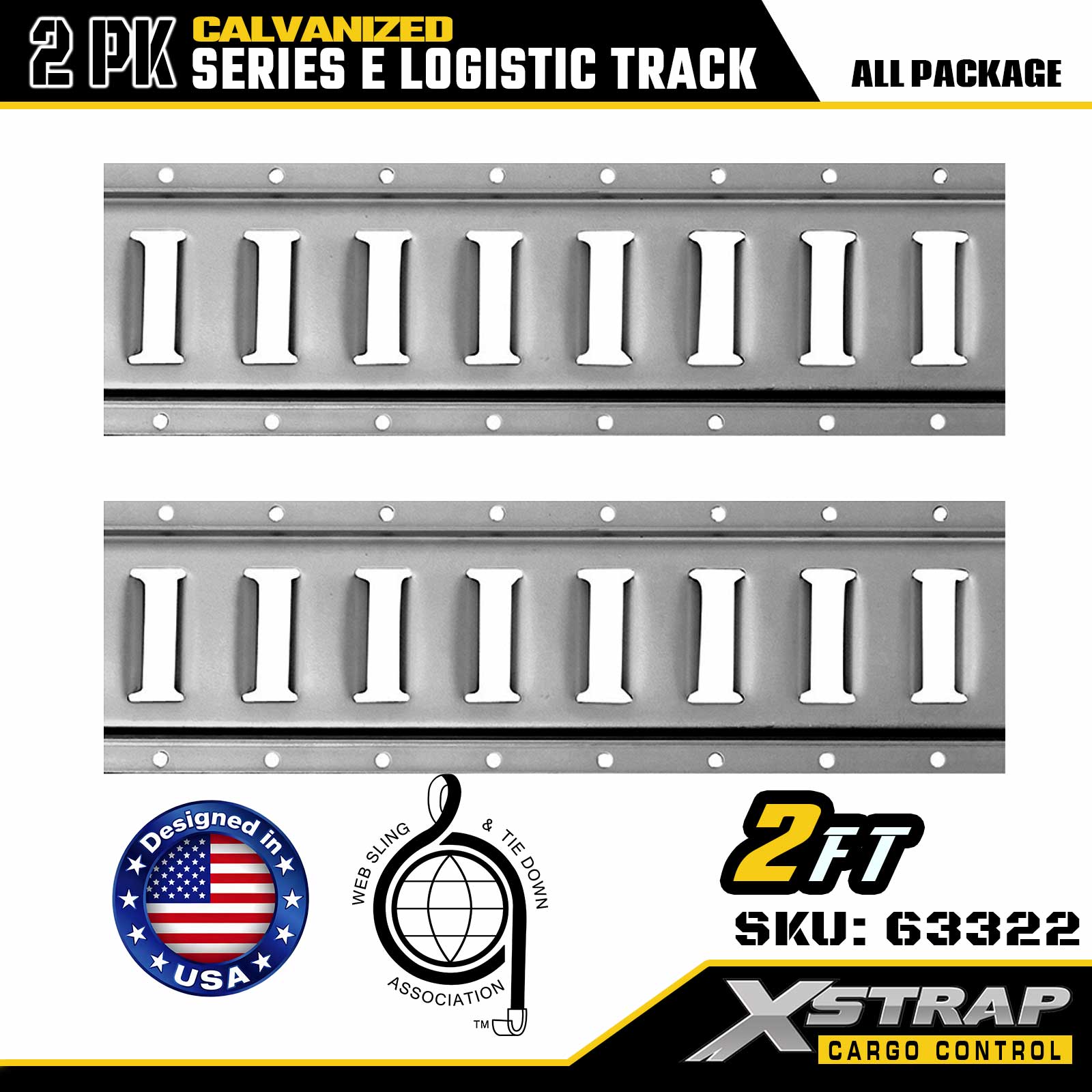 Xstrap 63322 Грузовой рельс E-типа, 2 фута с гальваническим покрытием серебристого цвета — сталь 12 калибра с оцинкованным покрытием, грузоподъемность 6000 фунтов, 2 шт. для