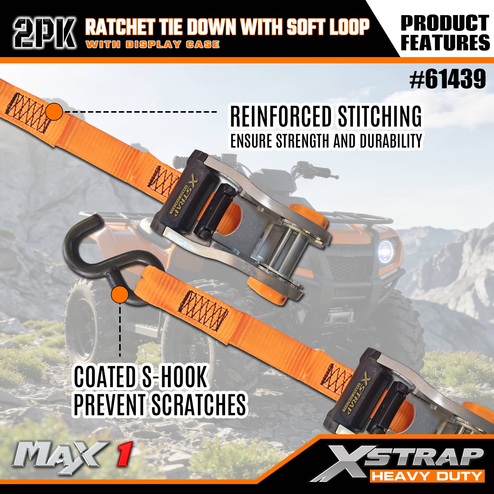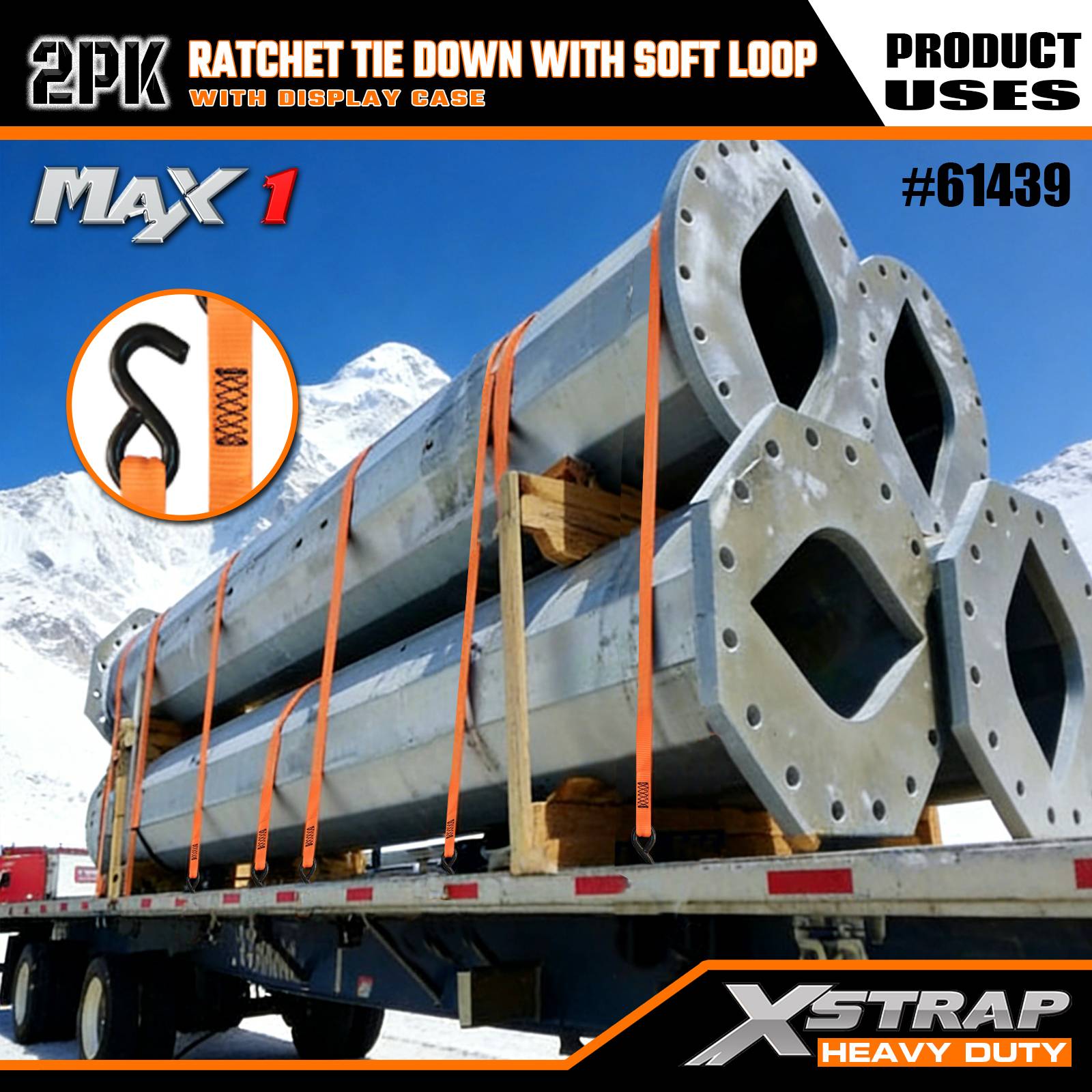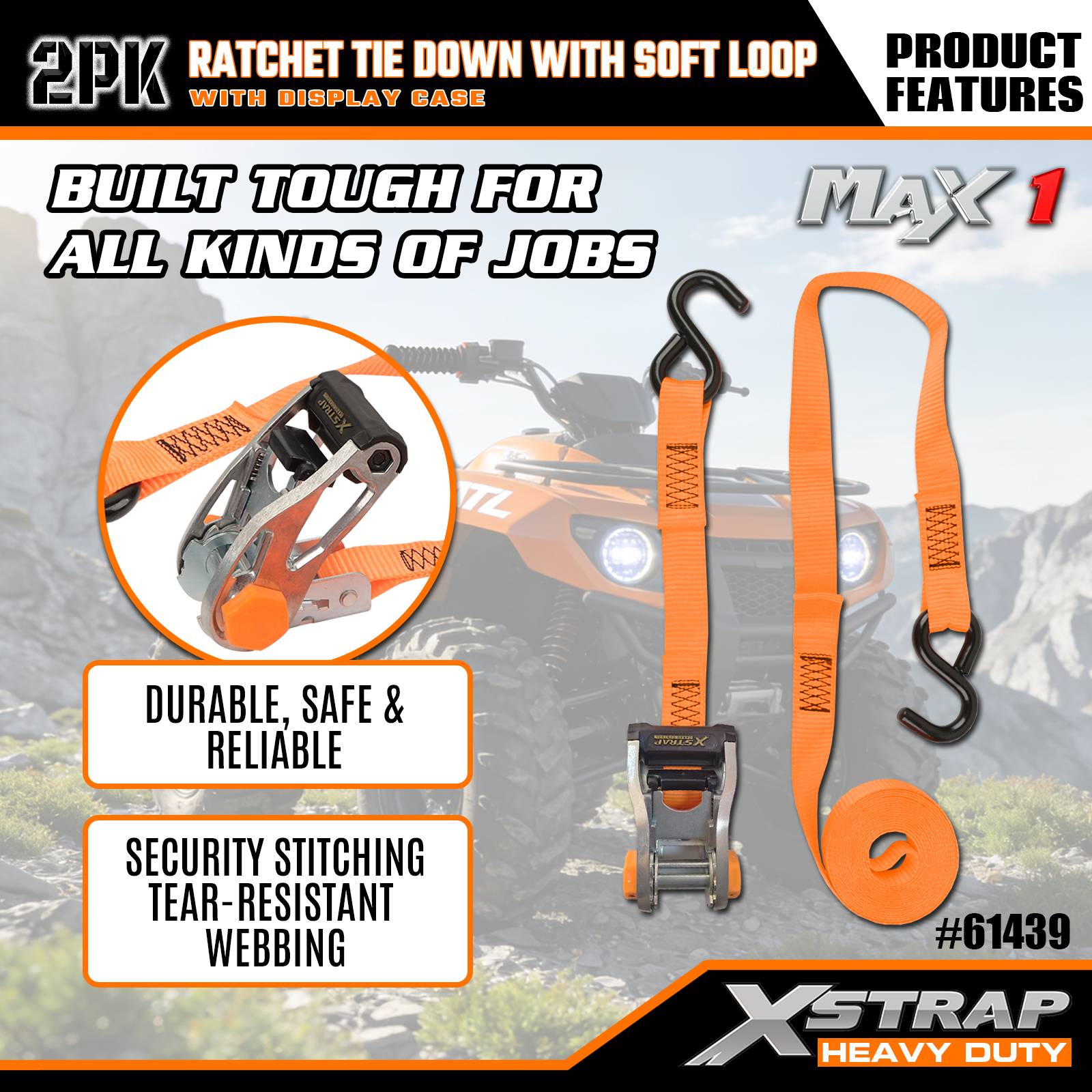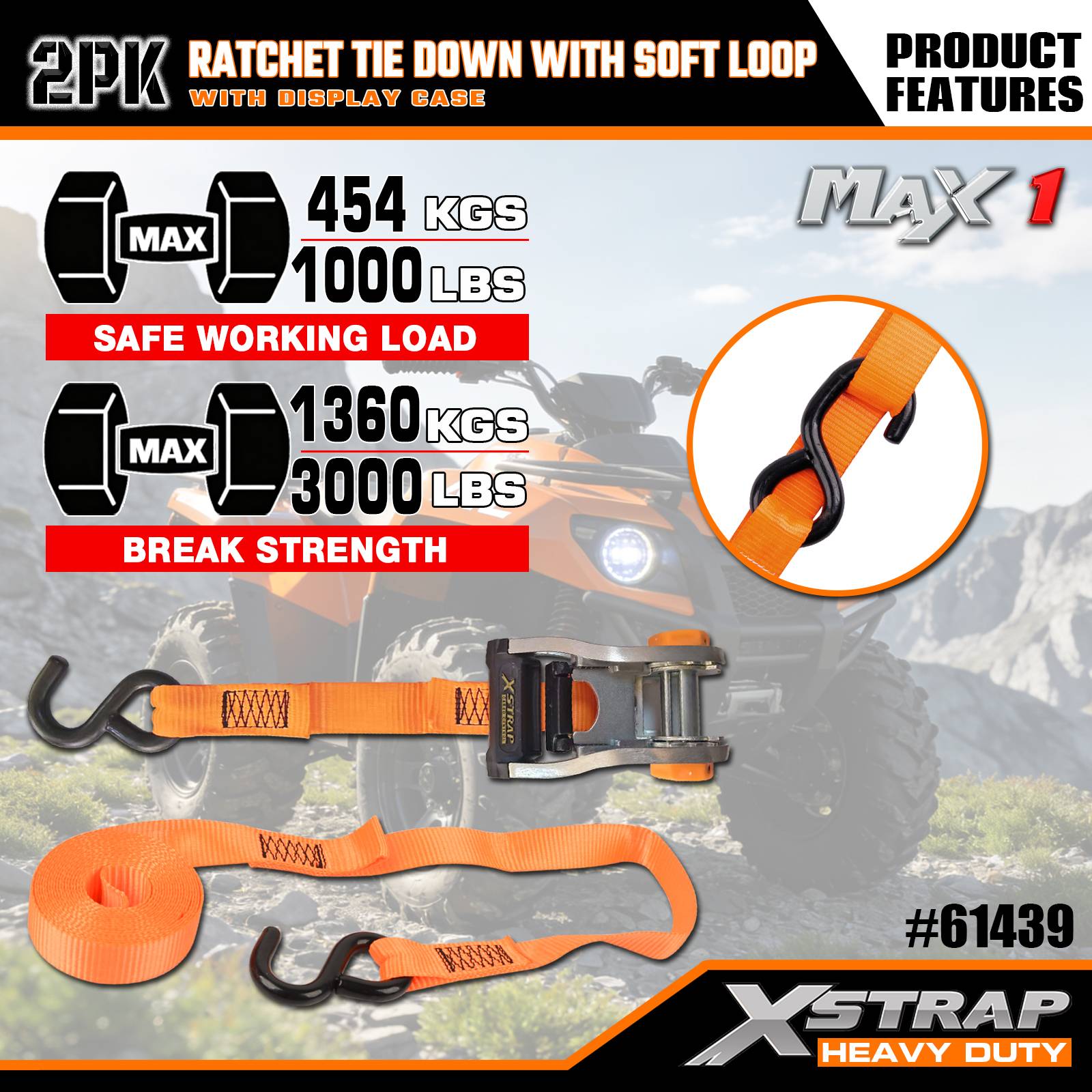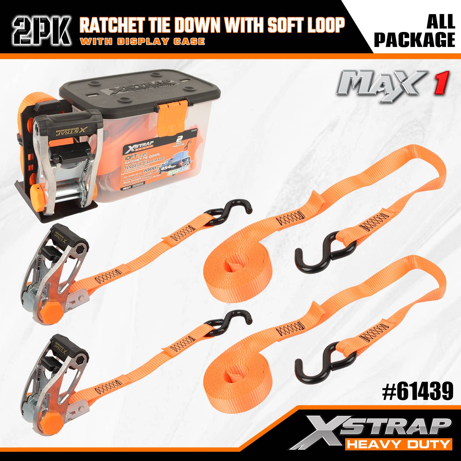 Xstrap 2 комплекта стяжек с храповым механизмом и мягкой петлей, полиэстеровый стяжной ремень 1-1/16 дюймов x 10 футов, тянущий ремень с храповым механизмом, крепежные ремни для крепления груза грузоподъемностью 1000 фунтов с S-образными крючками для грузовиков, внедорожников, автомобильных верхних багажников для мотоциклов.