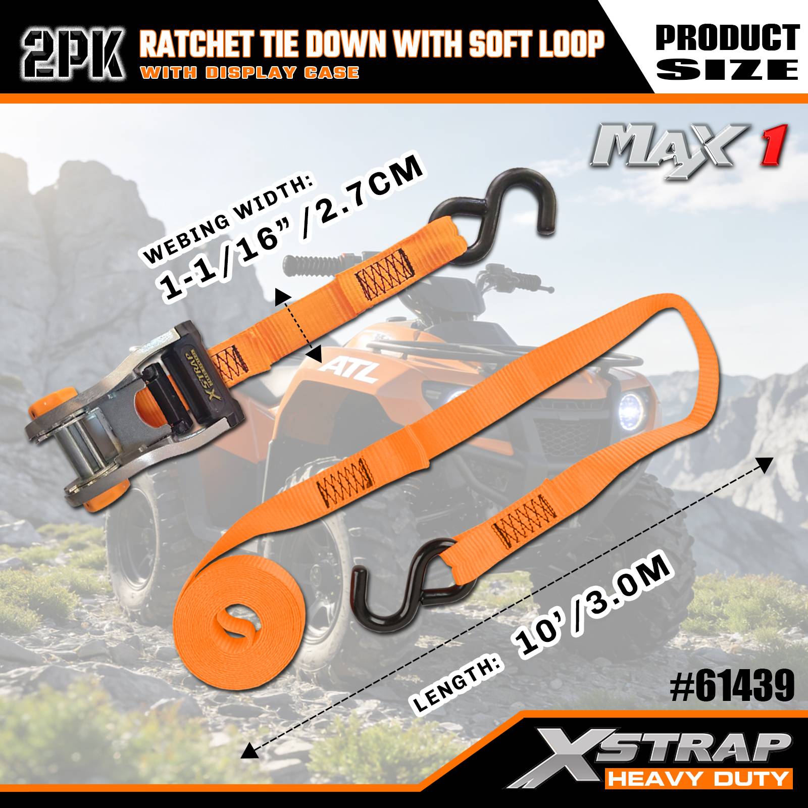 1-1/16 дюймов x 10 футов 2PK Ремни с храповым механизмом и мягкими петлями