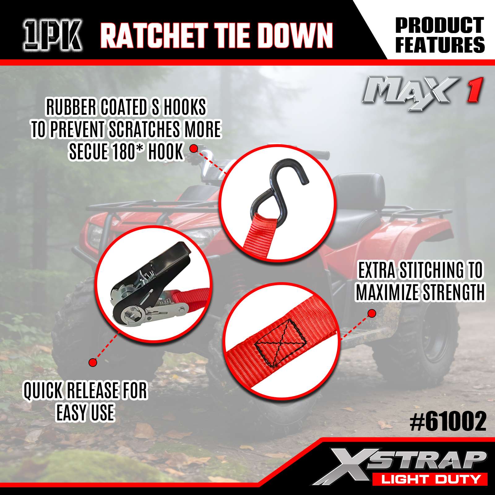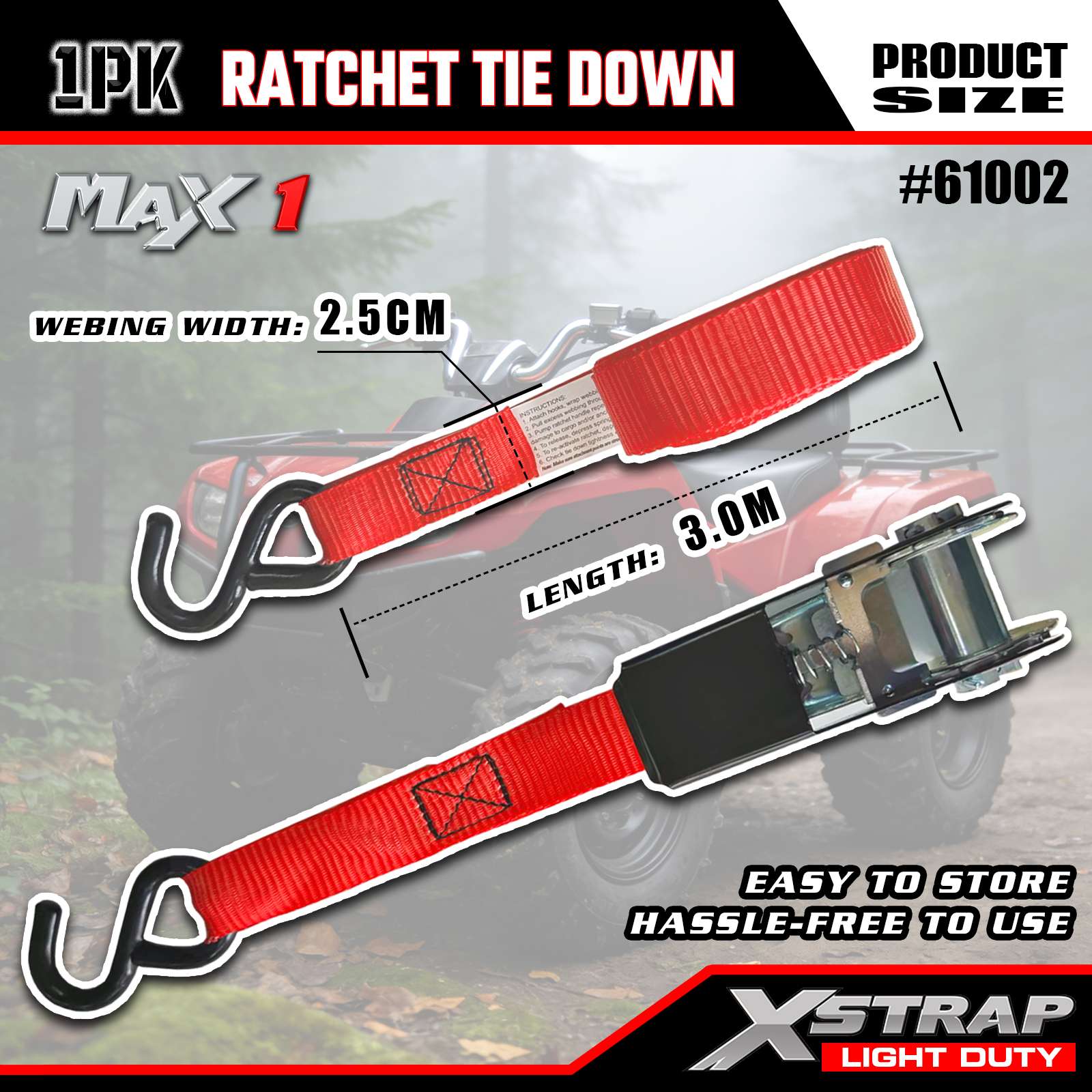 Xstrap — 1 упаковка стяжных ремней с храповым механизмом, 1 дюйм x 10 футов, предельная нагрузка 300 фунтов — разрывная нагрузка 900 фунтов — грузовые ремни для движущихся приборов, газонного оборудования, мотоциклов, камуфляжа