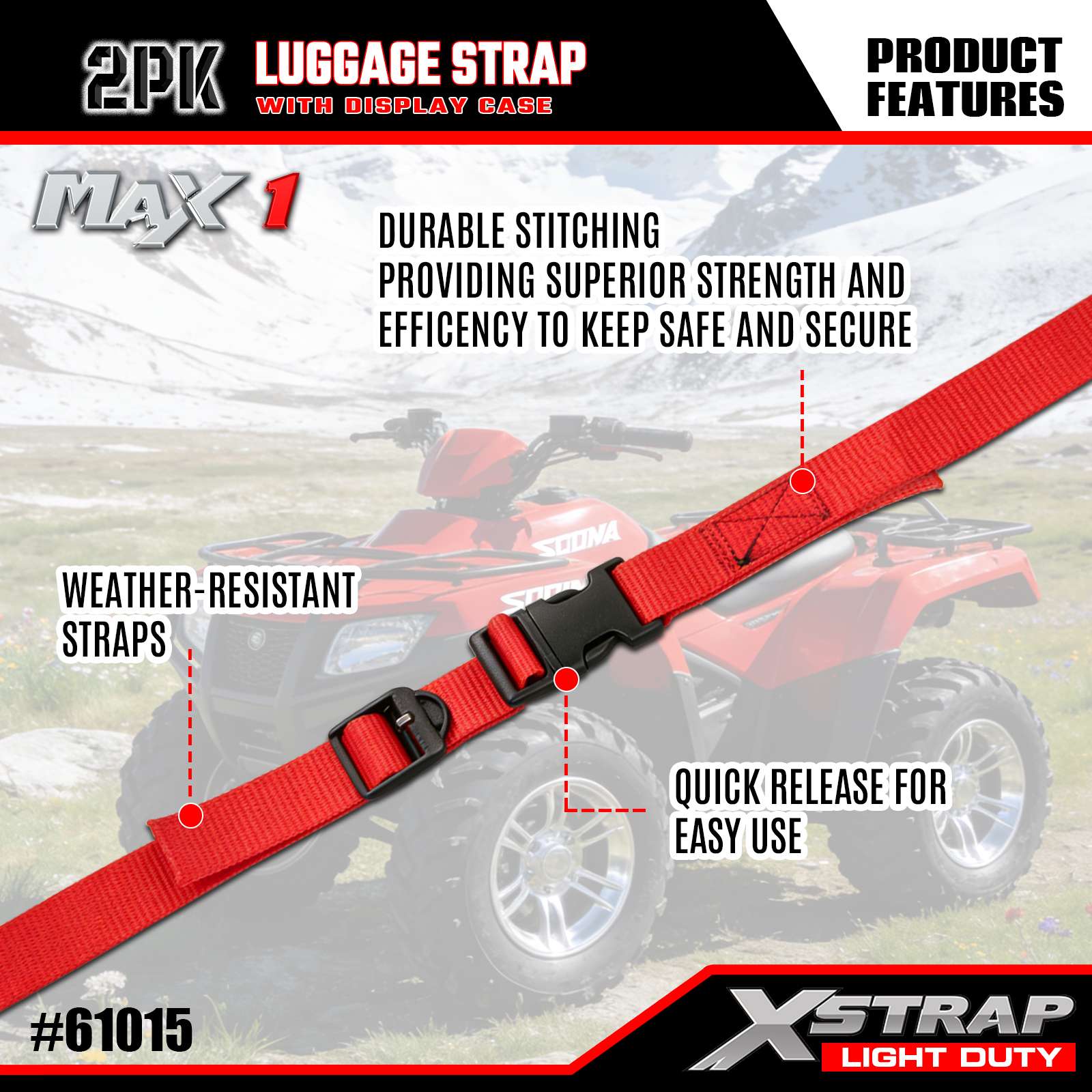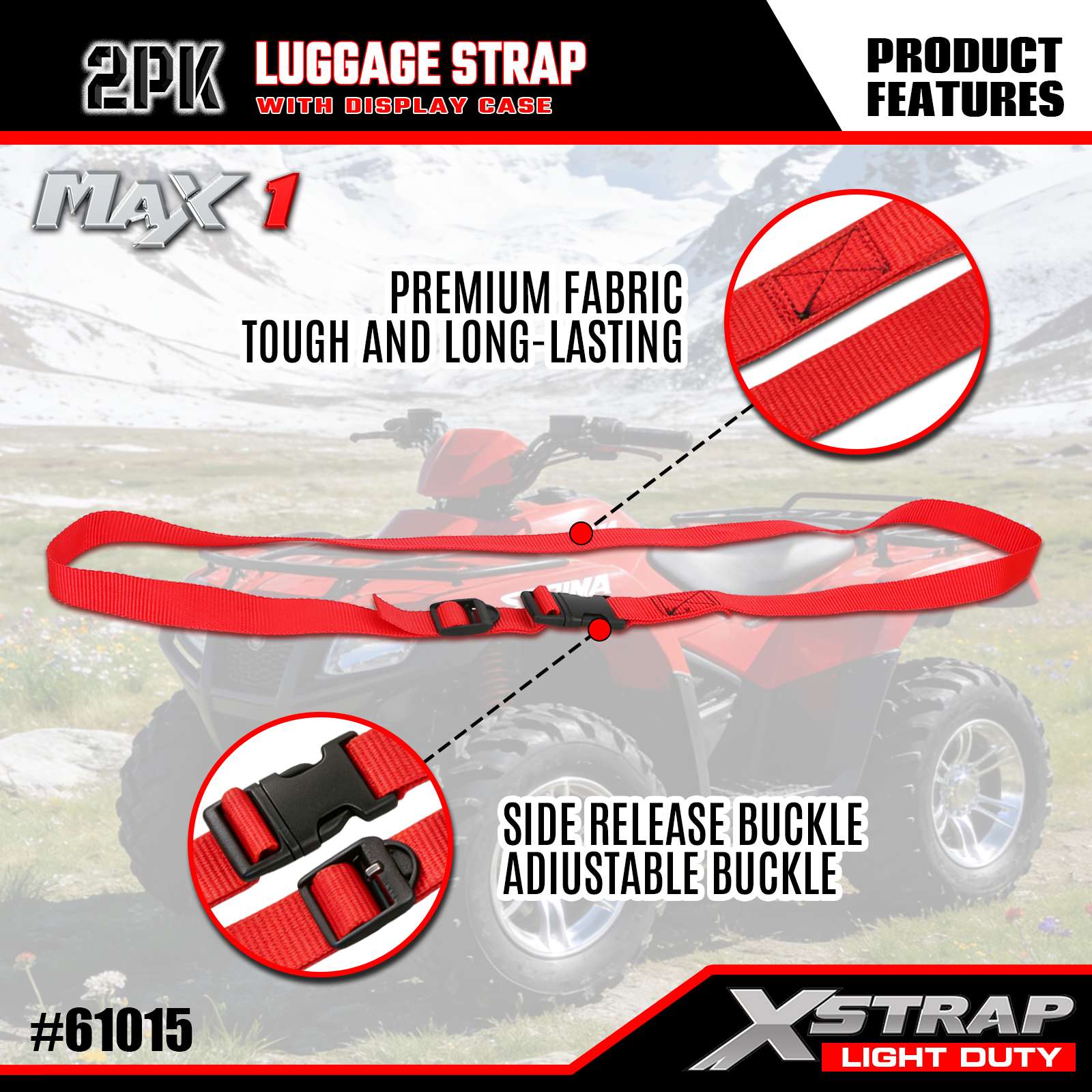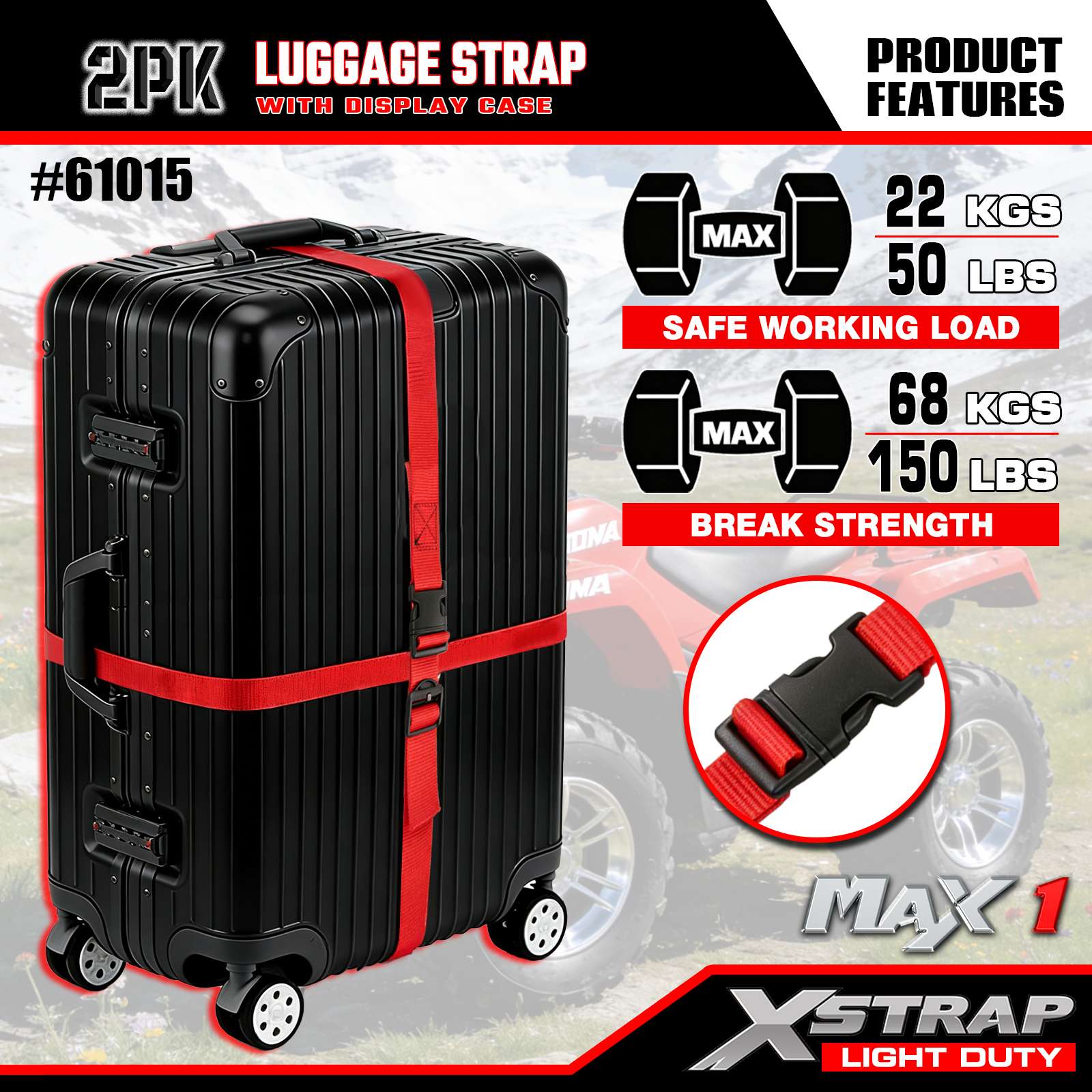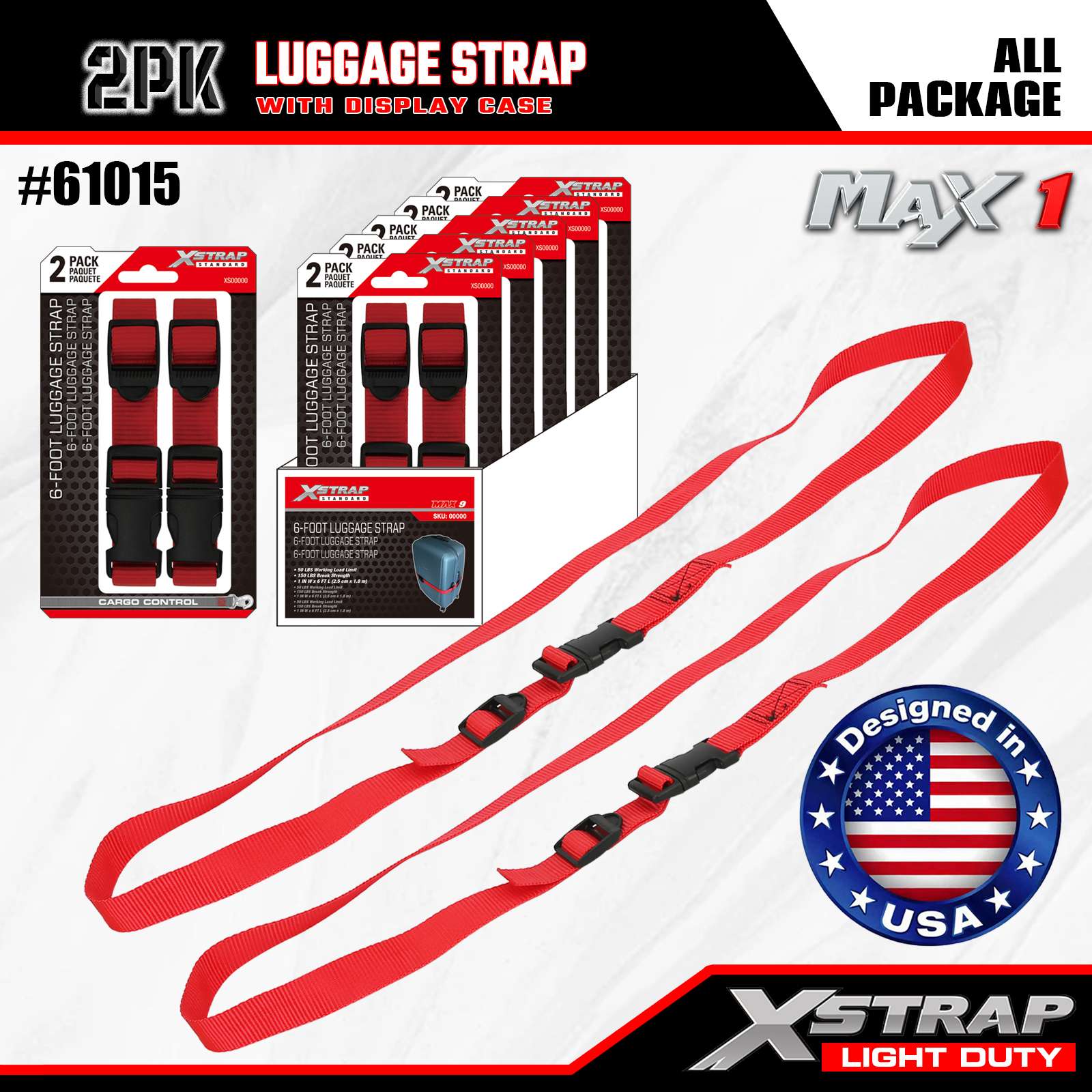 Xstrap, комплект из 2 регулируемых ремней для багажа, 1 дюйм x 6 футов, максимальная нагрузка 50 фунтов — разрывная нагрузка 150 фунтов — грузовые ремни для чемоданов, легко распознаваемый соединитель для дорожного ремня удерживает чемодан вместе, продлевает срок службы сумки, ремень соединяет две сумки, красный