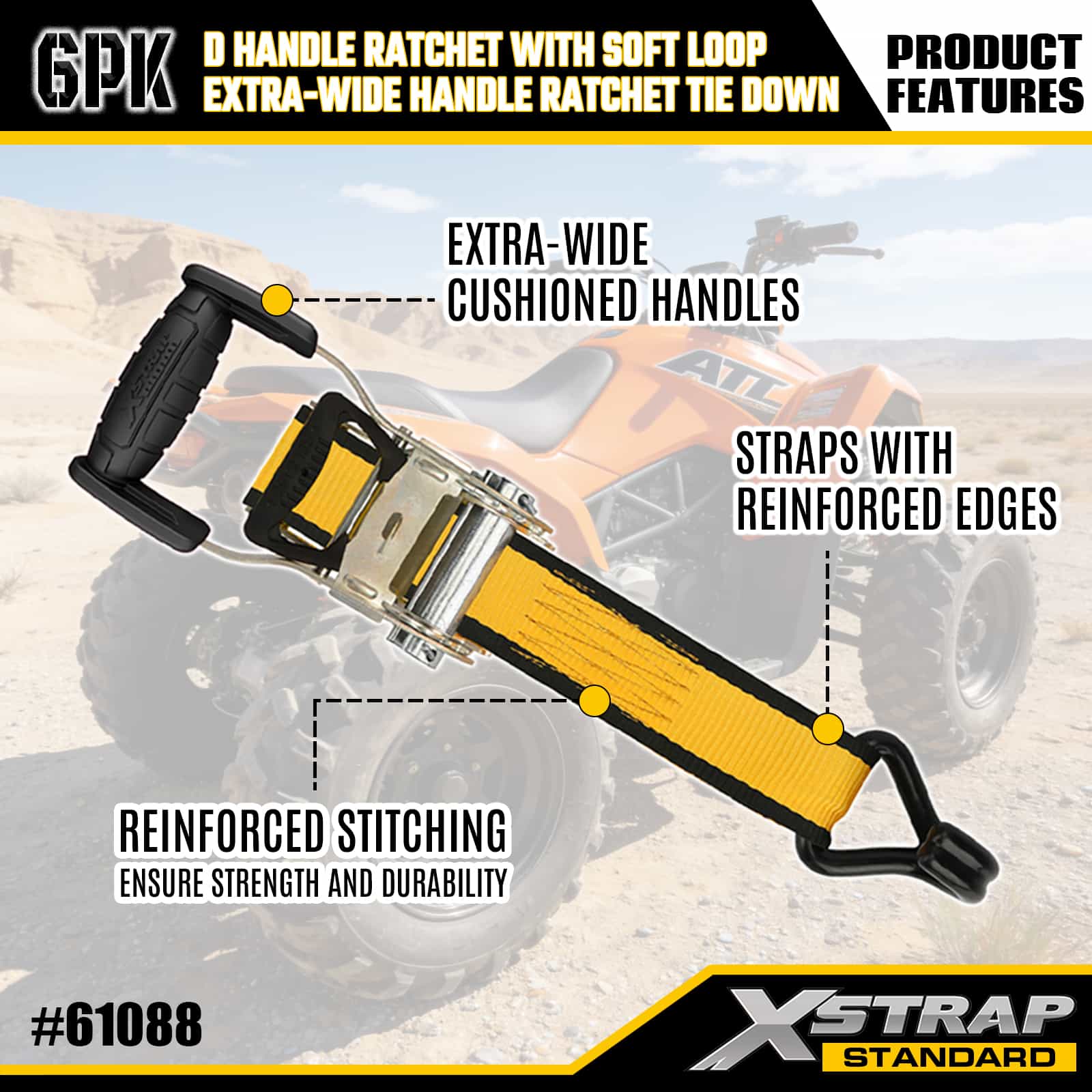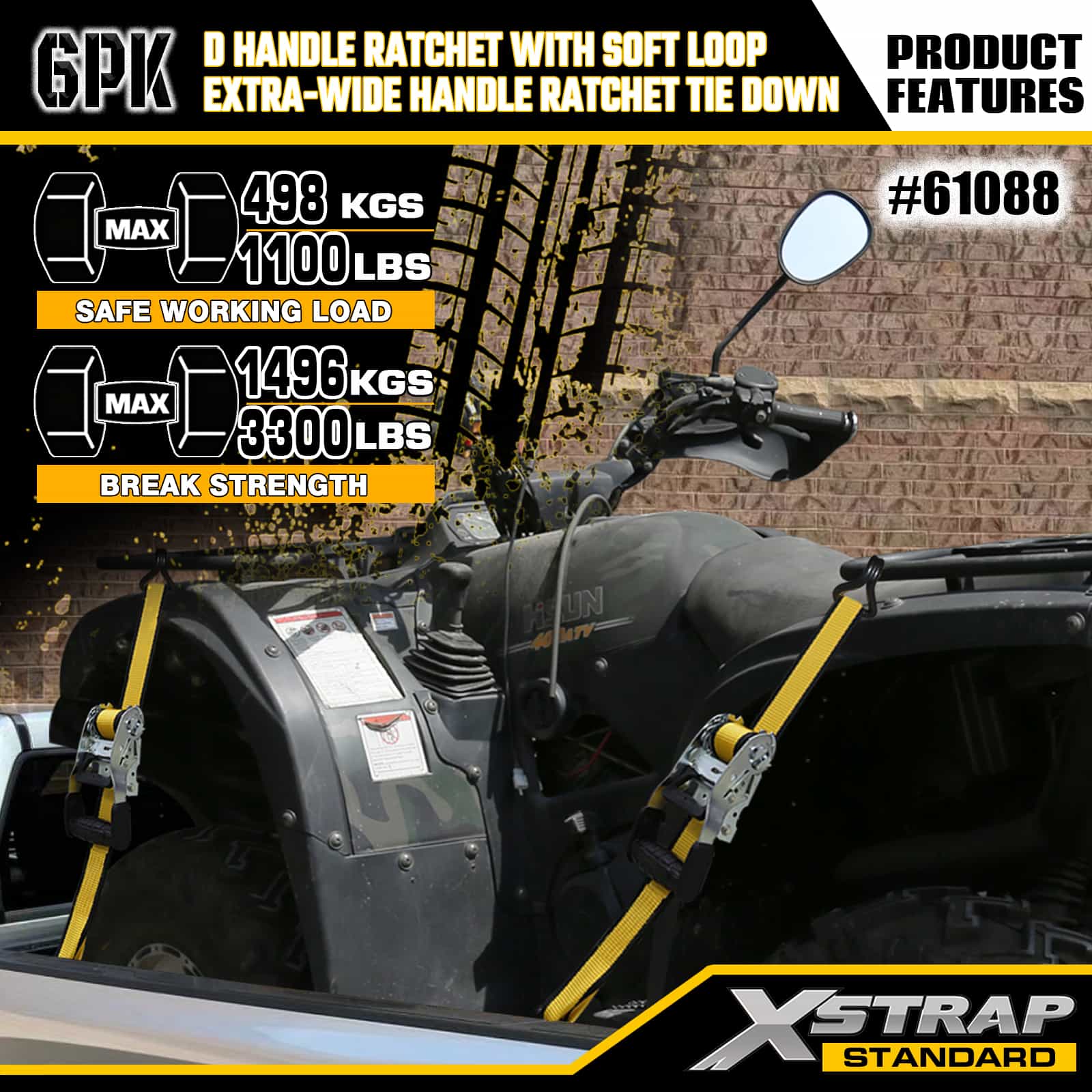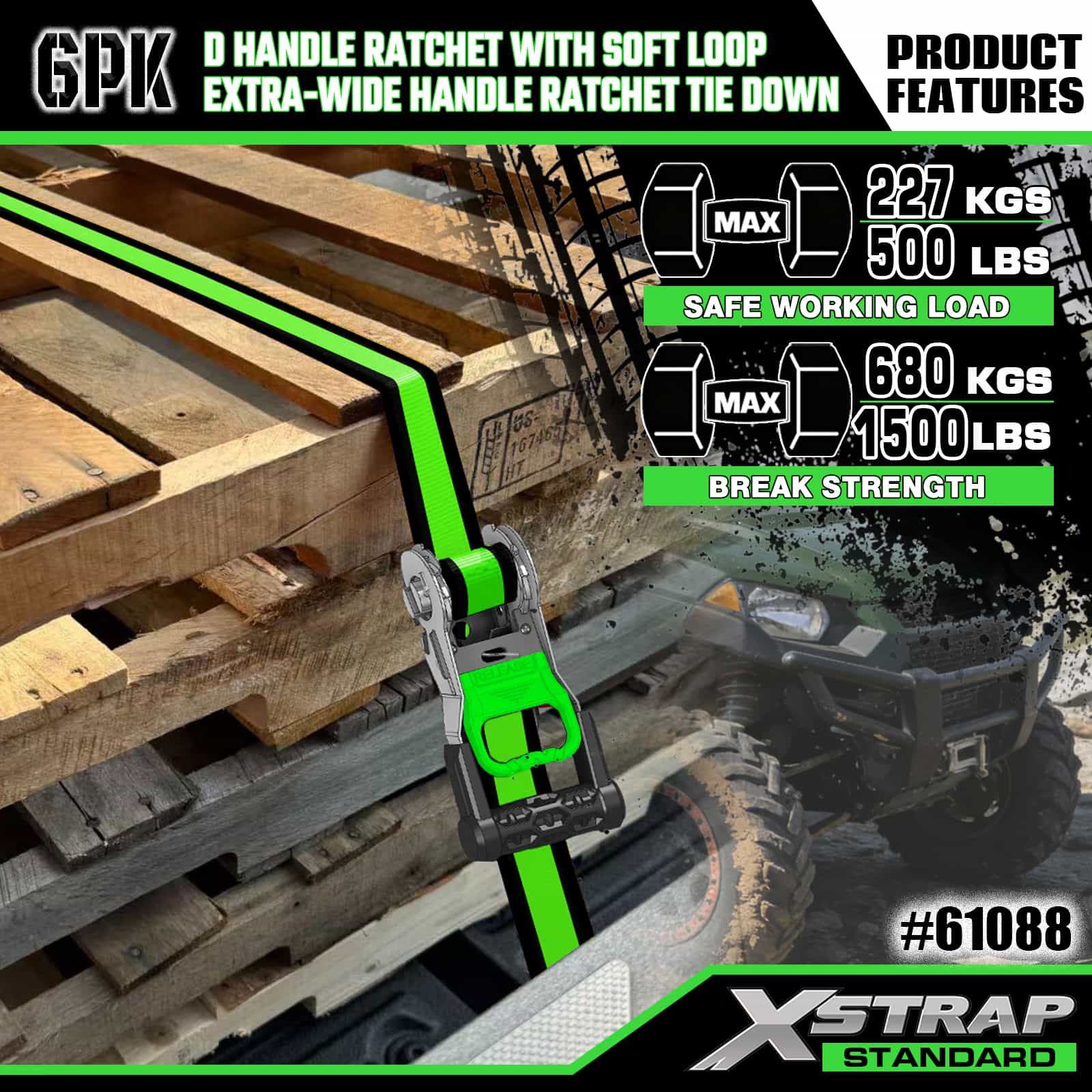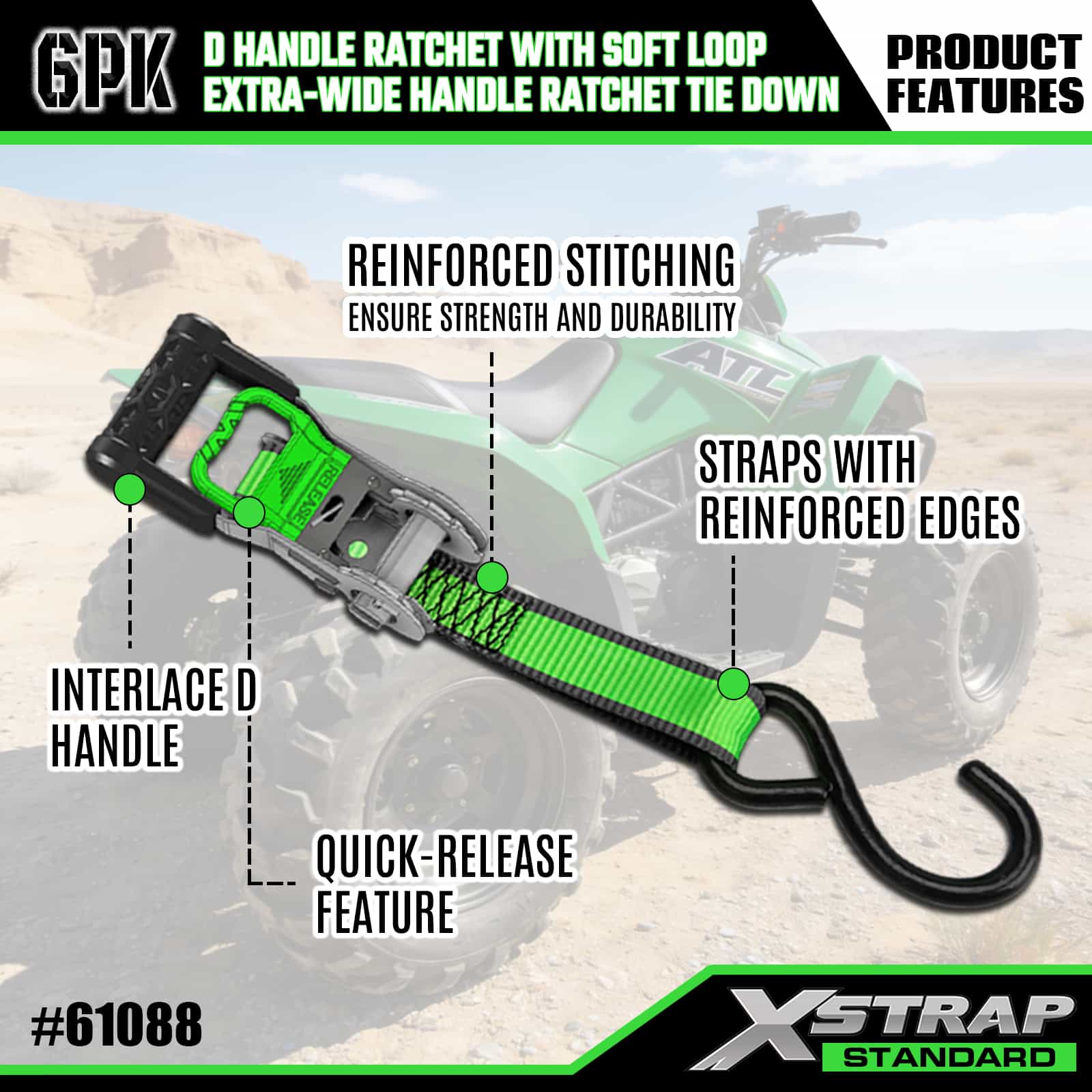 Xstrap 6 Pack Алюминиевая стяжка с храповым механизмом, 1 x 14 и 1 x 16 футов Полиэфирный стяжной ремень Тяговый ремень с храповым механизмом, Крепежные ремни для крепления груза грузоподъемностью 500 фунтов и 1100 фунтов с S-образными крючками и двойными J-образными крючками для управления грузовым автомобилем, пикапом, внедорожником, автомобильными багажниками для мотоциклов.