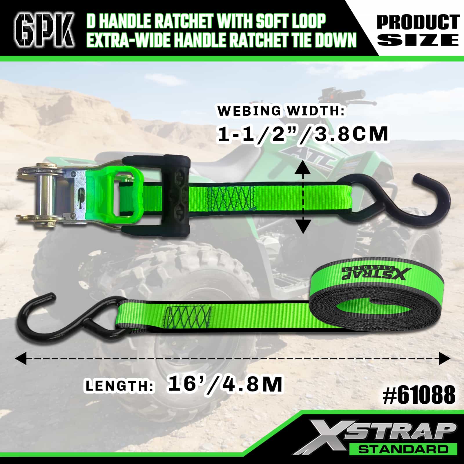 2PK 1 x 14 дюймов с храповым механизмом с мягкой петлей и 6PK 1 x 16 дюймов с храповым механизмом с очень широкой ручкой.