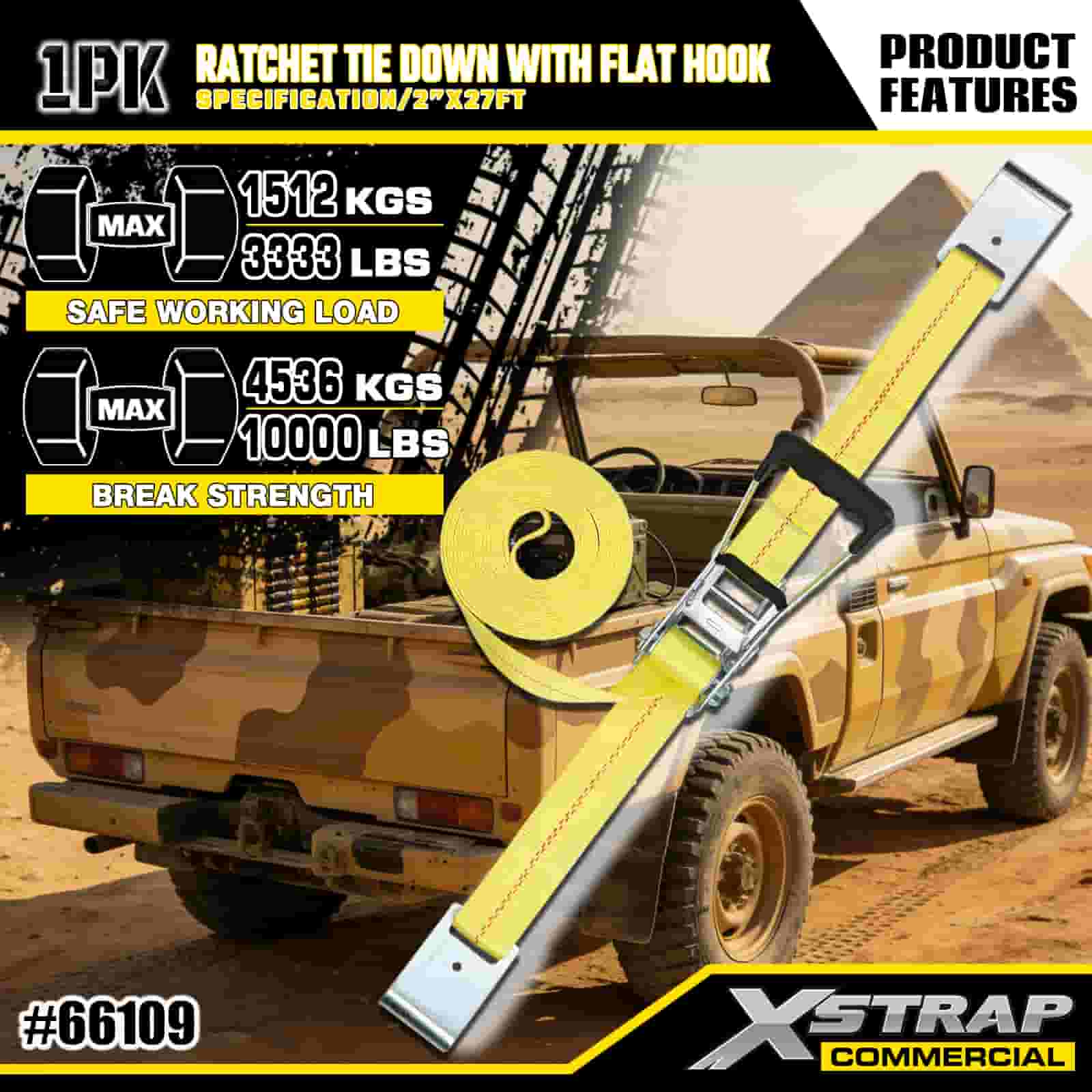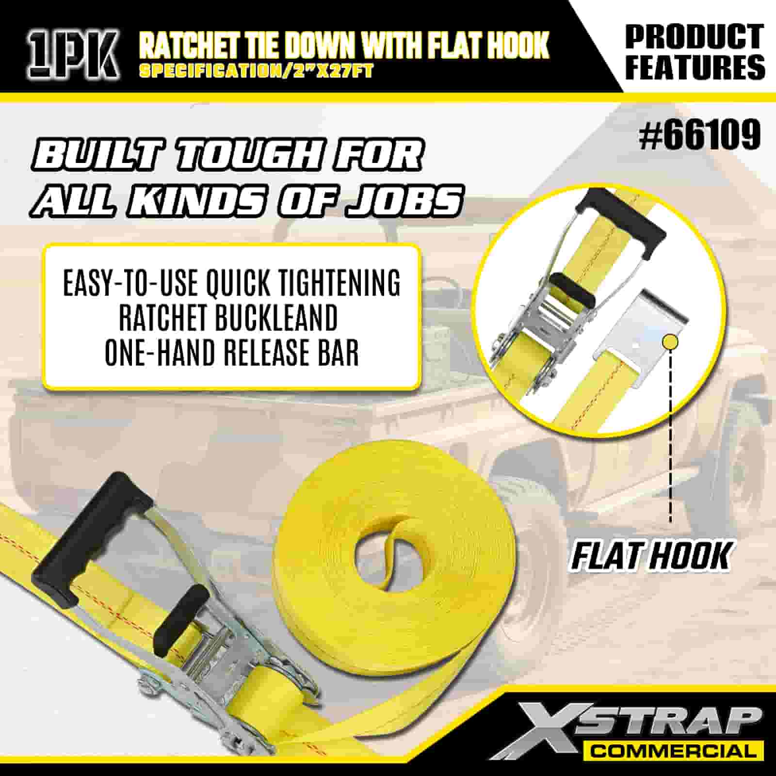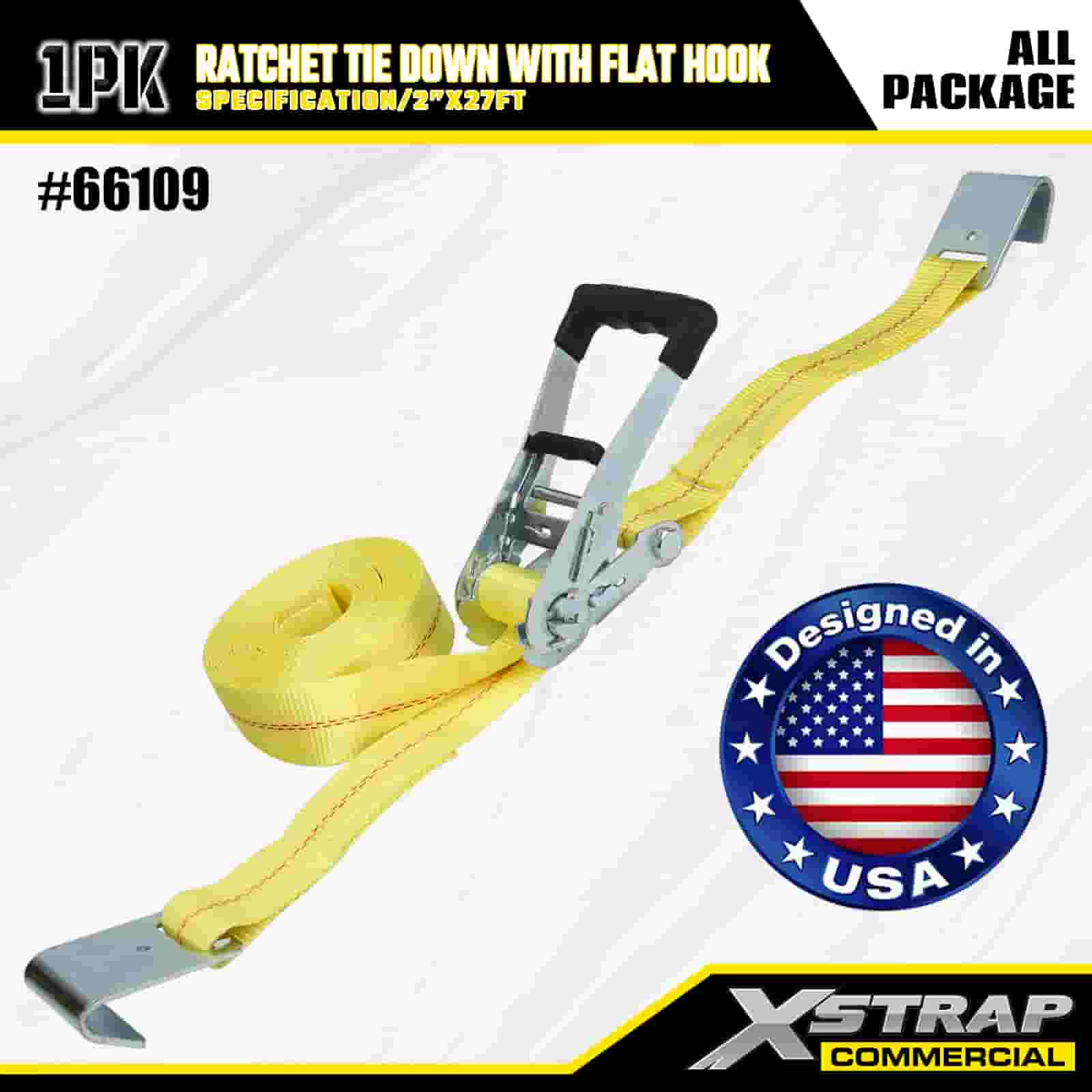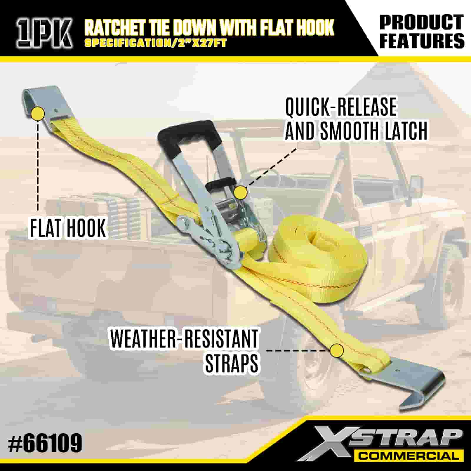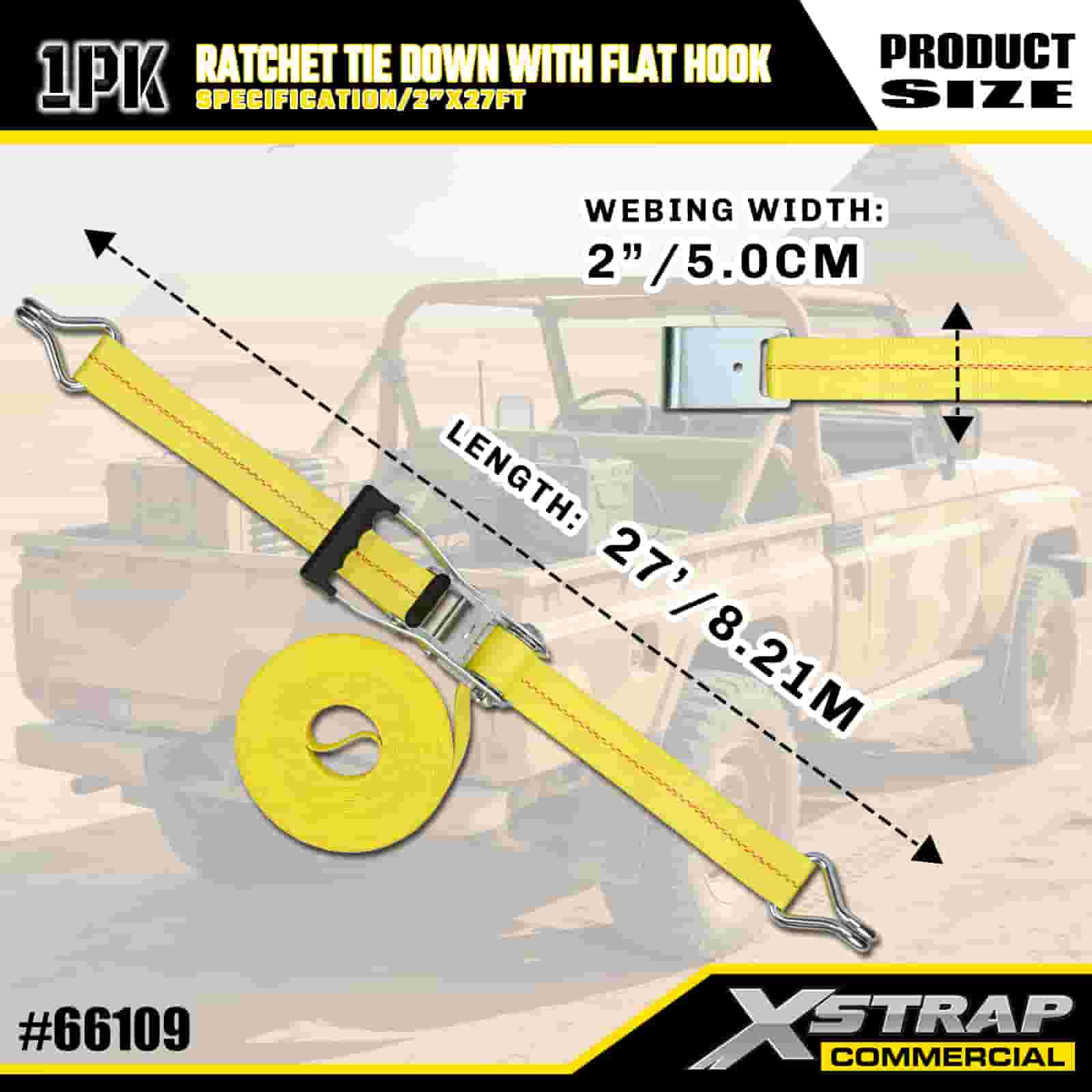 Xstrap с храповым механизмом и плоскими крючками, полиэстеровый стяжной ремень размером 2 x 27 футов, ремень с храповым механизмом, грузоподъемность 3333 фунта. Крепежные ремни для крепления груза с плоскими крючками для управления грузом, пикапа, внедорожника, автомобильных верхних багажников для мотоциклов.