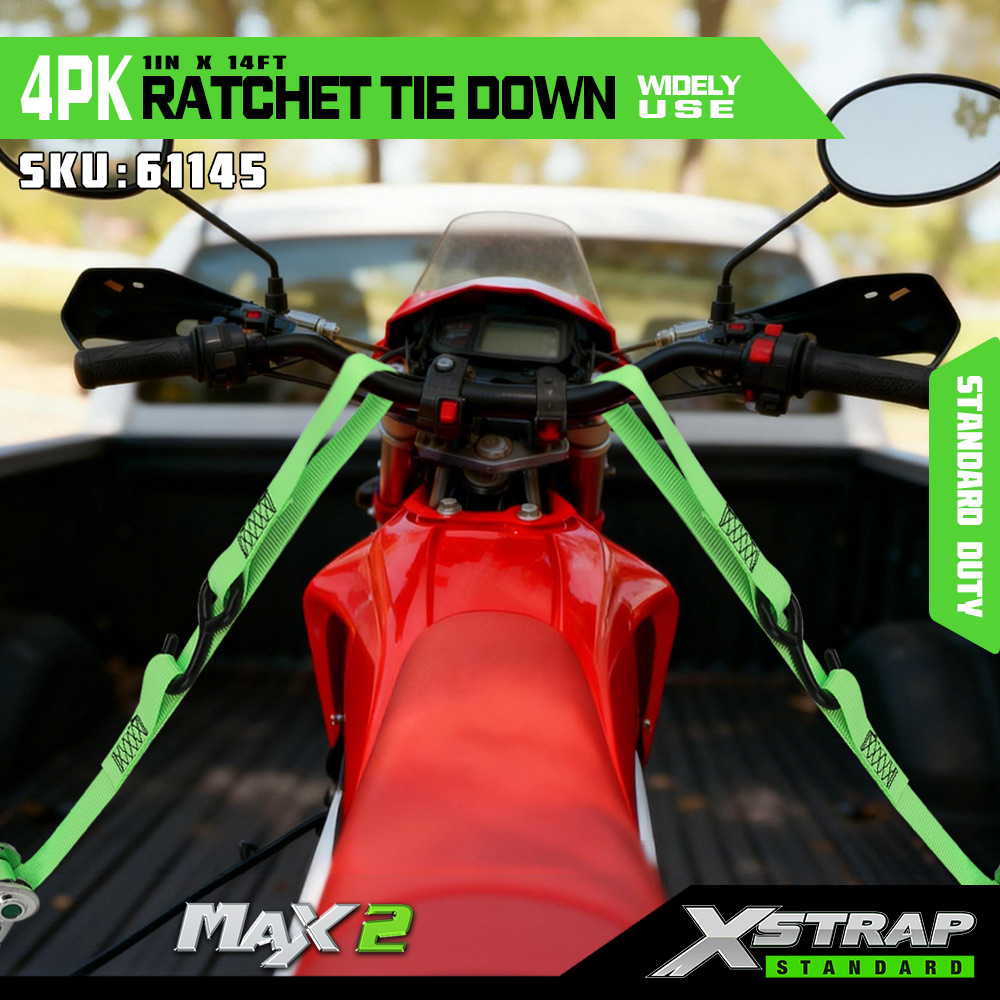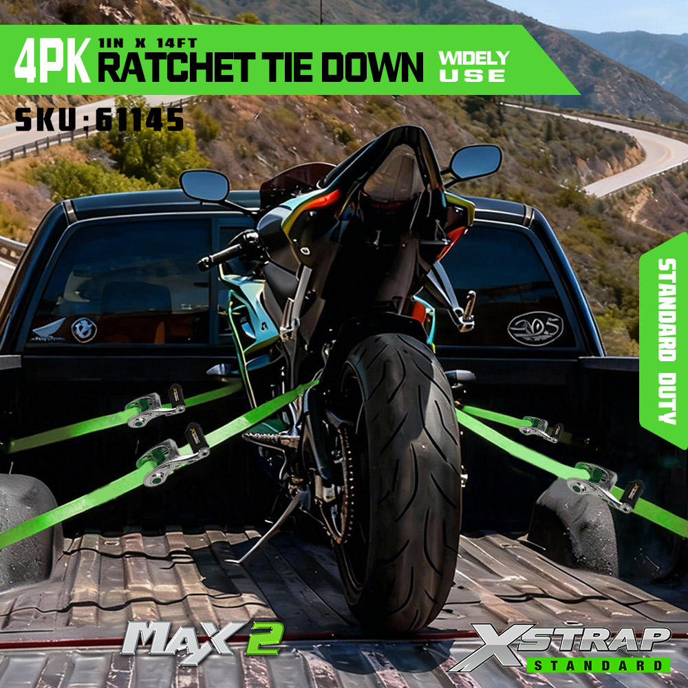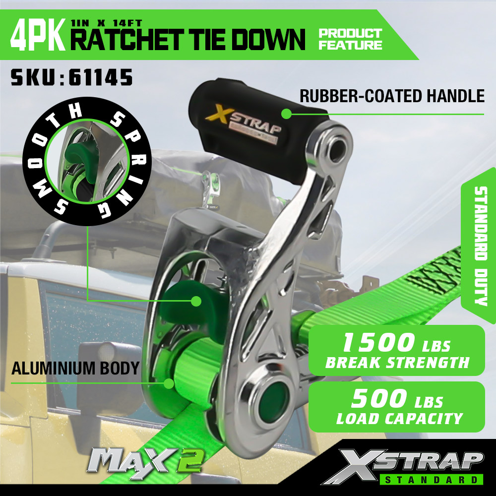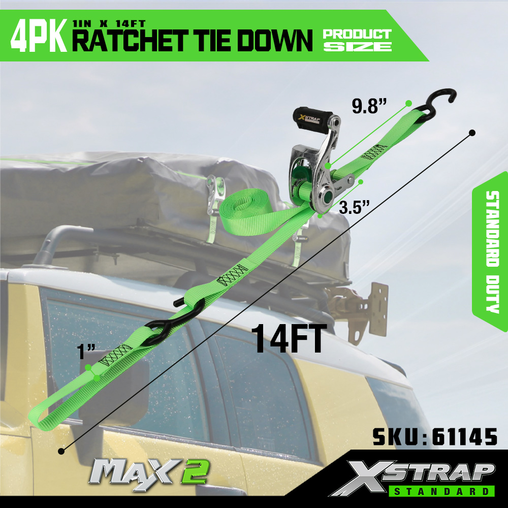 Xstrap, 4 комплекта стяжек с храповым механизмом и мягкой петлей, полиэстеровый стяжной ремень размером 1 x 14 футов, тяговый ремень с храповым механизмом, крепежные ремни для крепления груза грузоподъемностью 1000 фунтов с S-образными крючками для грузовиков, внедорожников, верхних багажников автомобилей, мотоциклов.